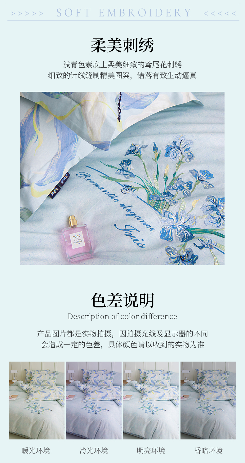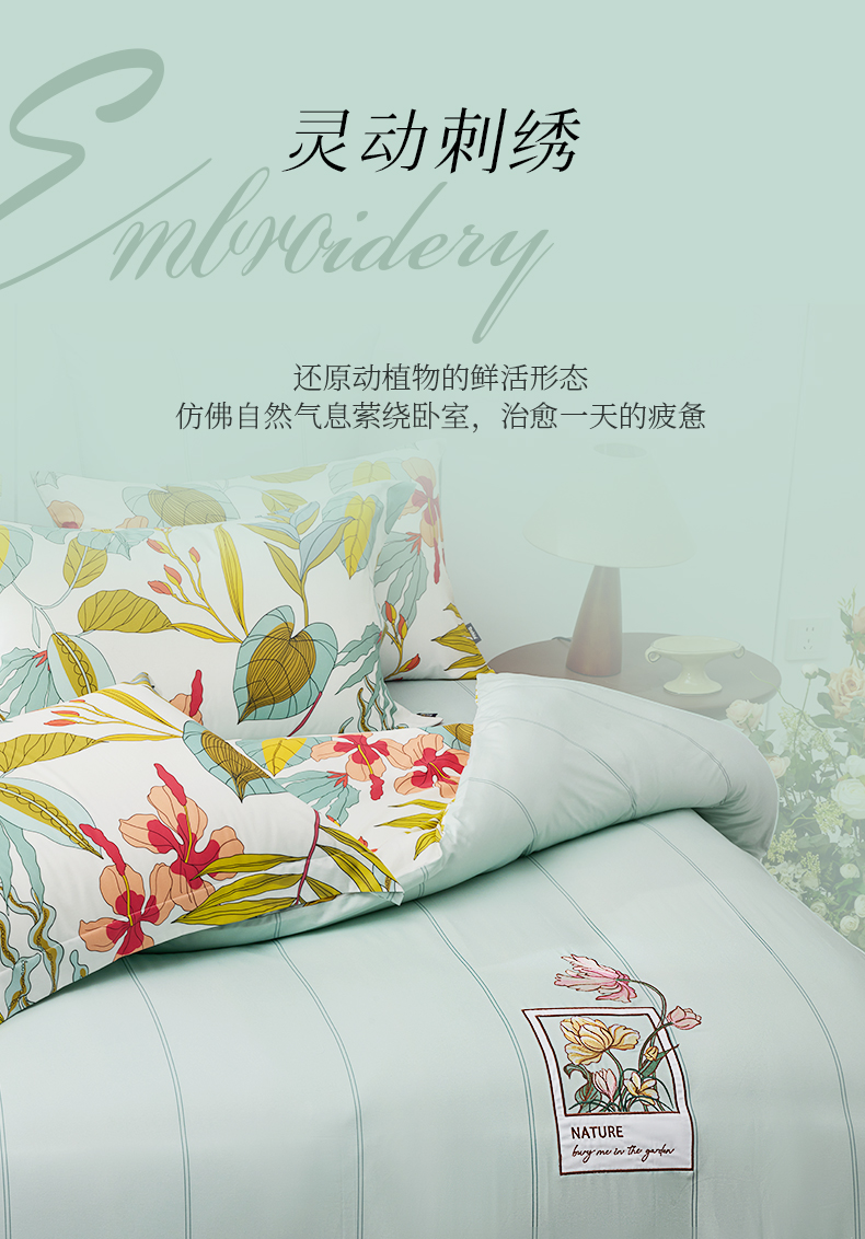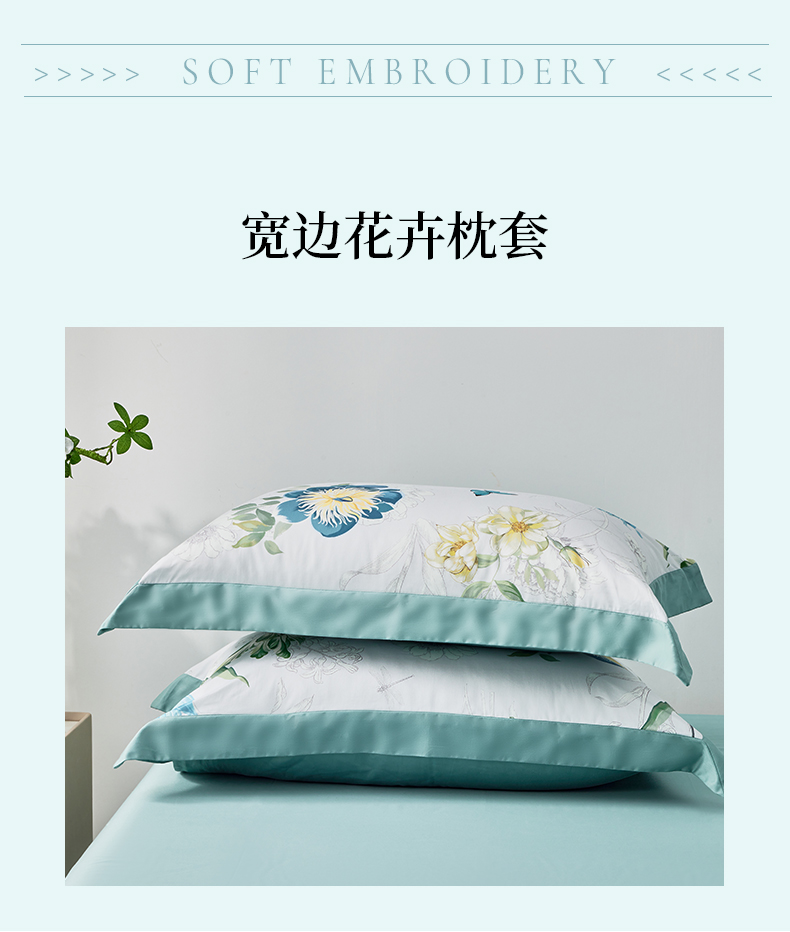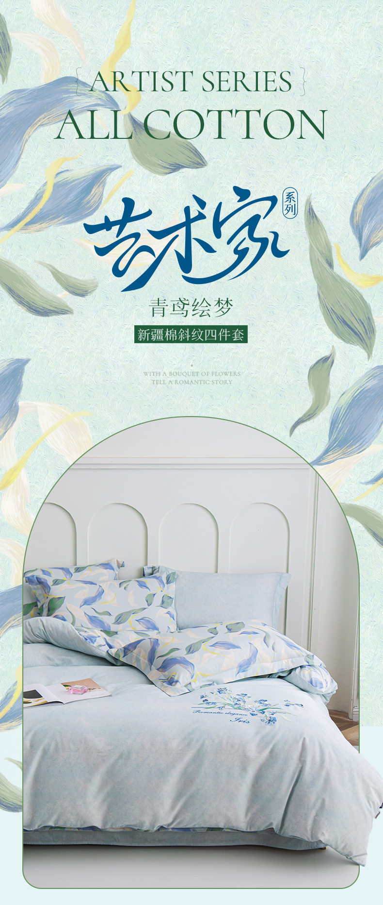 多喜爱新疆棉刺绣斜纹四件套静谧雅舍系列(春蓝轻语/星葵晨曦/绿意漫步/青鸢绘梦/露夕)