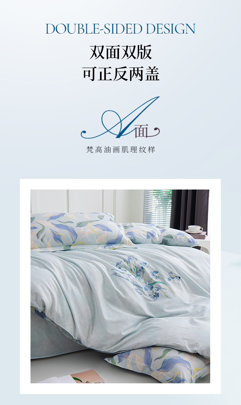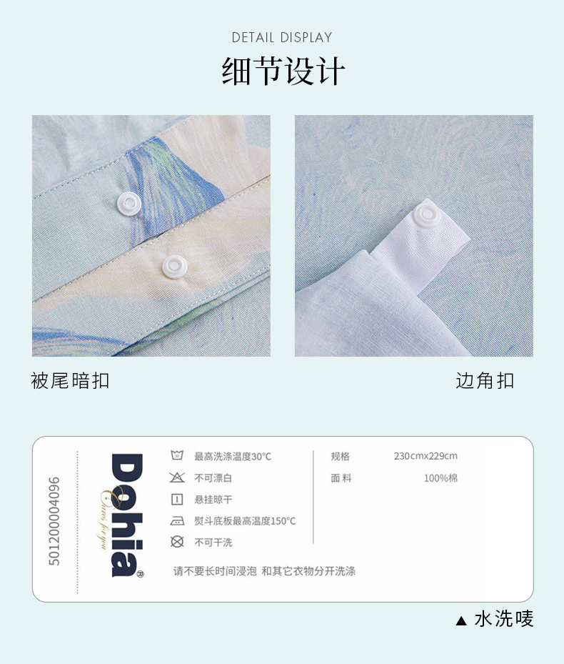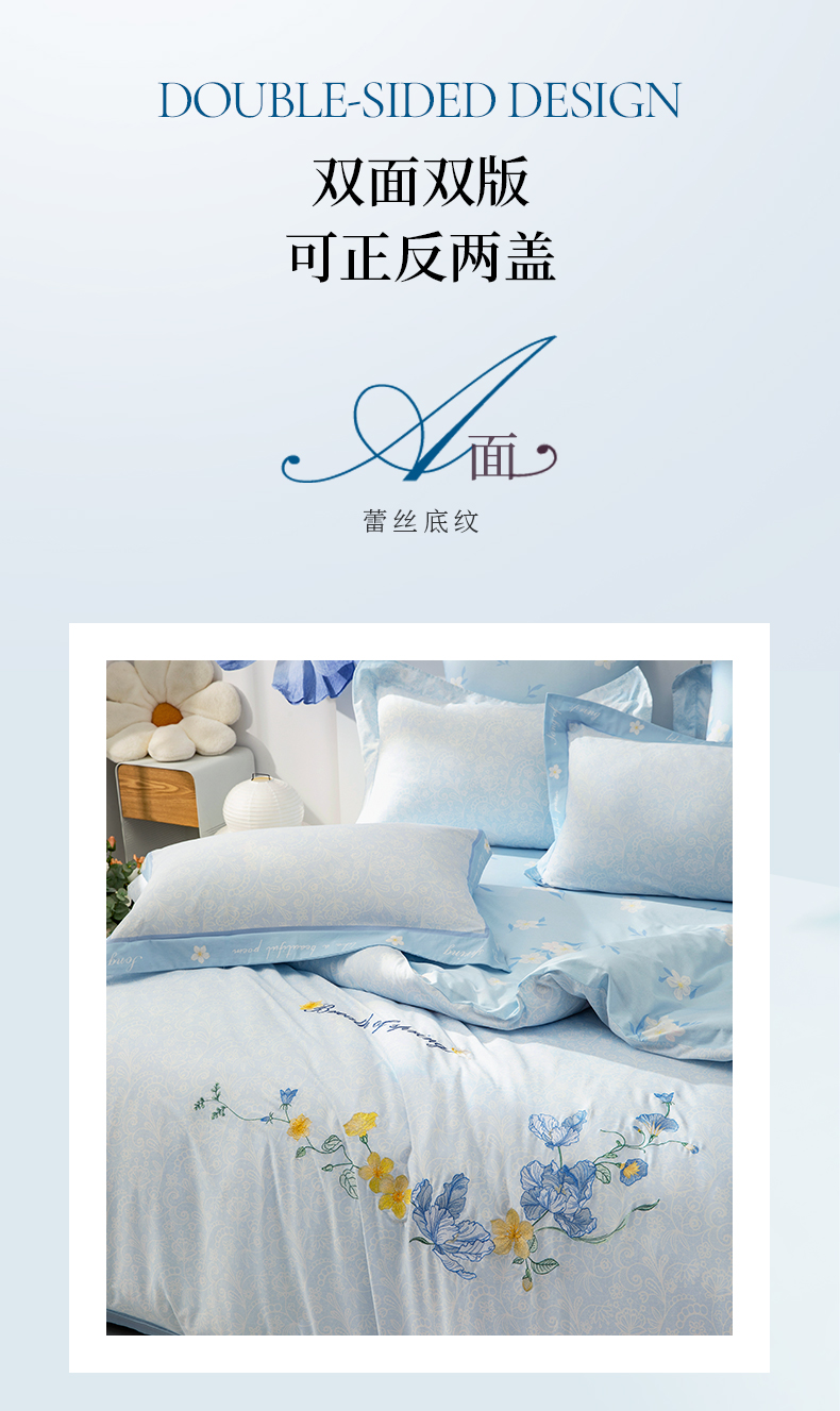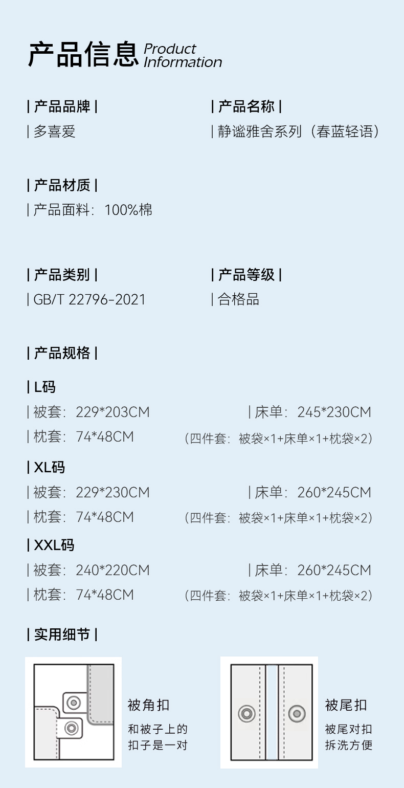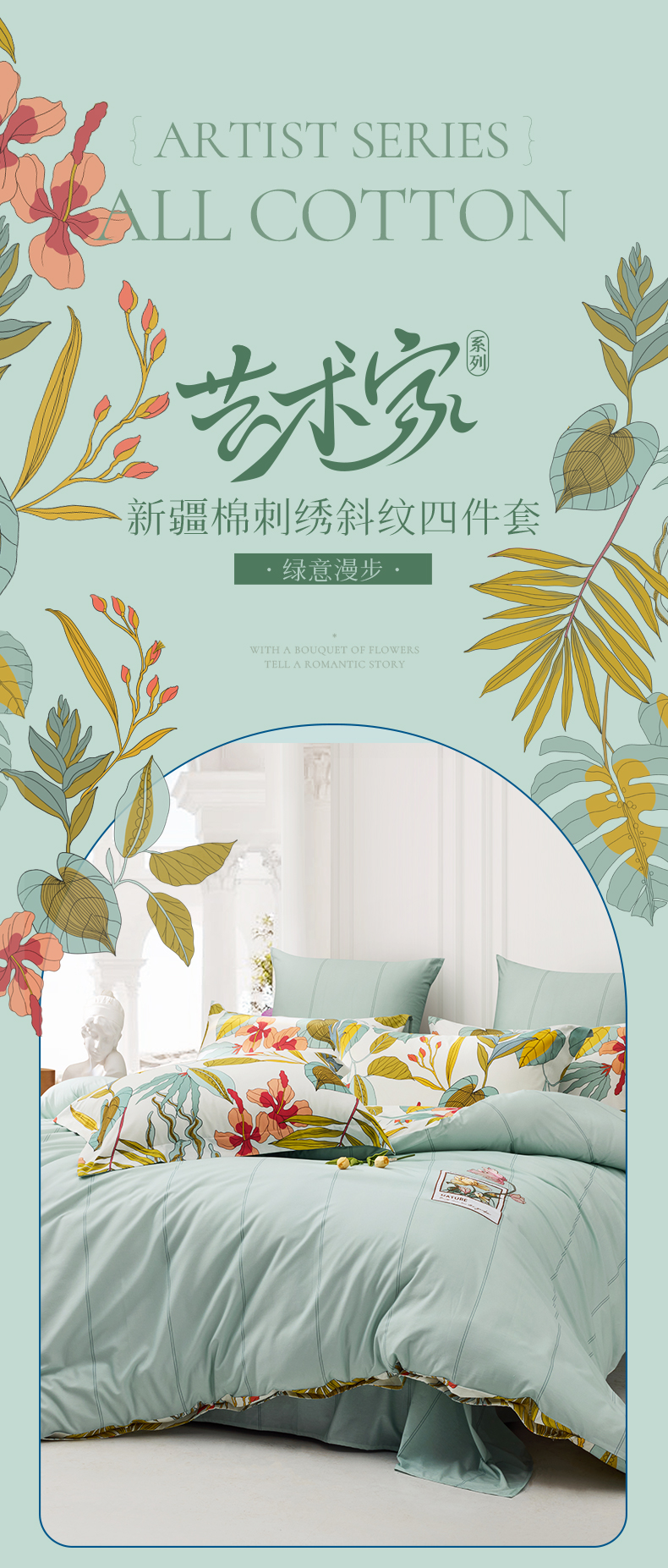 多喜爱新疆棉刺绣斜纹四件套静谧雅舍系列(春蓝轻语/星葵晨曦/绿意漫步/青鸢绘梦/露夕)
