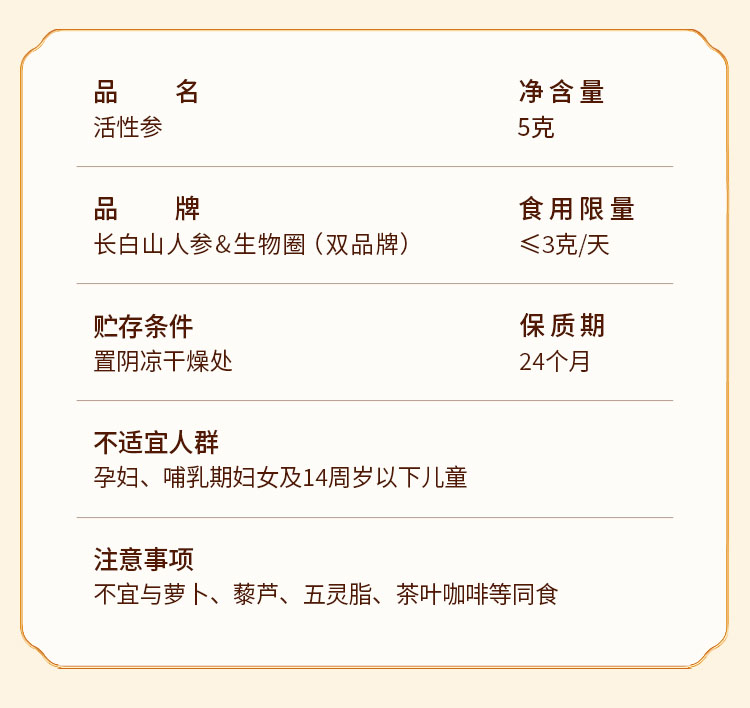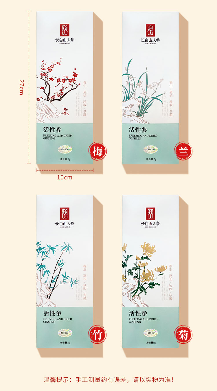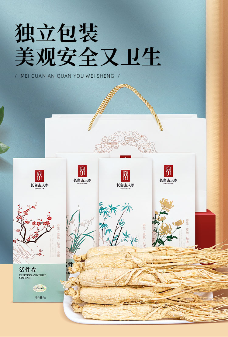 【长白山人参】超低温真空冷冻干燥活性参6g