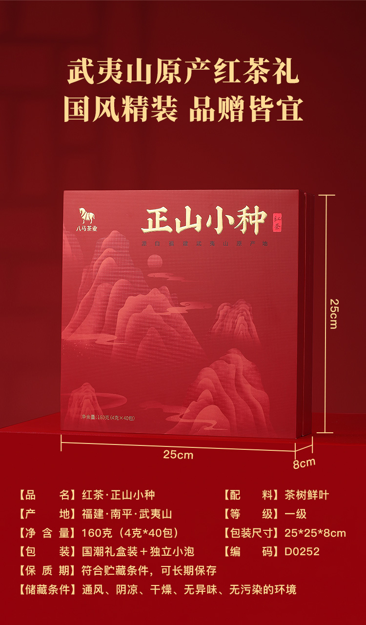 八马茶业 | 新品武夷正山小种红茶送人的茶礼盒装160g