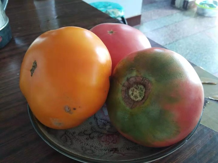 非常好吃的西红柿,还有黄色的。尽管很辛苦,还好有您们的坚持,谢谢!