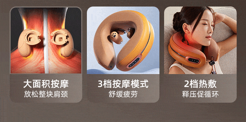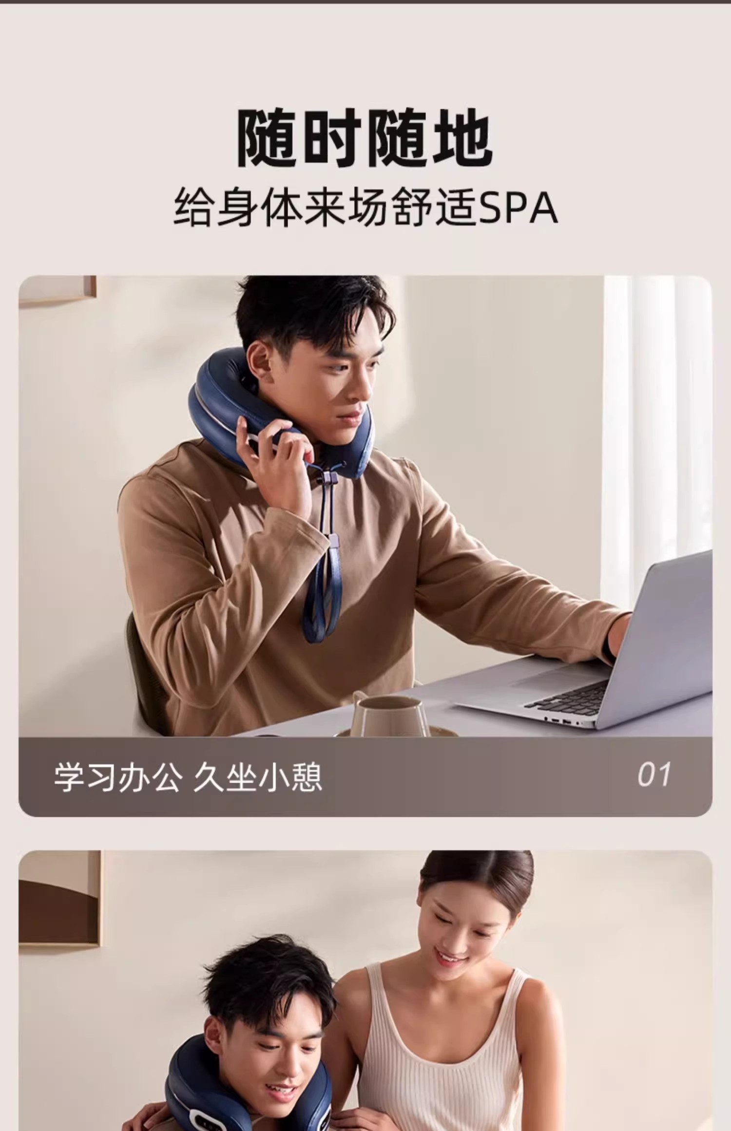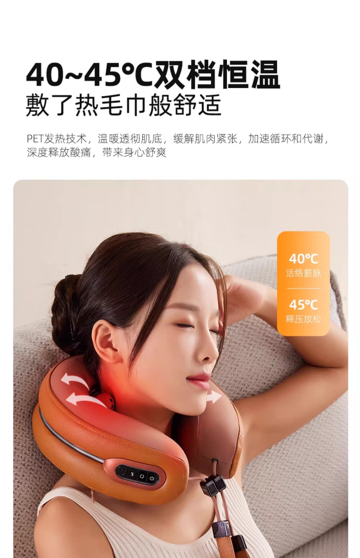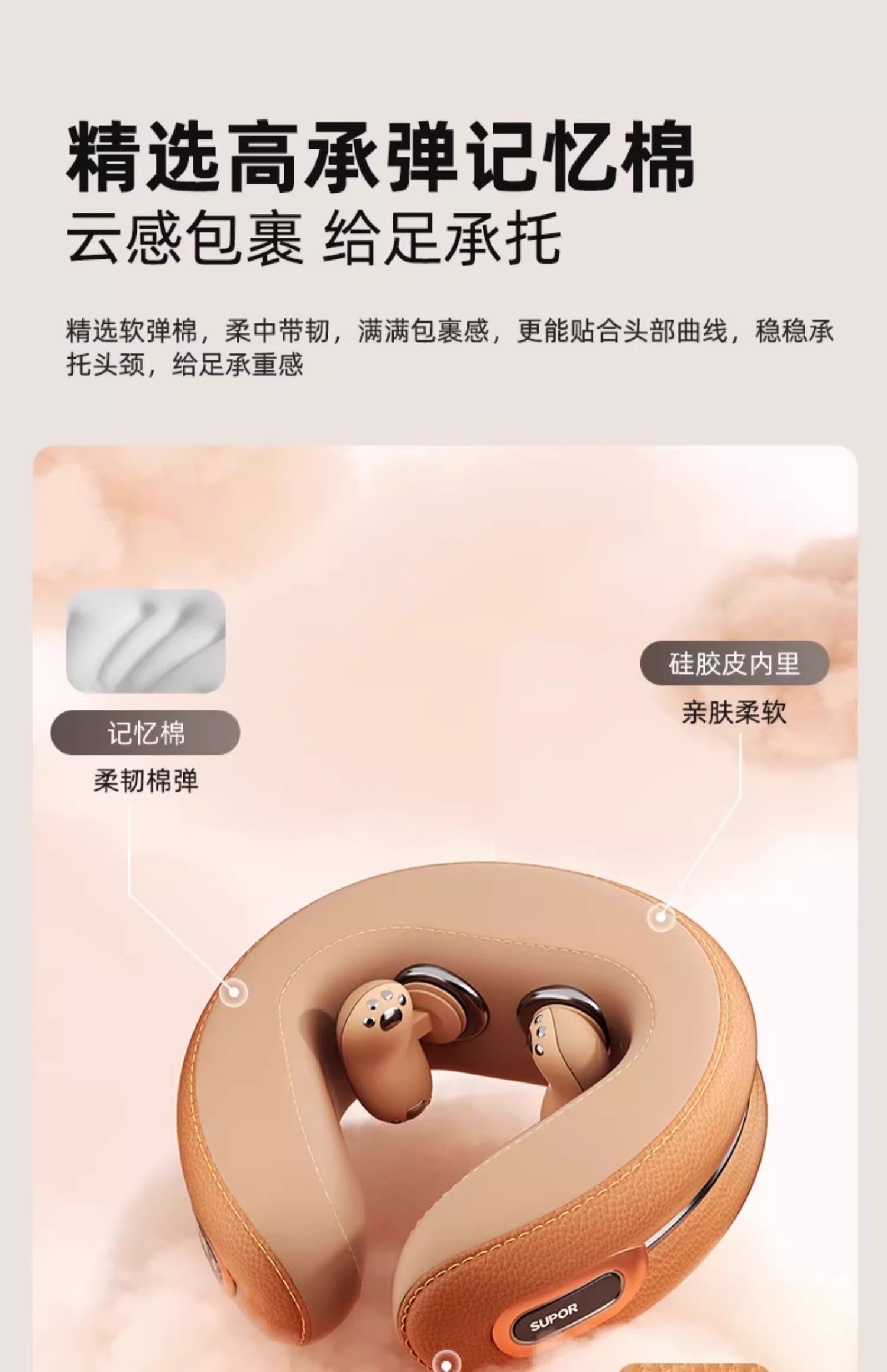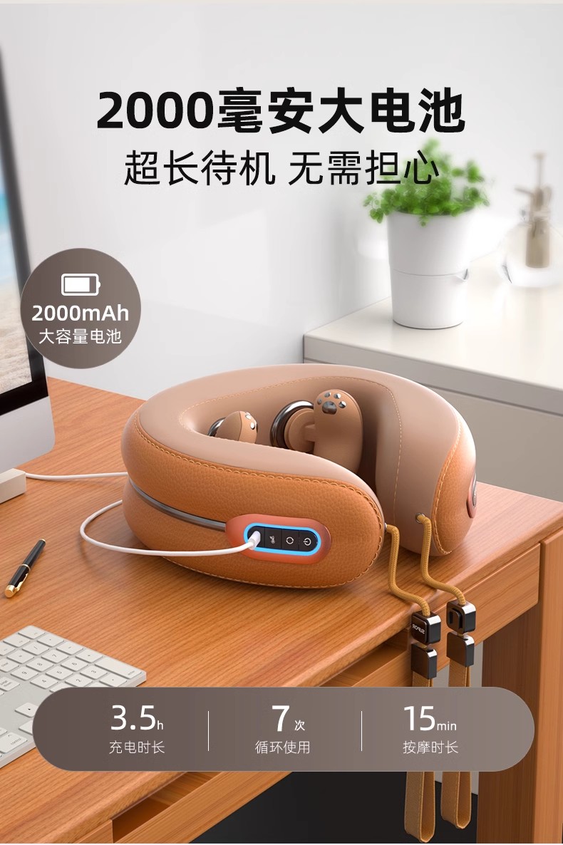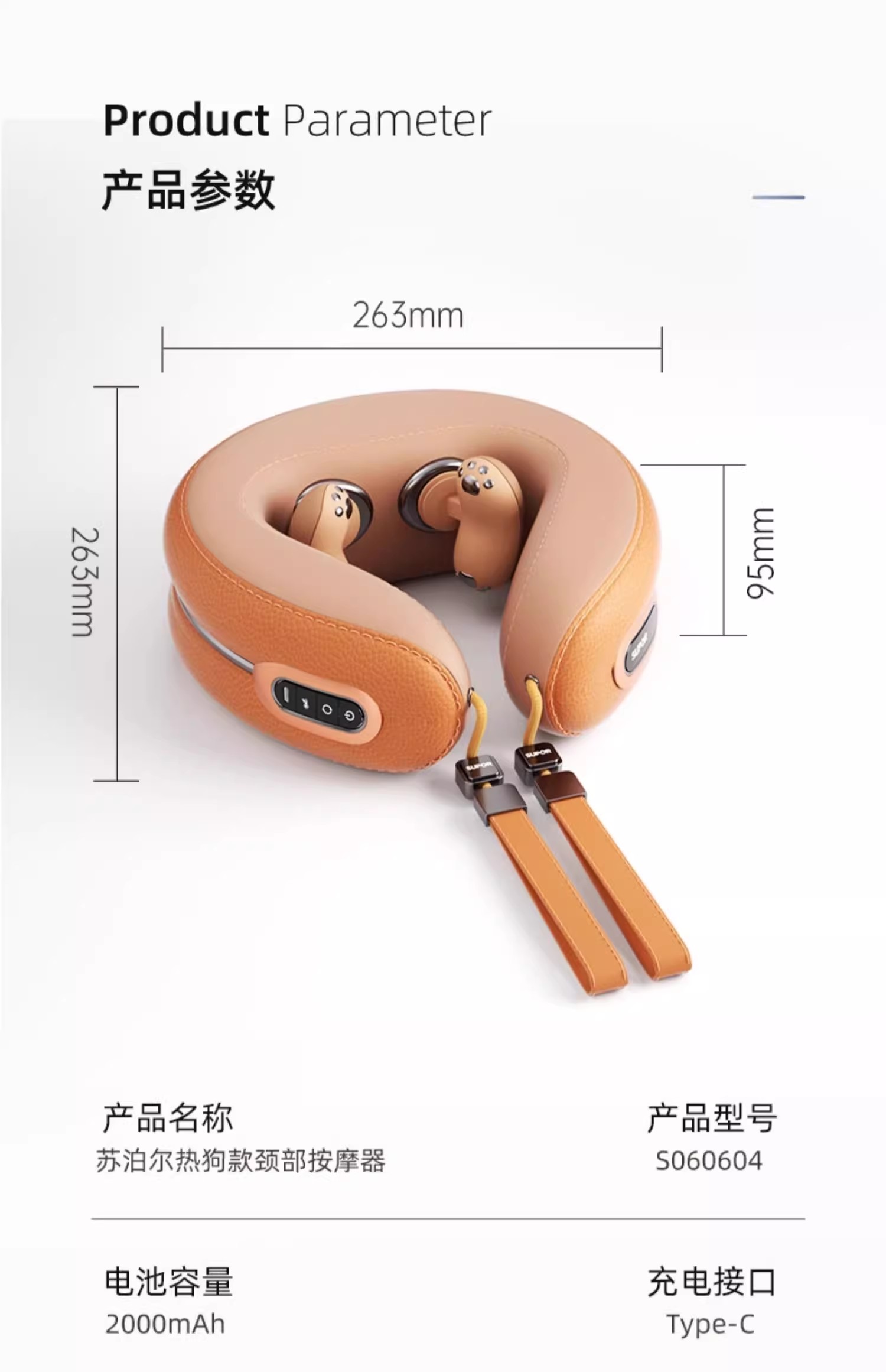 苏泊尔按摩U枕 棕色猫爪款 充电款