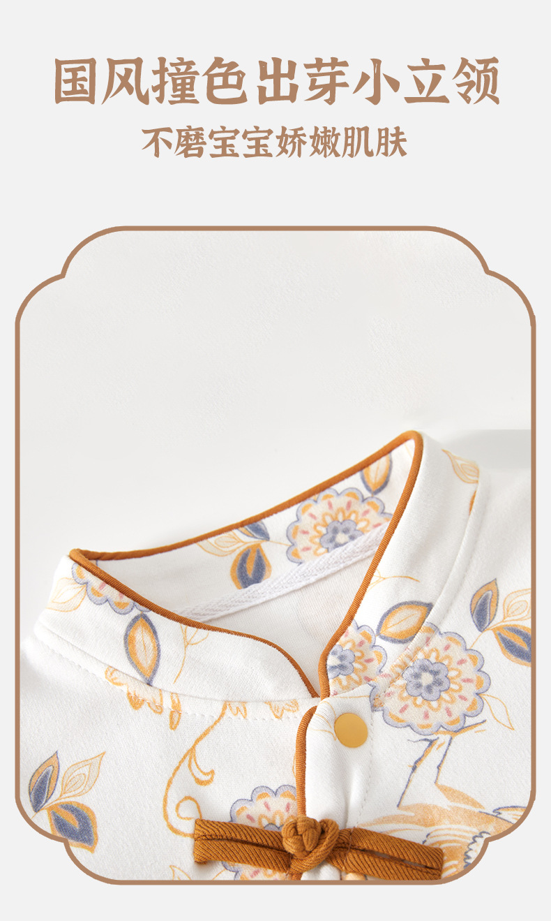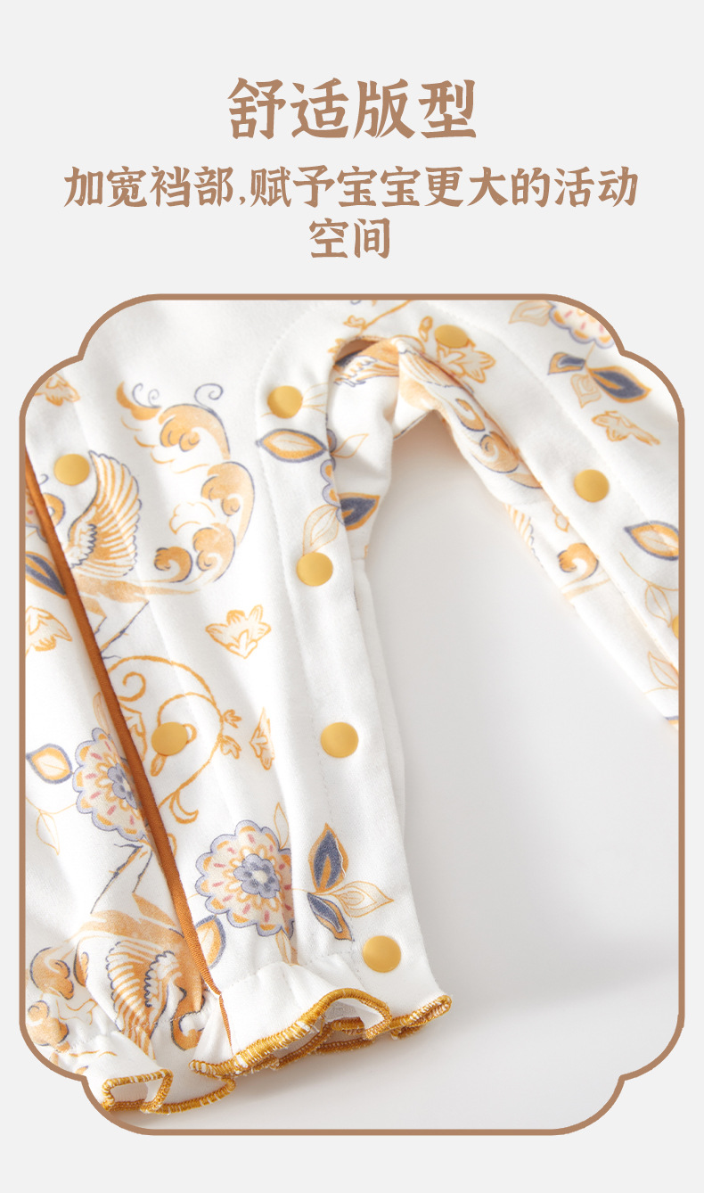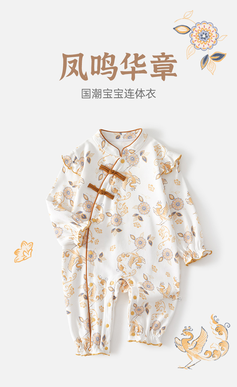 【国潮系列“凤鸣华章”偏开连体衣】婴儿连体衣四季款中国风新生儿哈衣纯棉a类满印外出爬服婴儿衣服