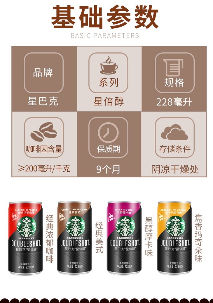 【备用】【1瓶】星巴克(Starbucks)倍醇咖啡饮料 228ml *1瓶(多味可选)