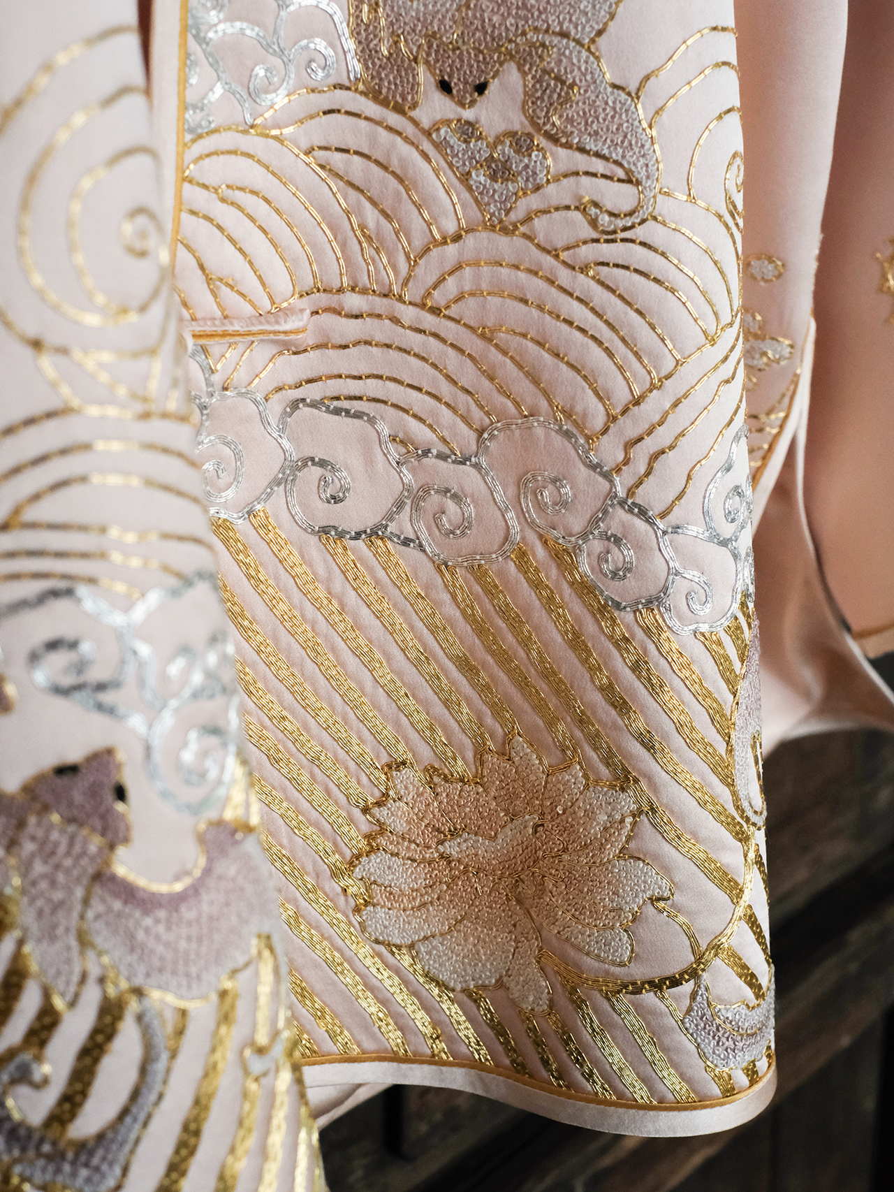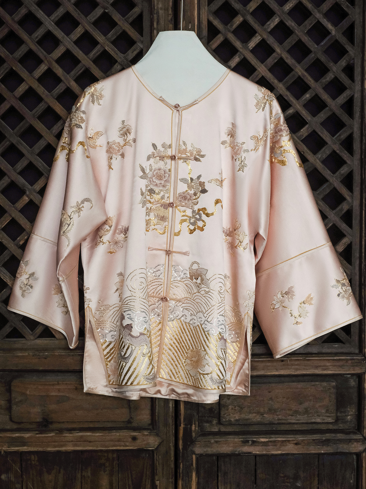盛唐牡丹大师系列| 重工盘金绣江崖海水纹外套