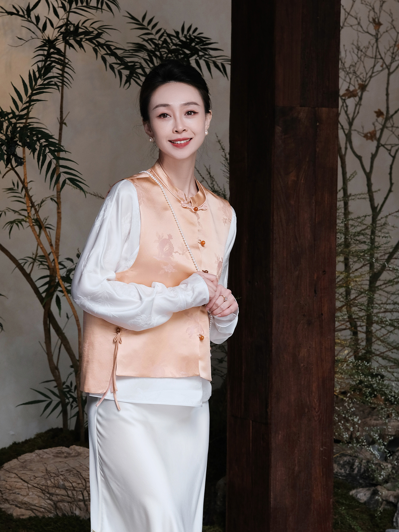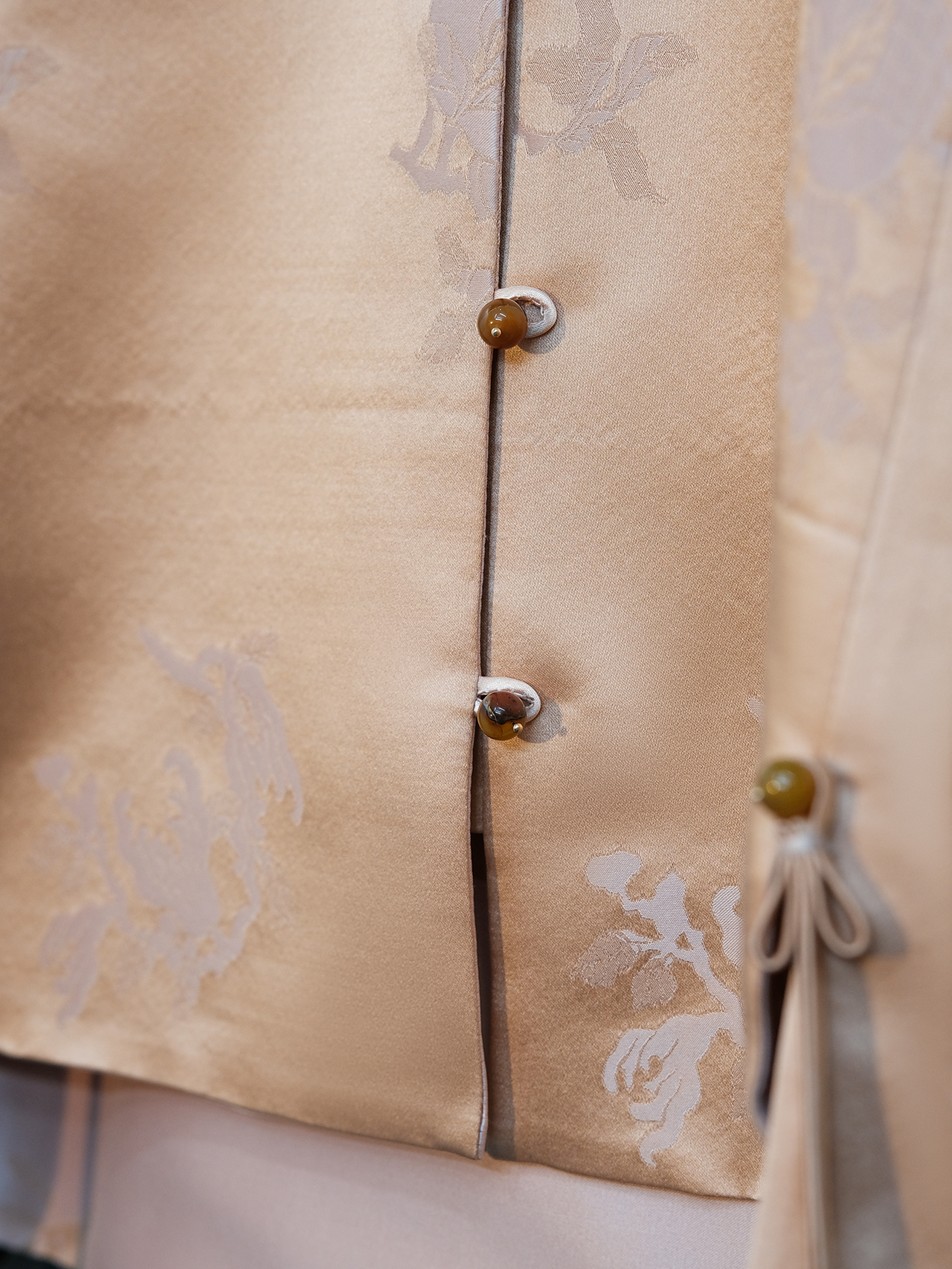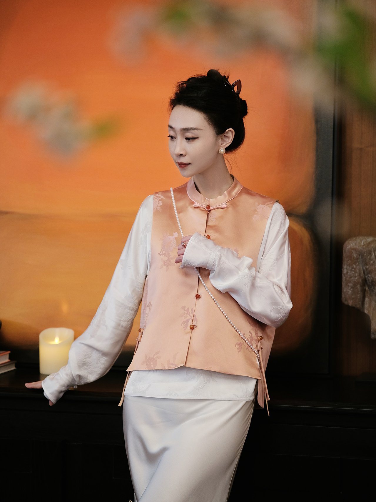 瑕疵|盛唐牡丹| 玉色石榴花纹花锦缎马甲[特价品](特殊商品不退不换)
