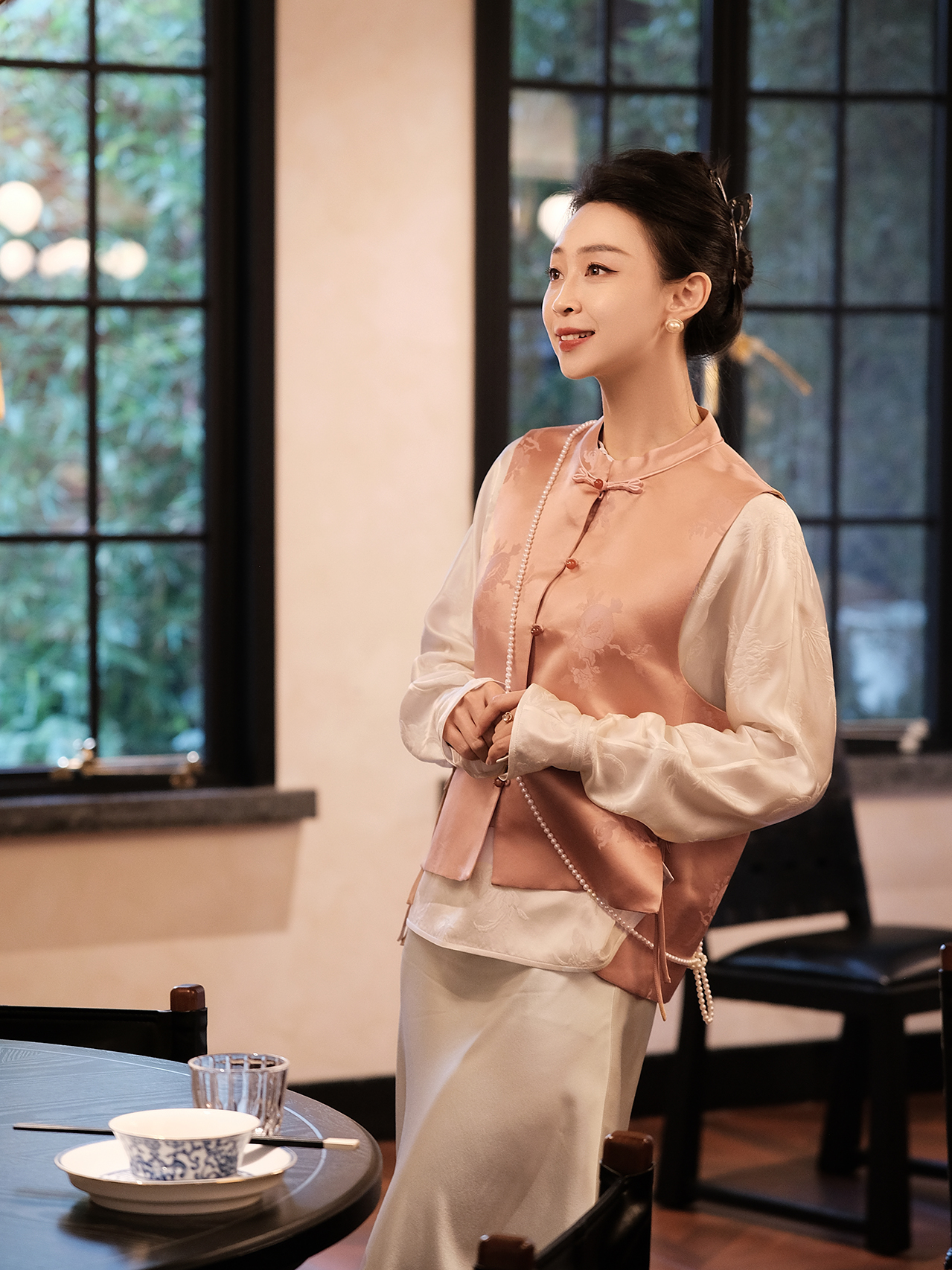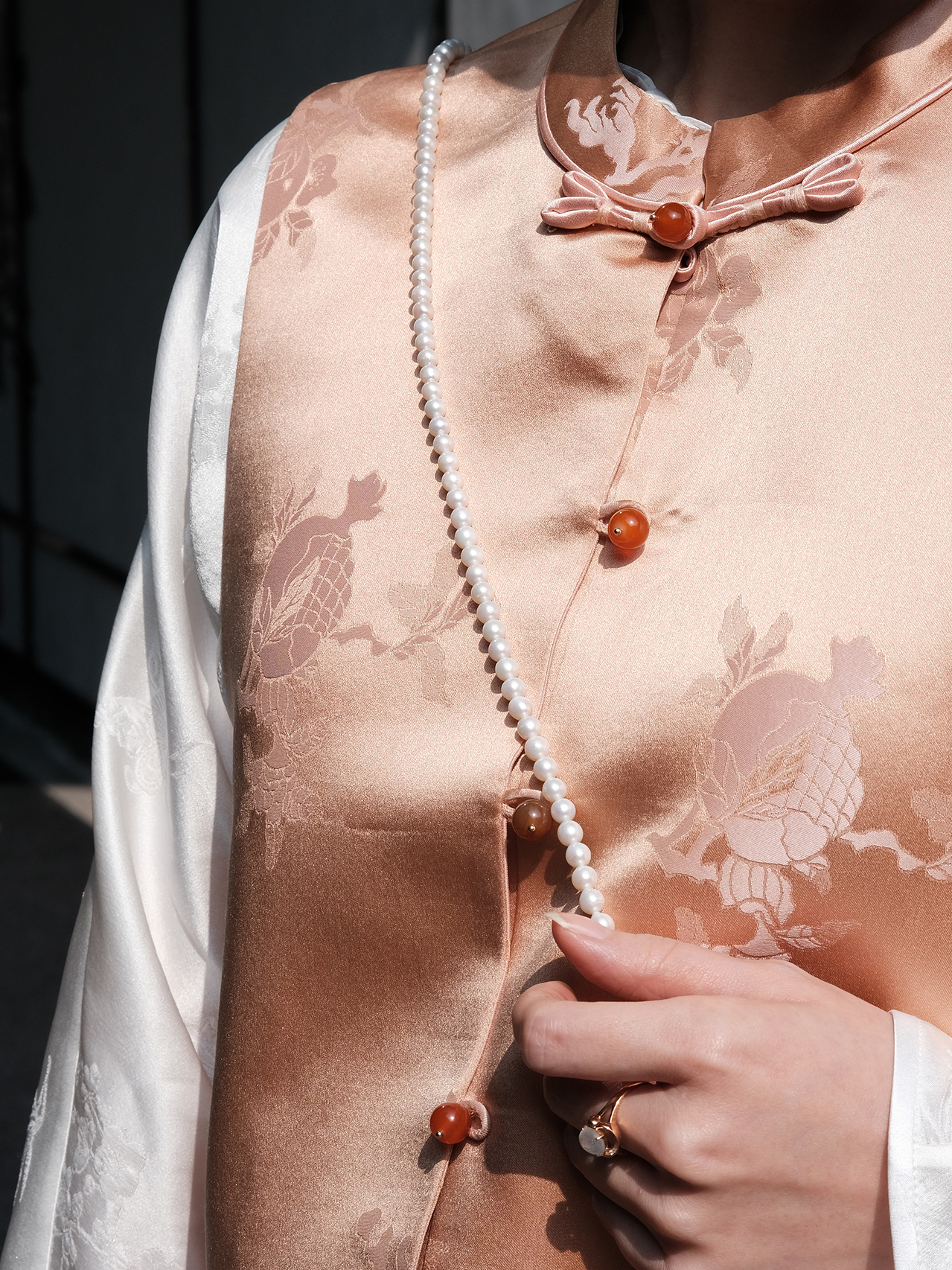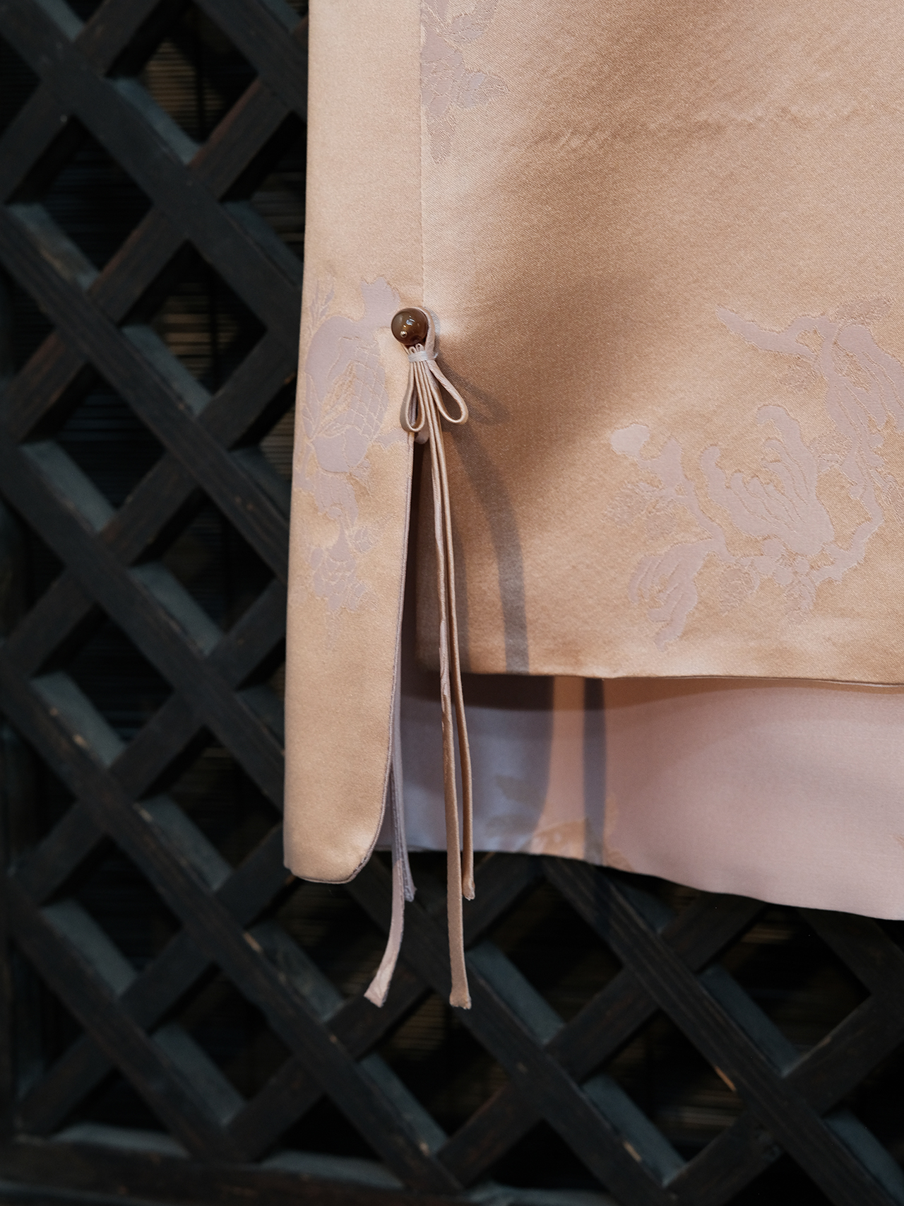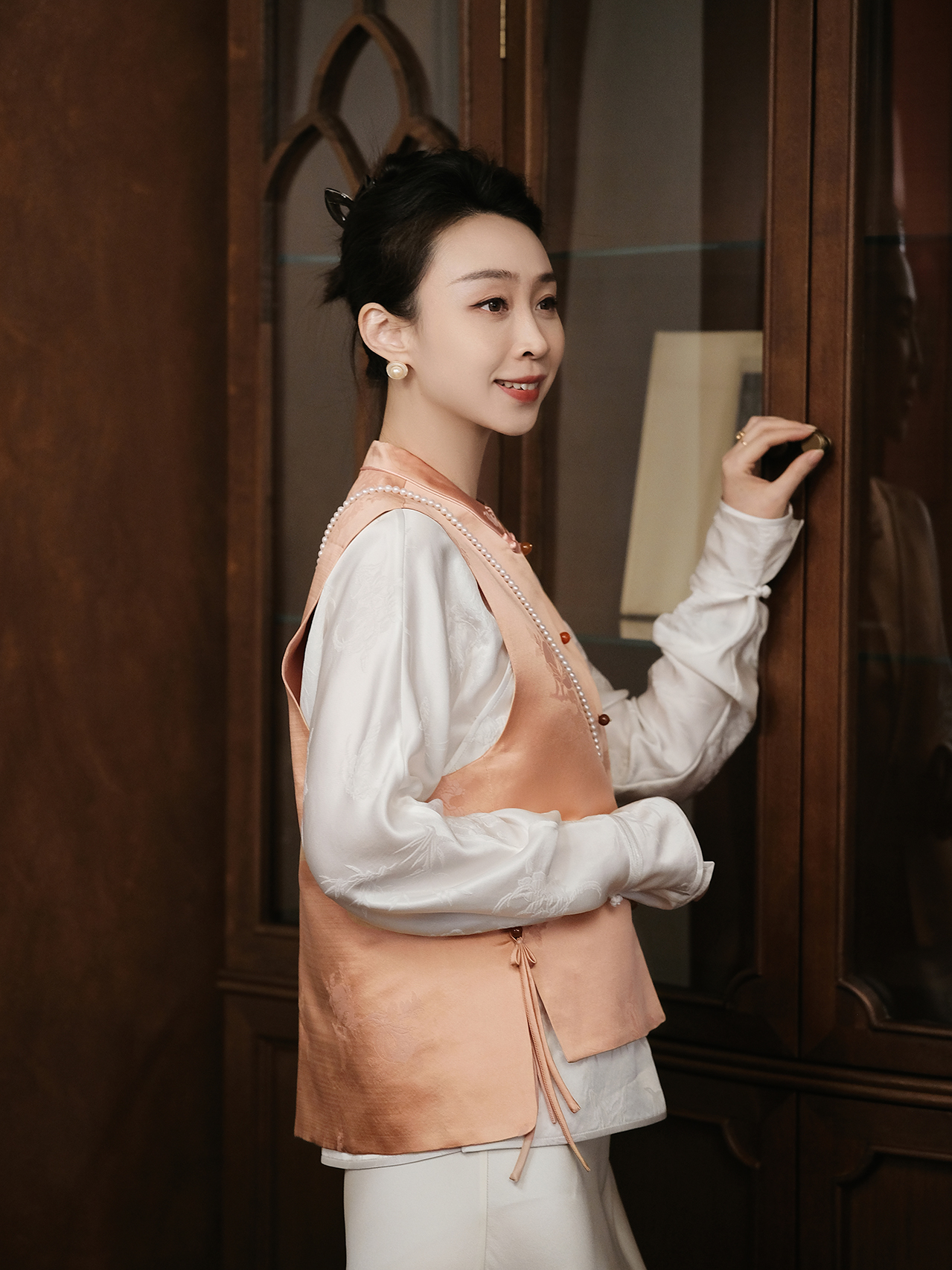 瑕疵|盛唐牡丹| 玉色石榴花纹花锦缎马甲[特价品](特殊商品不退不换)