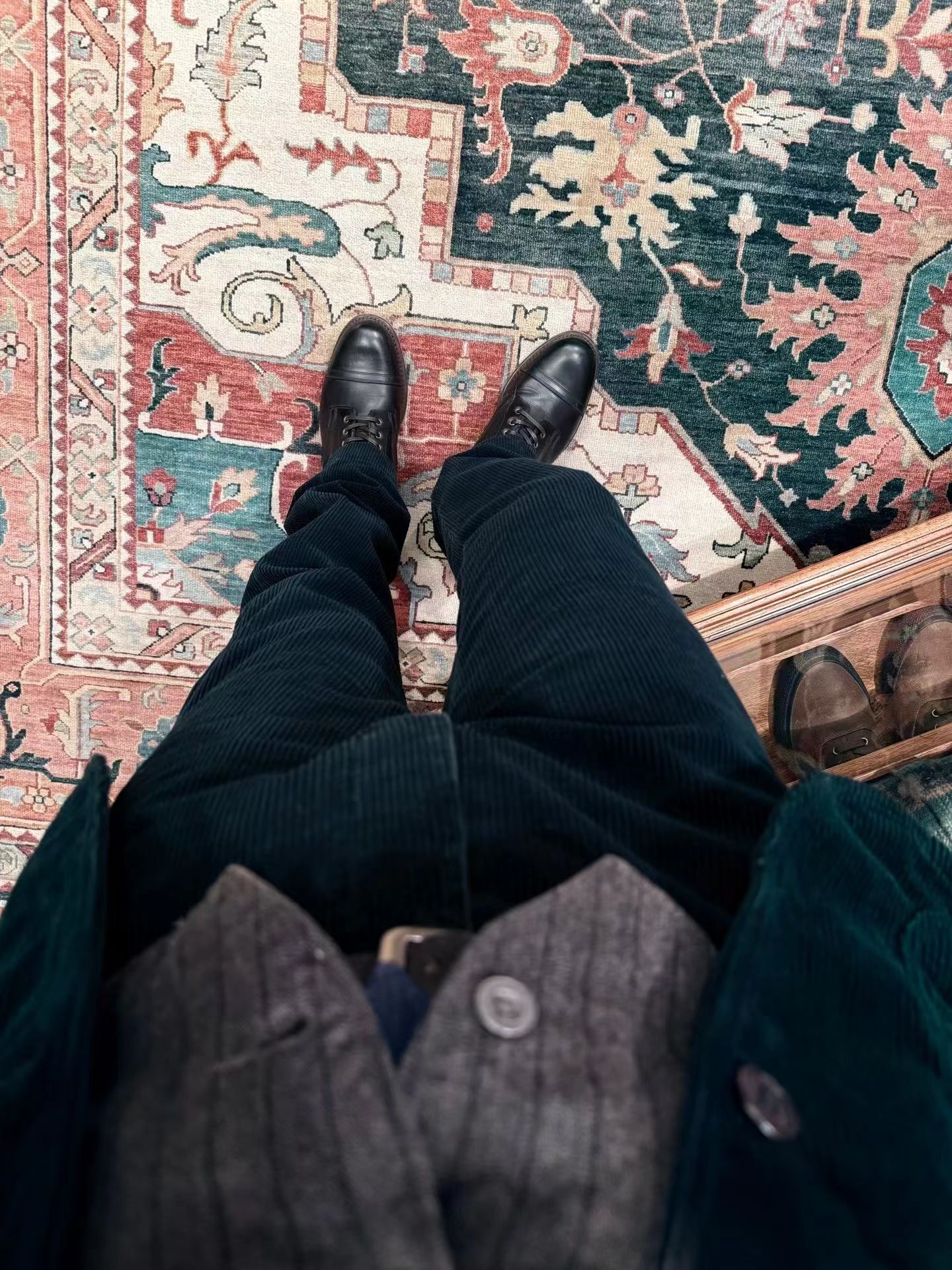 25褶裥棉质灯芯绒长裤复古支线,以深植于文化根源的考究精神,重新诠释19世纪末至20世纪中期的精典穿着。这条直筒版型长裤,堪称百搭神裤,其剪裁与比例经得起推敲,上身即显不凡轮廓。采用纯棉灯芯绒面料,手感丰厚柔软,肌理间透出温润光泽。细节处处蕴含复古巧思:正面利落褶裥、金属纽扣点缀的门襟与拉链开合,腰带环与可调节裤脚按扣袢,赋予穿着个性化的余裕。两侧斜插口袋与背面纽扣式口袋,兼顾实用与线条美感。共献三款沉稳色调:精典复古棕、深邃黑、以及低调浅绿,每一色都是跨越季节的穿搭基石。