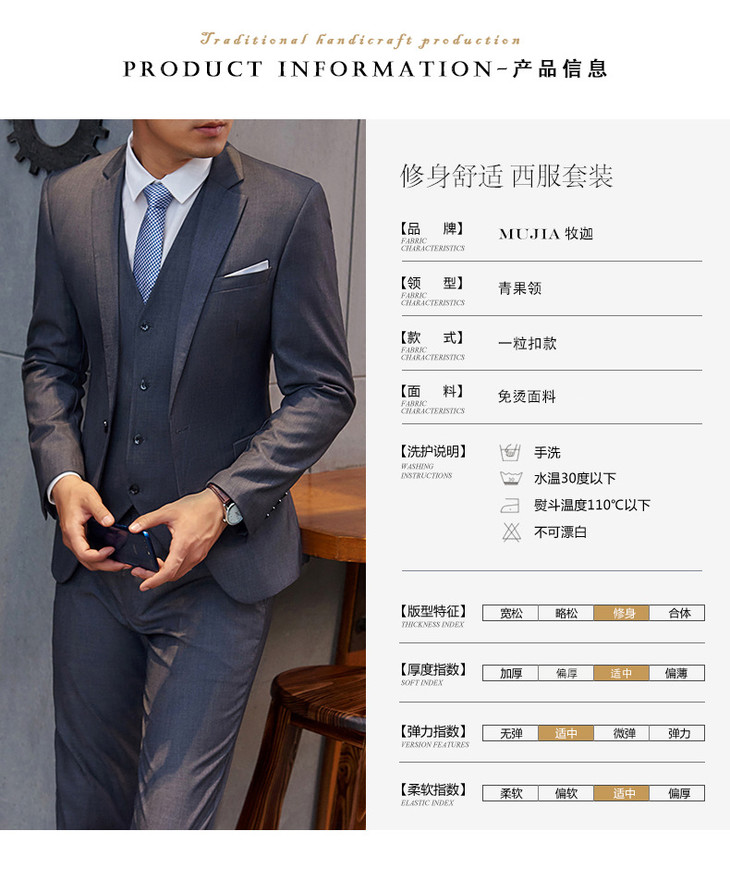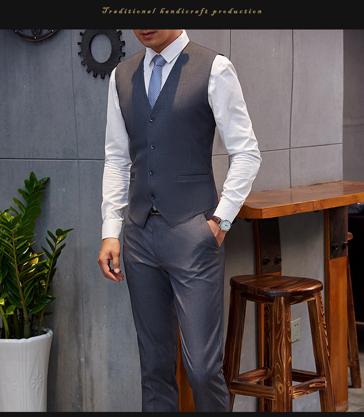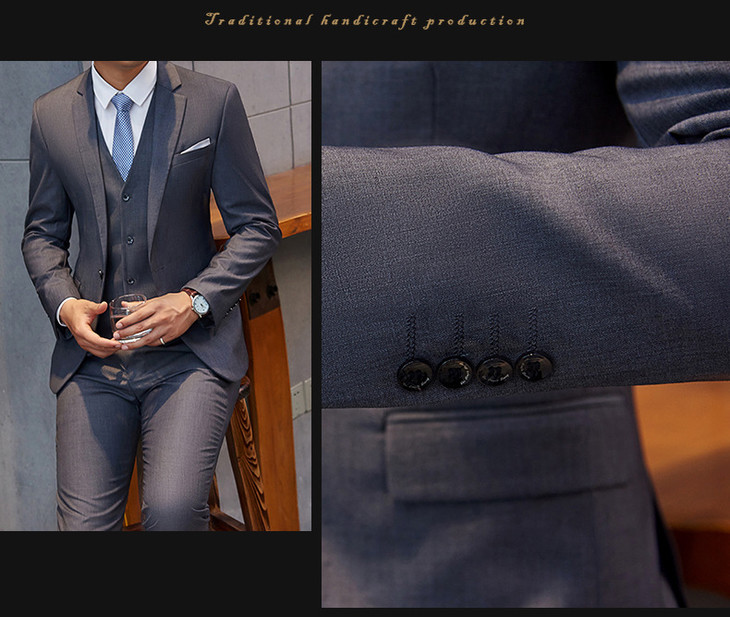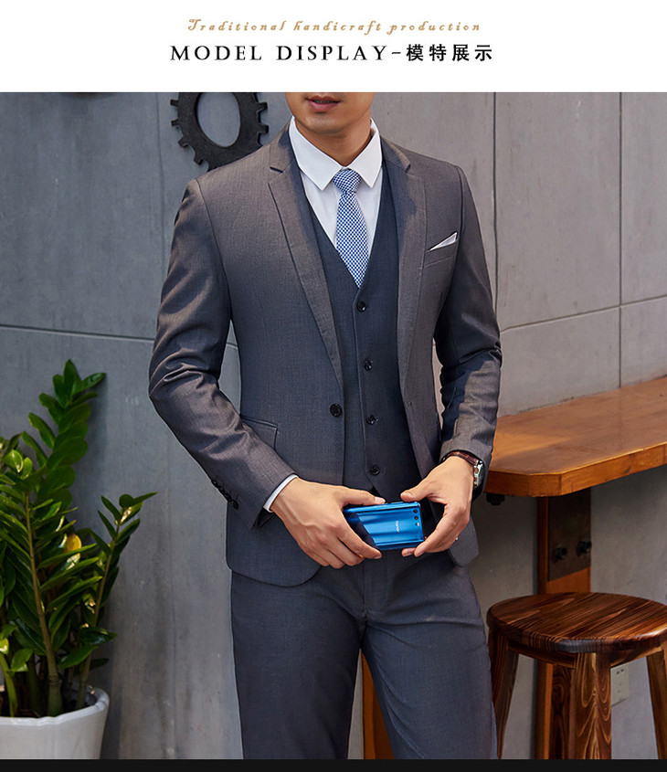 【西装男】男式西服套装三件套 男士结婚新郎伴郎商务西装套装