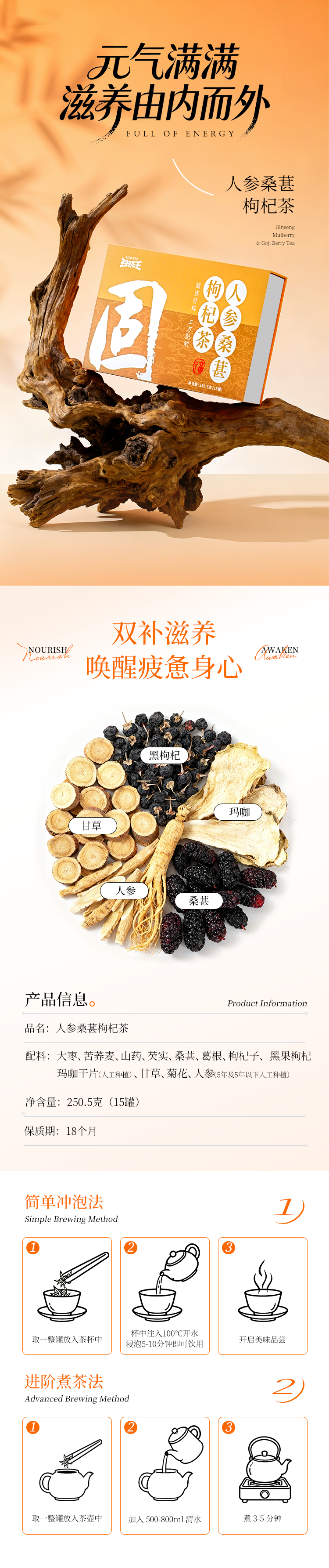 玲珑王 人参桑椹枸杞茶(固) 250.5克 15罐