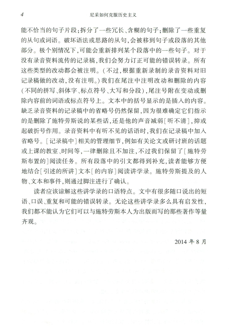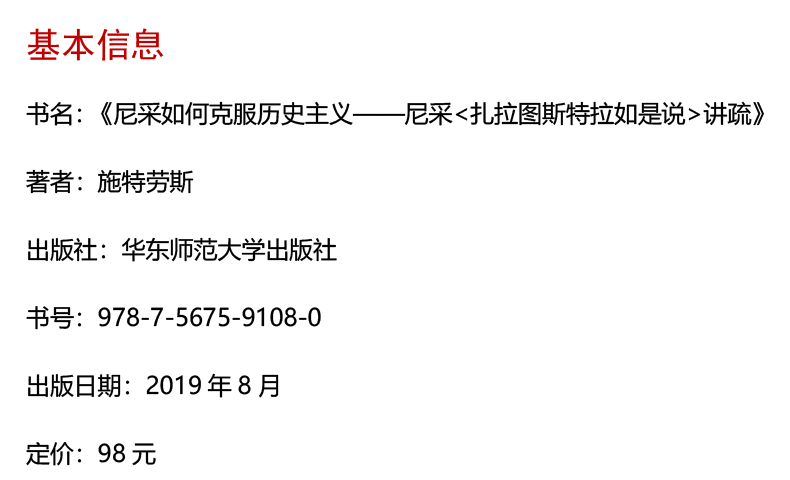 尼采如何克服历史主义 尼采《扎拉图斯特拉如是说》讲疏 施特劳斯讲学录之一 经典与解释丛书 哲学研究 正版 华东师范大学出版社