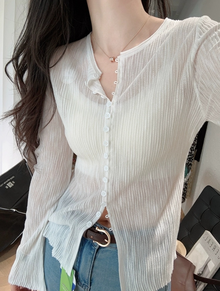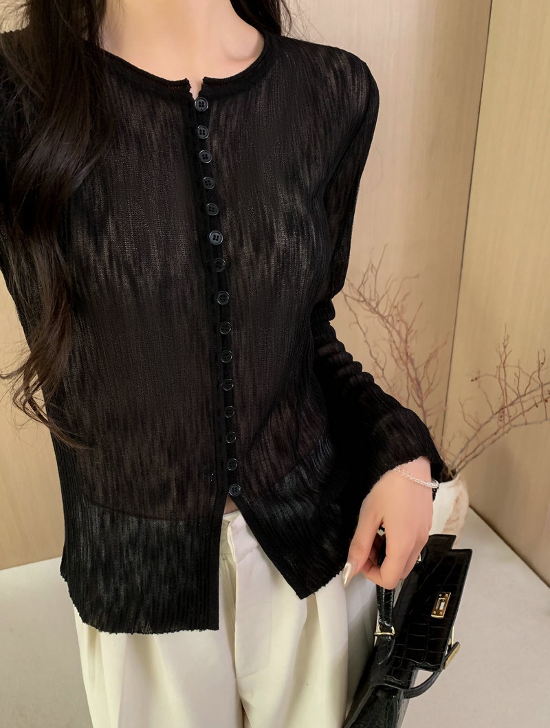 全衣采用利爽的竹节麻天丝,整件克143g,轻柔无物感。竹节麻纱线上身有磨砂手感 贴身穿凉爽舒适门襟的多扣设计很亮眼很精细。