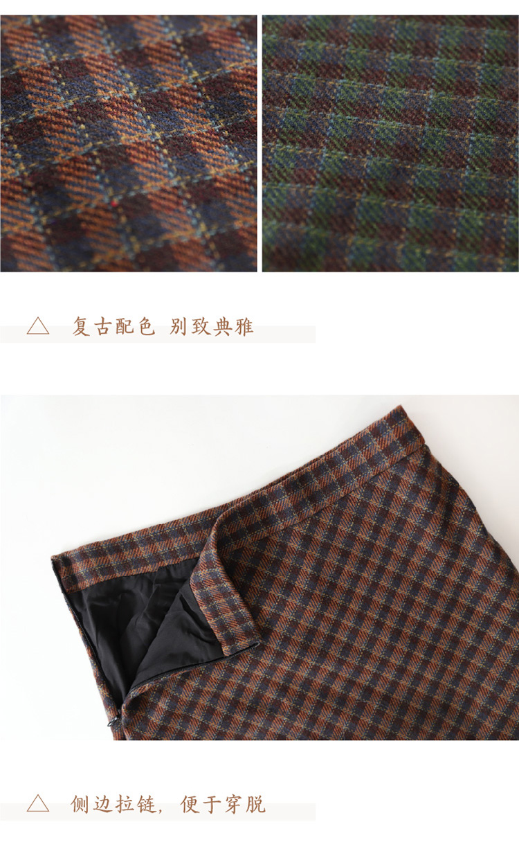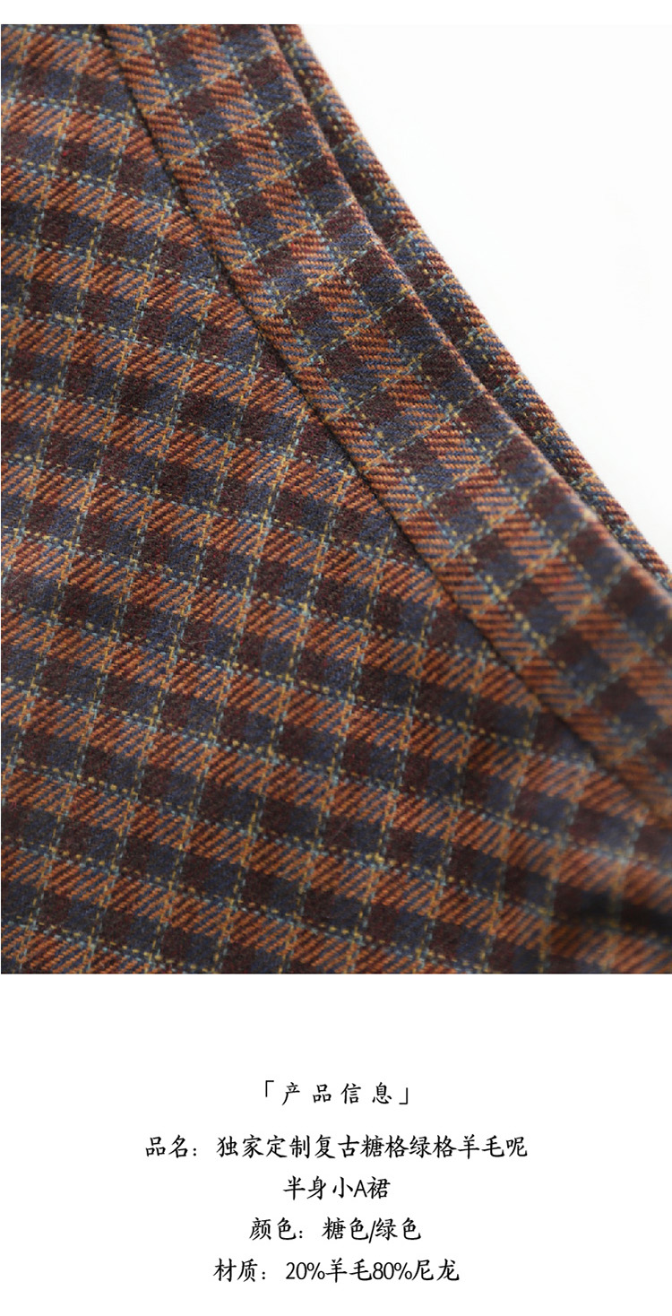 米马成衣 独家定制复古糖格绿格羊毛呢半身小A裙 会是姜喜宝喜欢的裙子嘛?