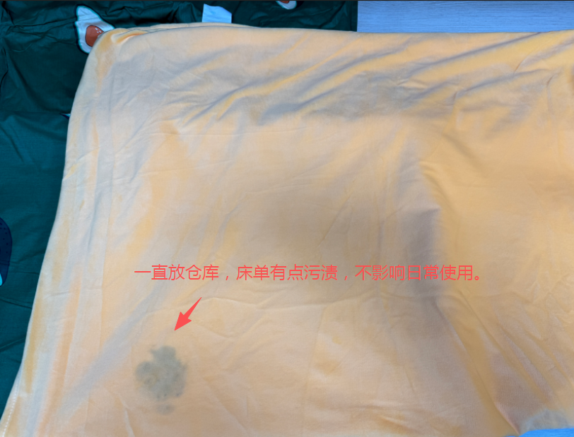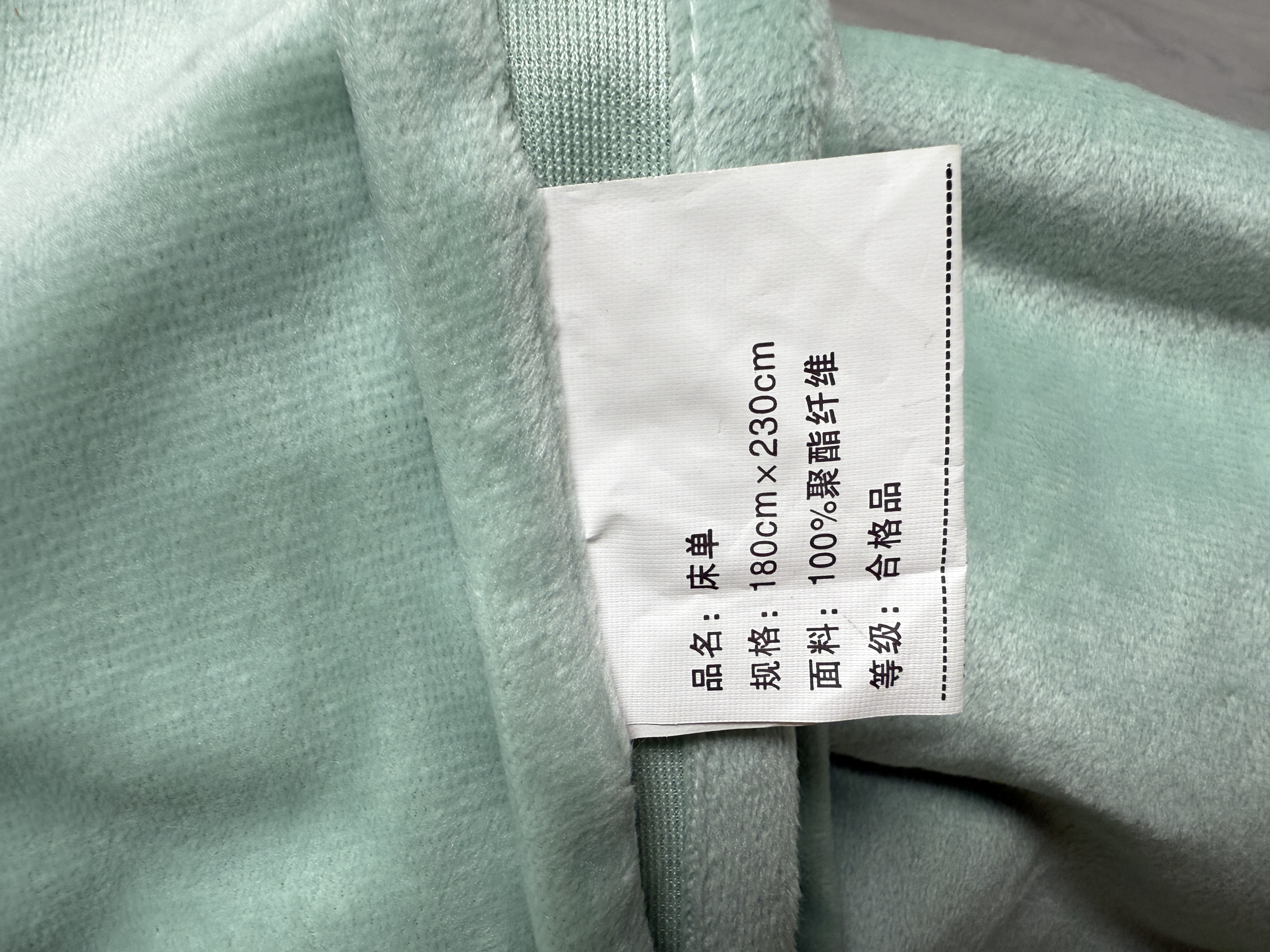 牛油果绿三件套:床单*1、被套*1、枕套*1,外面是全棉材质,里面是绒面,床单有脏污,下面有图片可以参考,不影响使用,介意者慎拍!