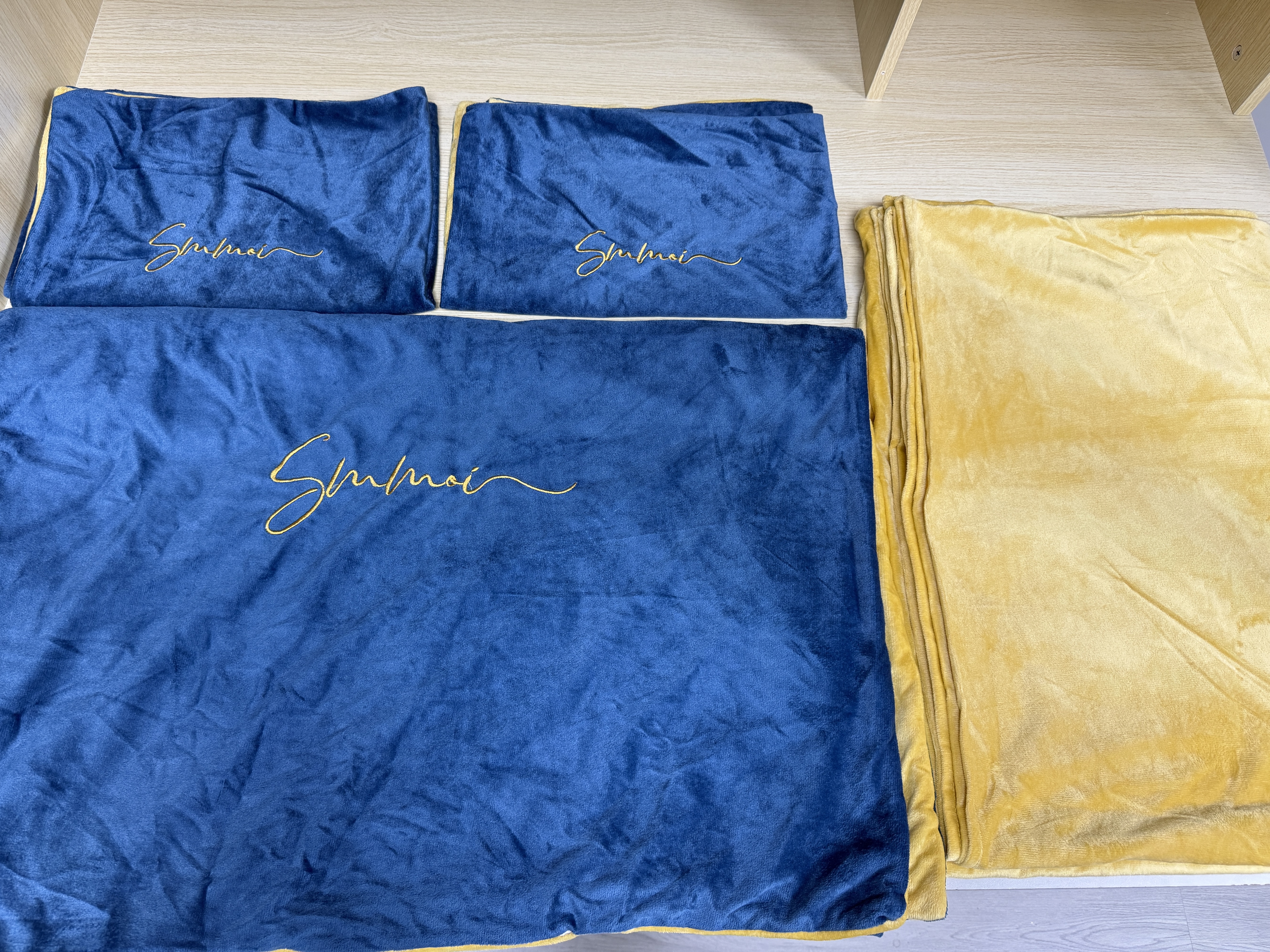丝绒蓝四件套:床单*1、被套*1、枕套*2
