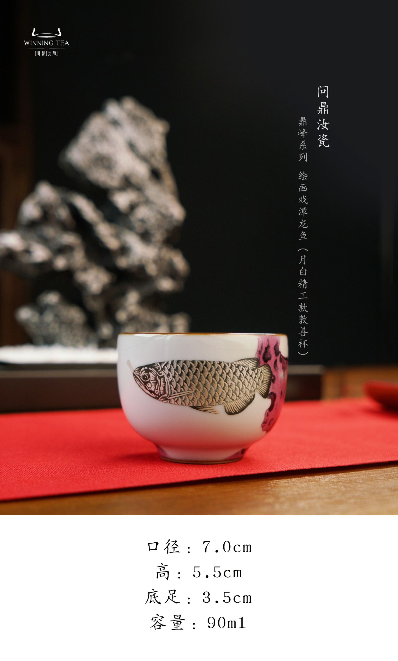 问鼎汝瓷鼎峰系列月白精工款敦善杯(绘画戏潭龙鱼)