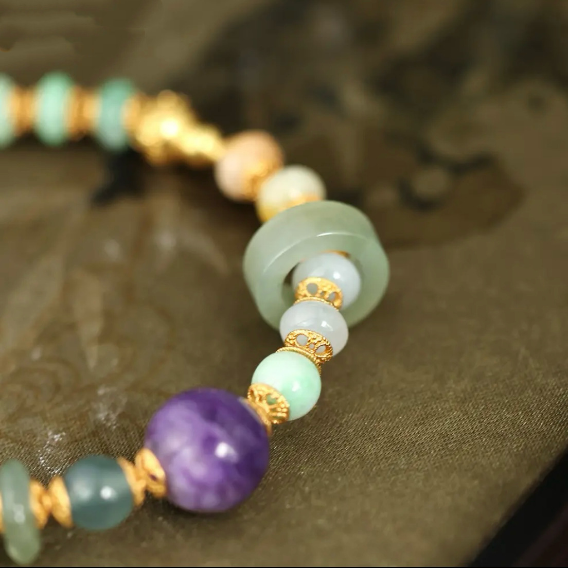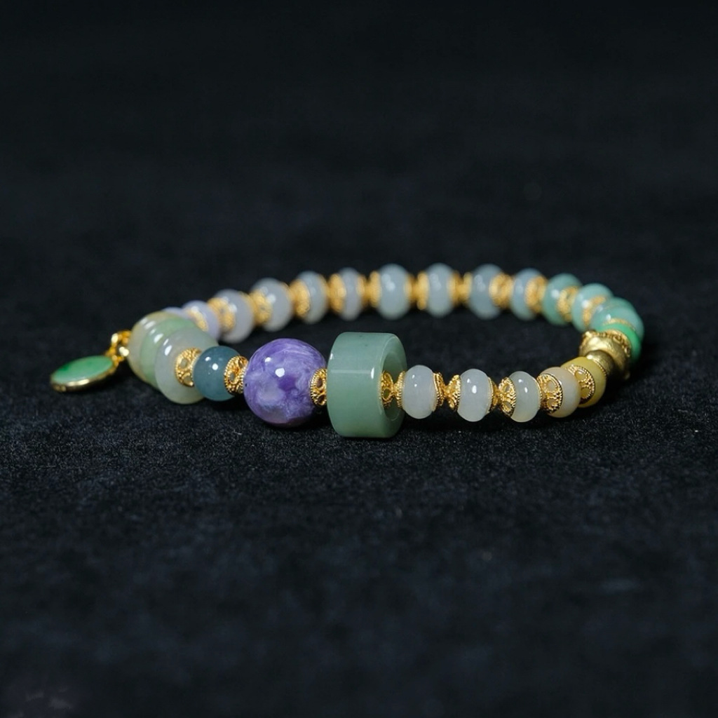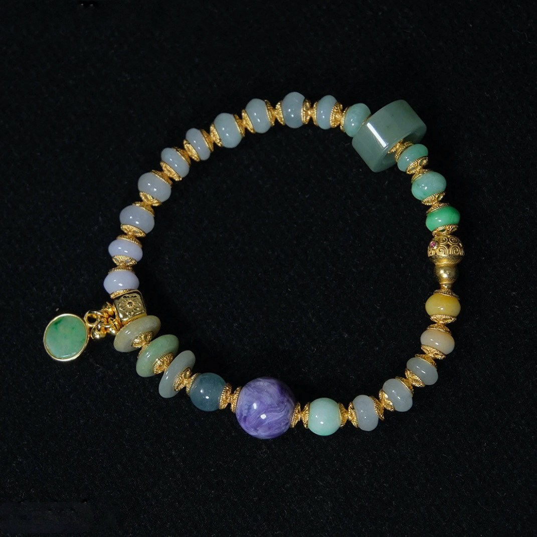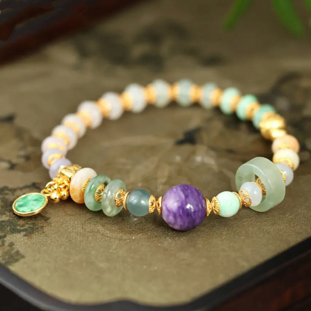紫龙晶的天然纹路如烟云流动,与手串的浪漫呼应,赋予手腕一抹"紫气东来"的祥瑞。