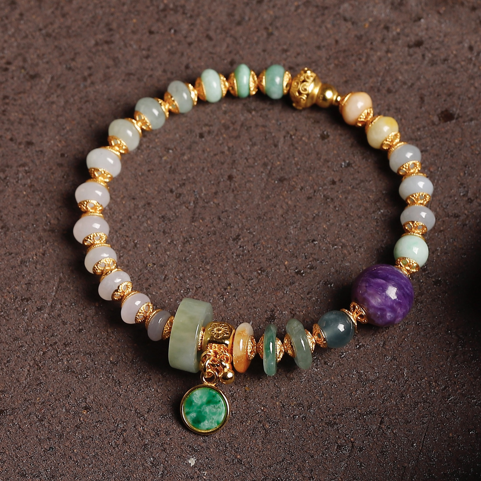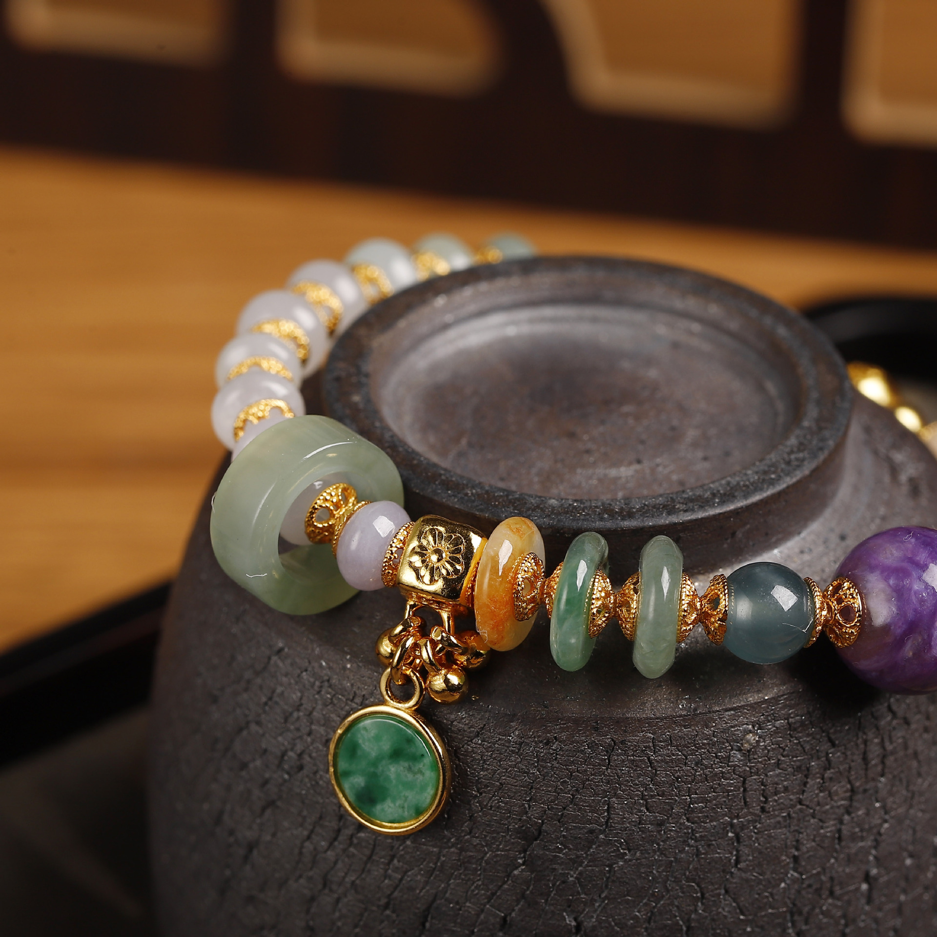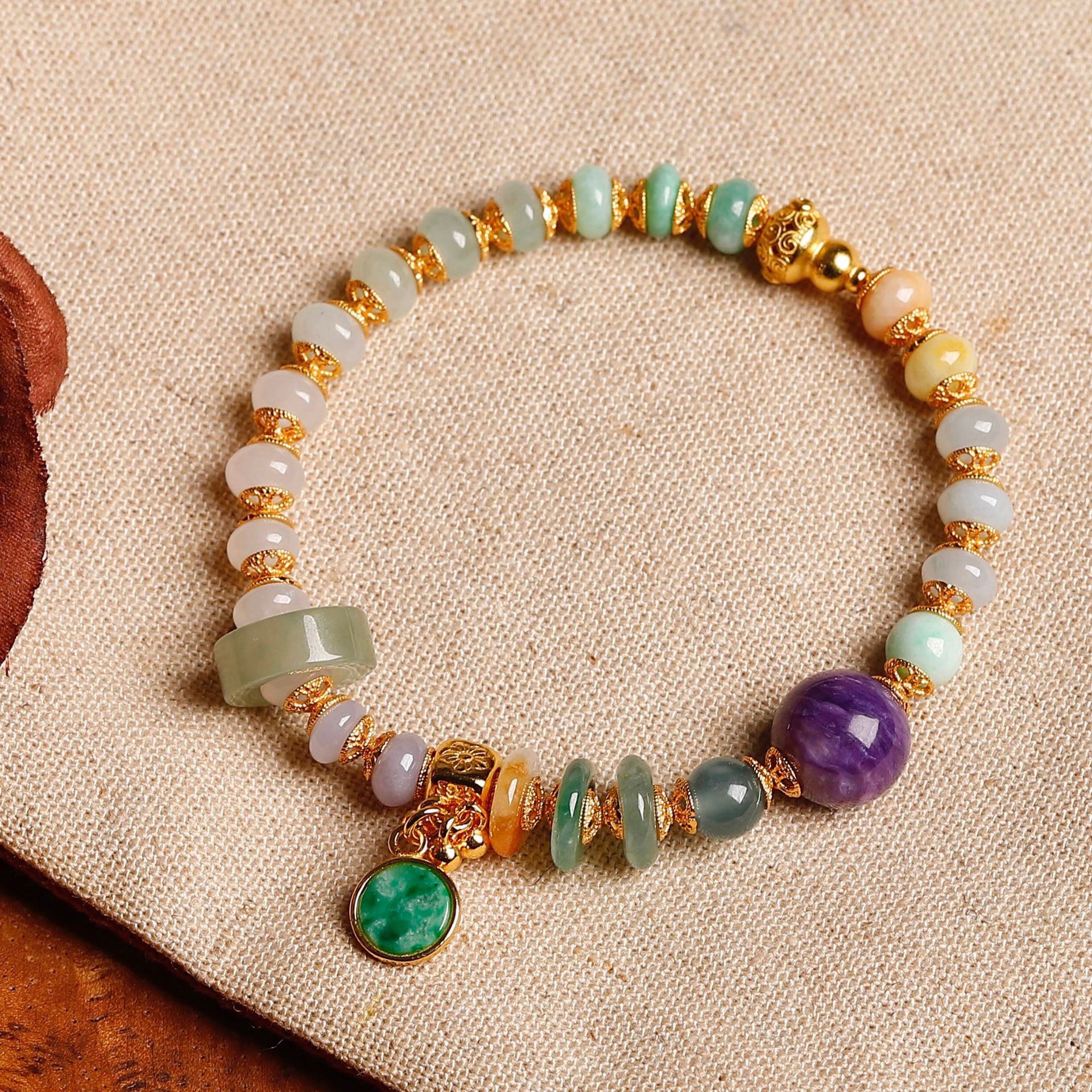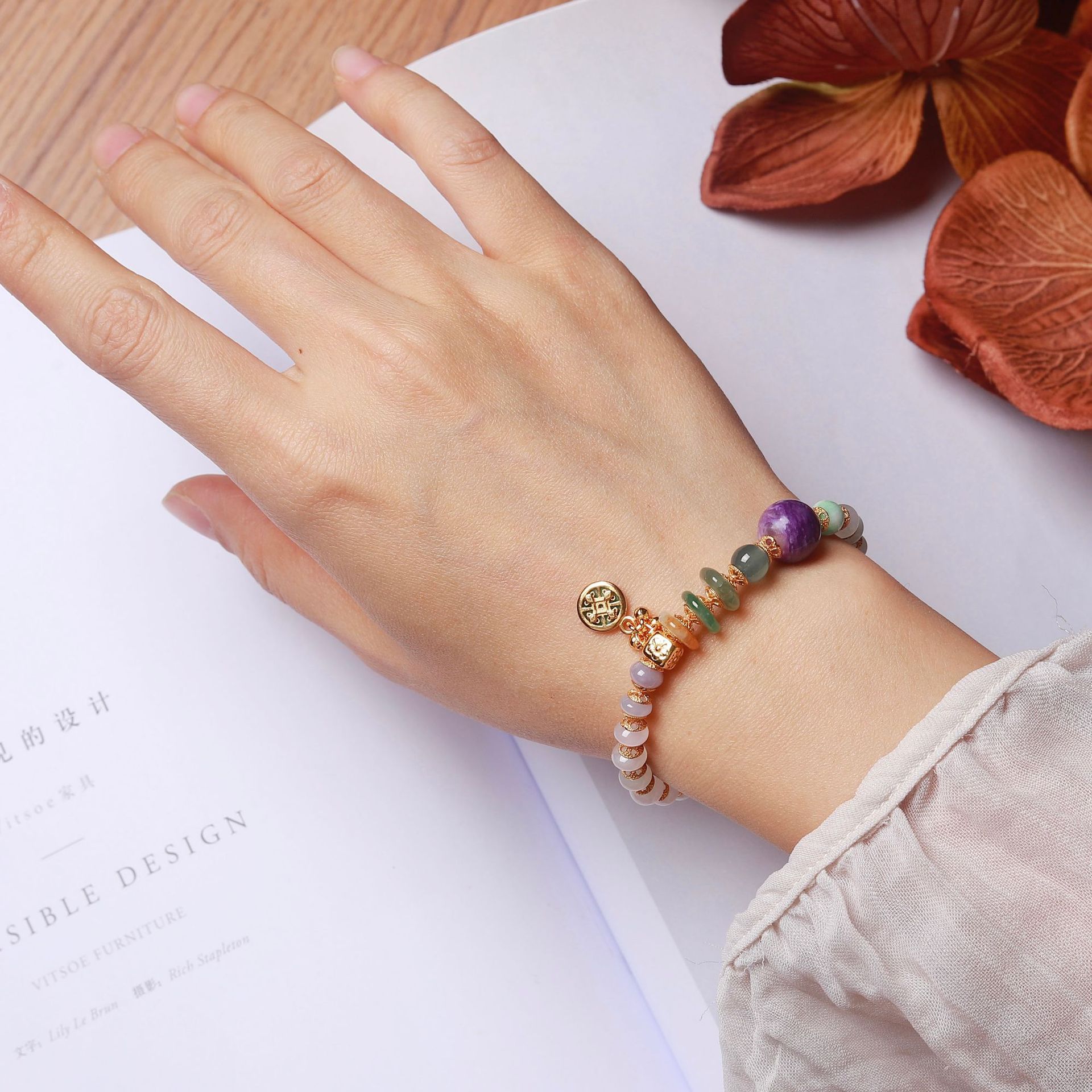 紫龙晶的天然纹路如烟云流动,与手串的浪漫呼应,赋予手腕一抹"紫气东来"的祥瑞。