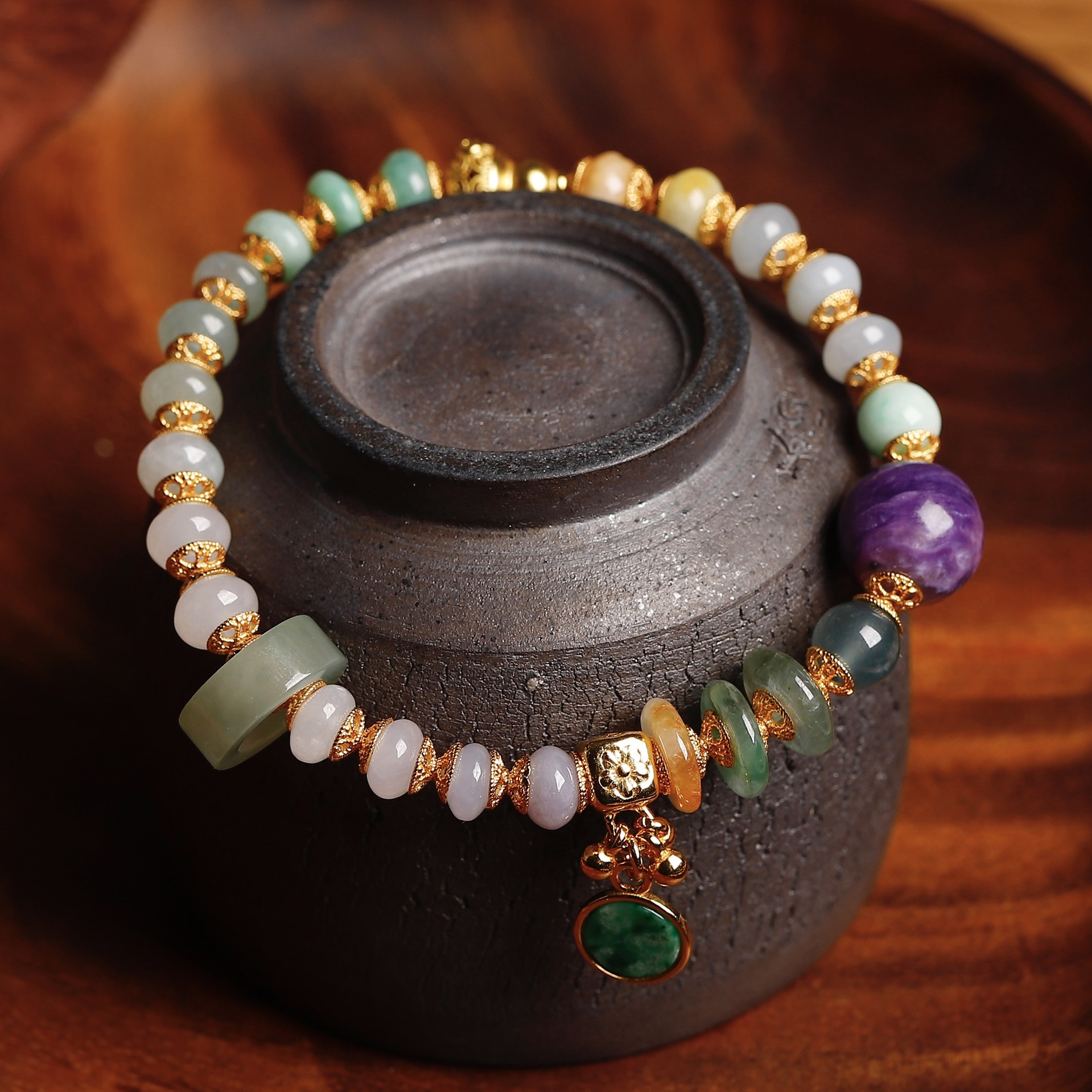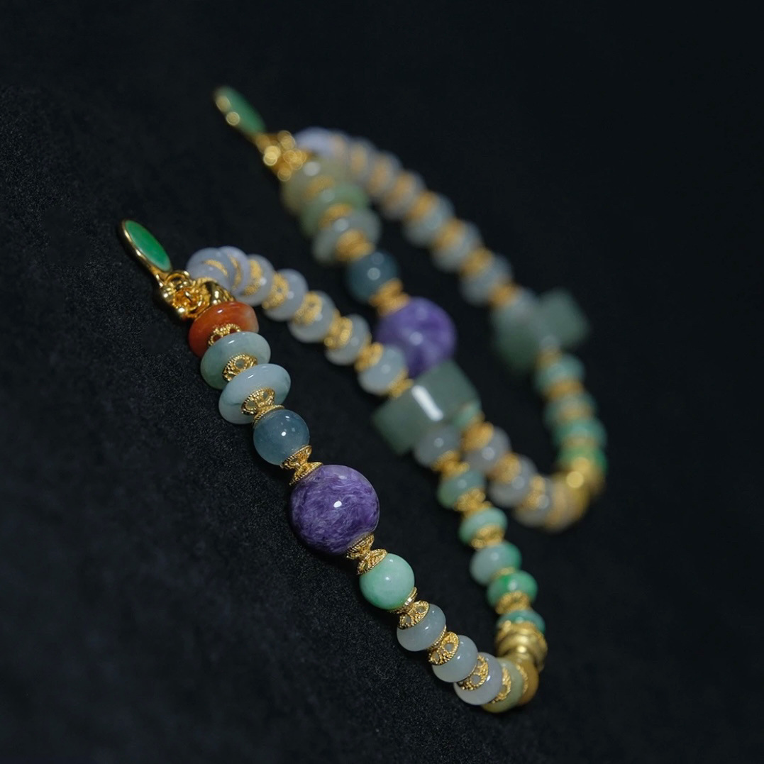 这个春夏,让翡翠的三彩色与紫龙晶共舞,织就一幅新中式的东方画卷。暮山紫的贵气,紫龙晶的深邃,交织成神秘的诗意。