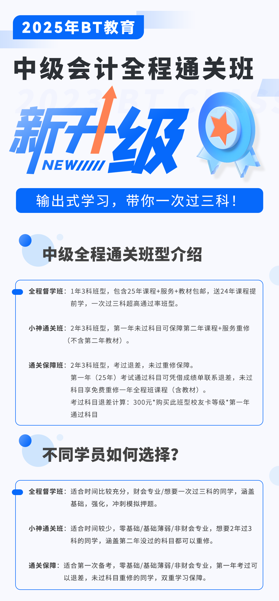 温馨提醒:25年中级会计课程,赠送24年全套课程+24年教材(教材送完即止)。随报随学,报了即可跟课学习。(课程服务将于正式开课开启,督导老师届时会分配班主任和班群)