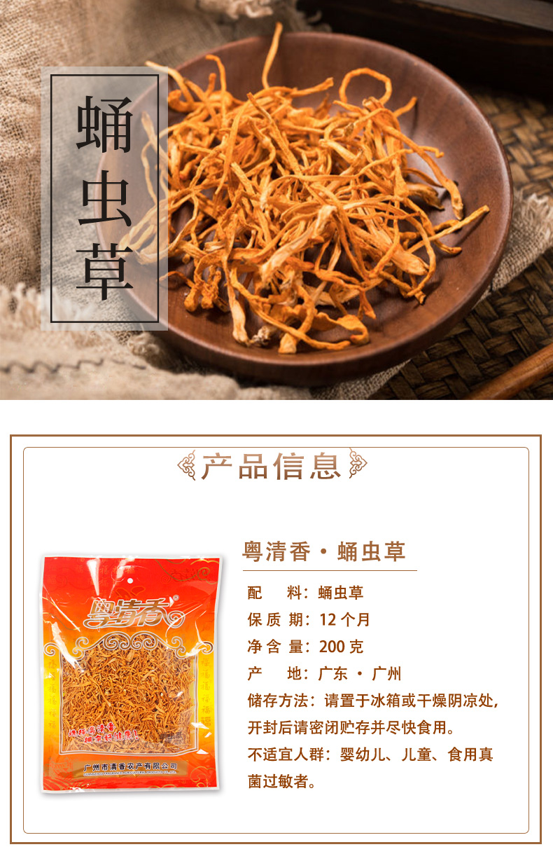 【助力帮扶】粤清香汤料蛹虫草袋装200g【基地直邮到家】