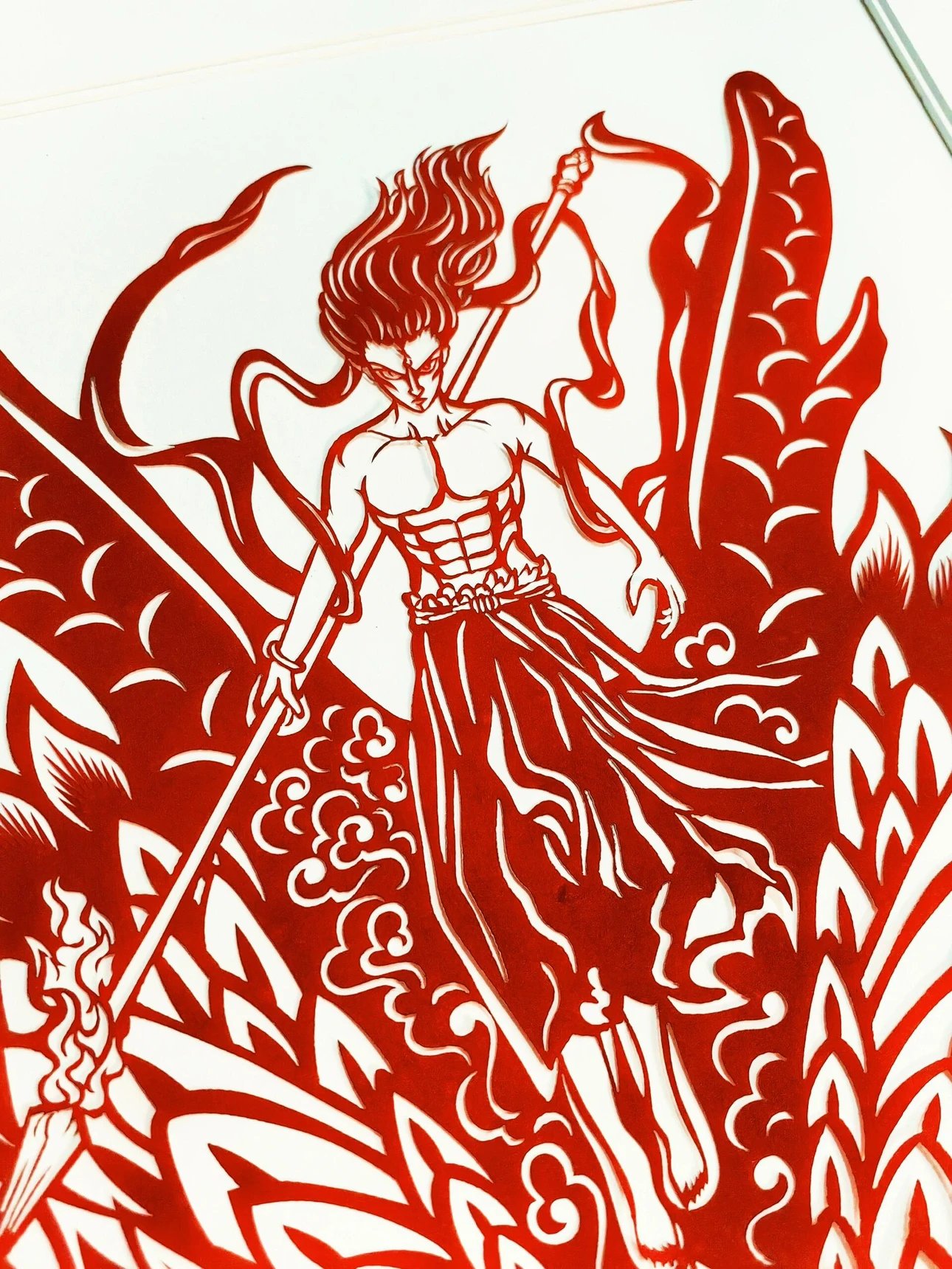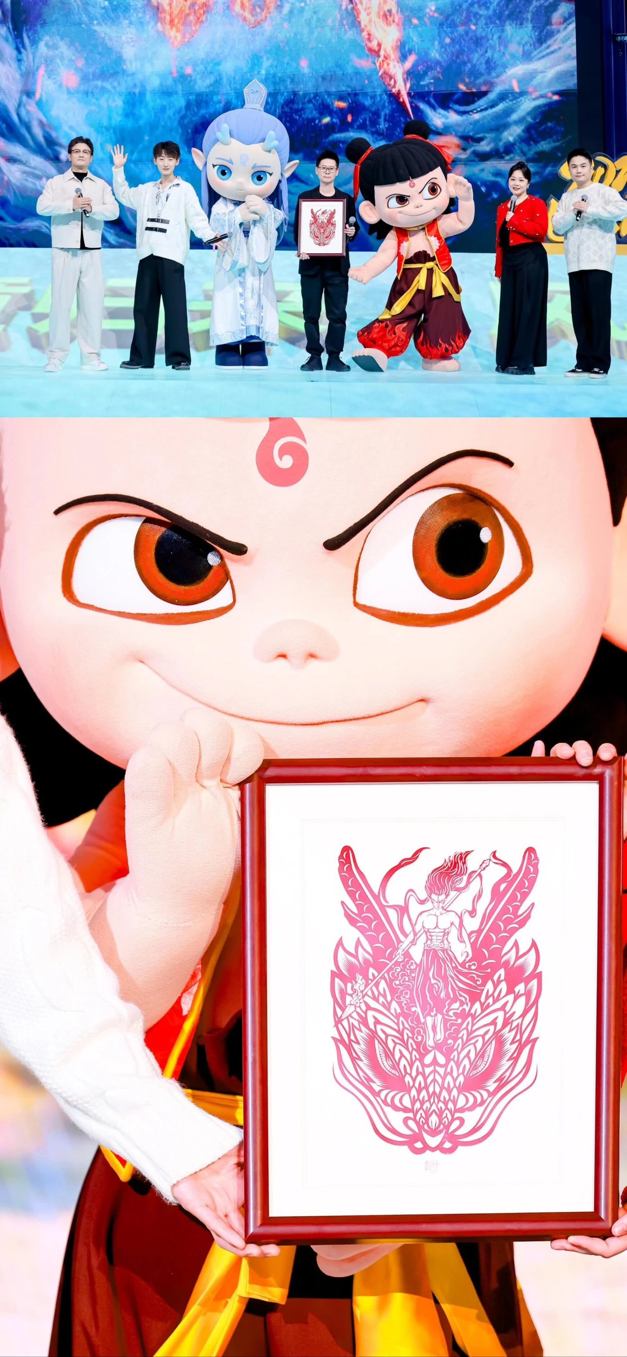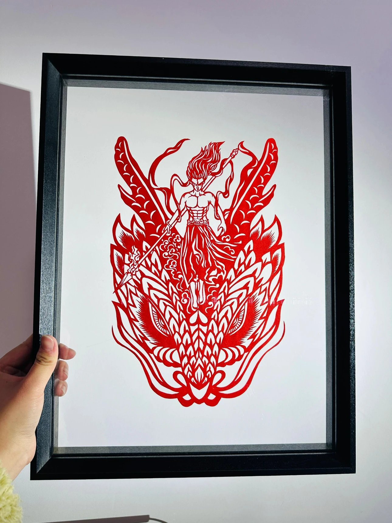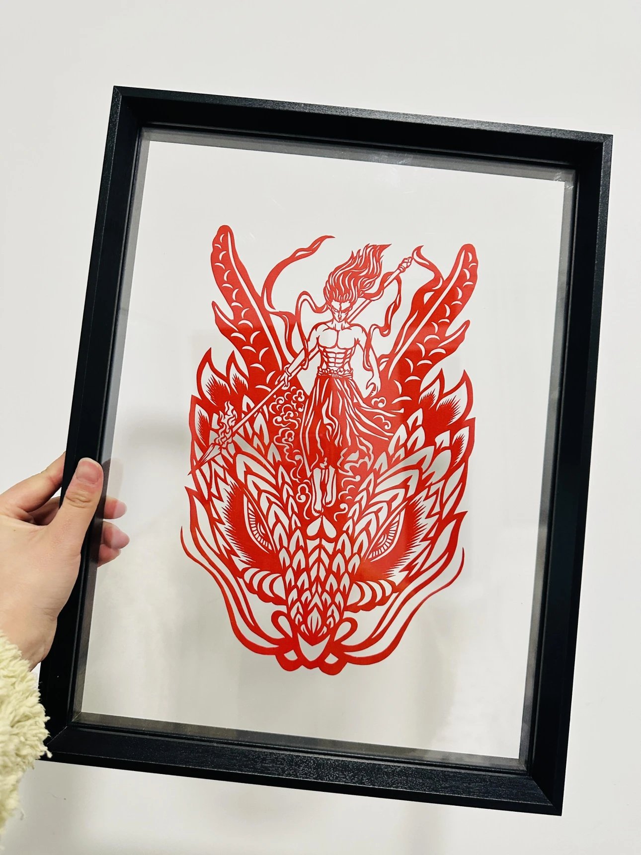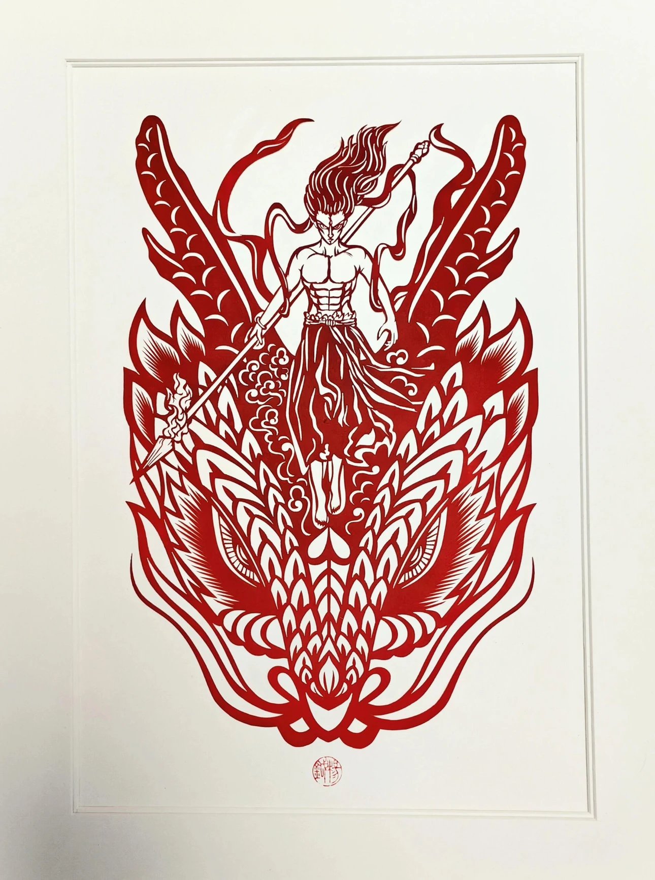 定制团‼️哪吒周边、get同款~【哪吒艺术剪纸】非遗文化与国漫相碰撞💥以红黑浴火重生的哪吒为内容设计了一幅作品,这幅海报和剪纸的中国红极致契合。