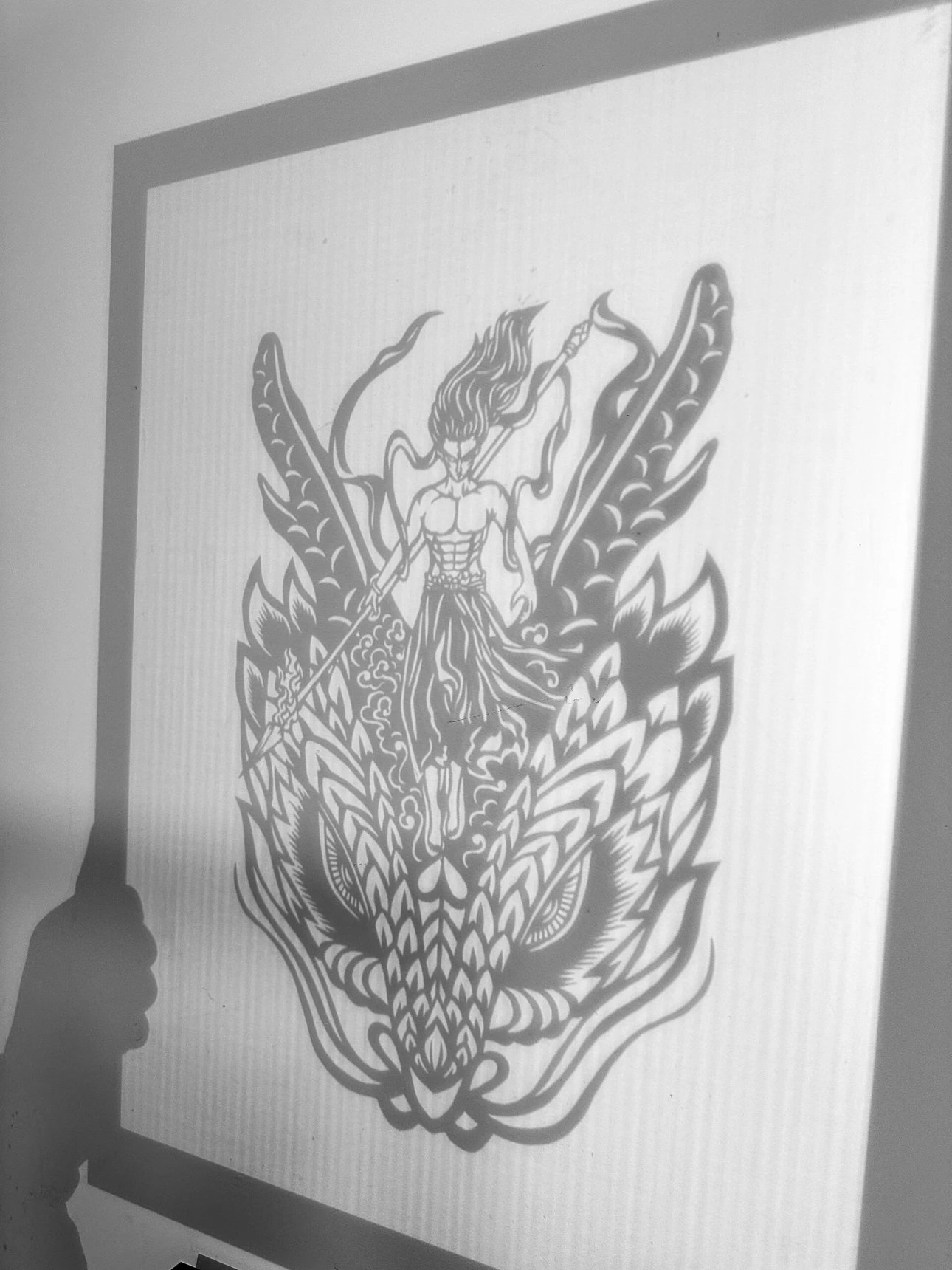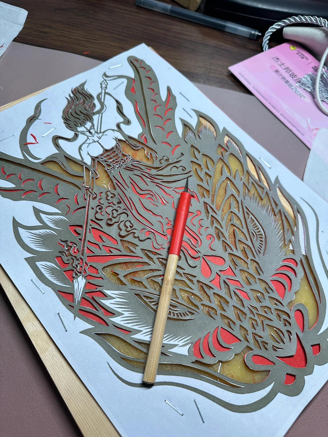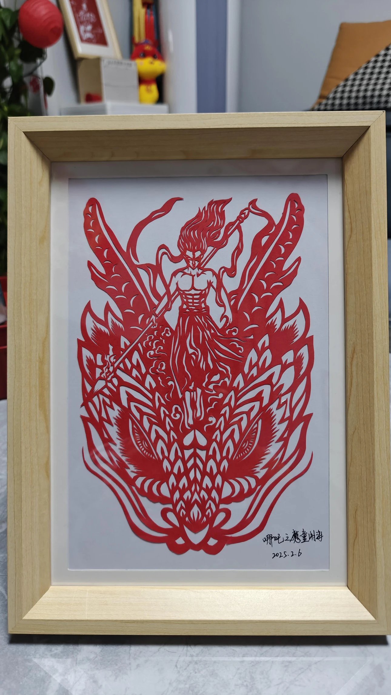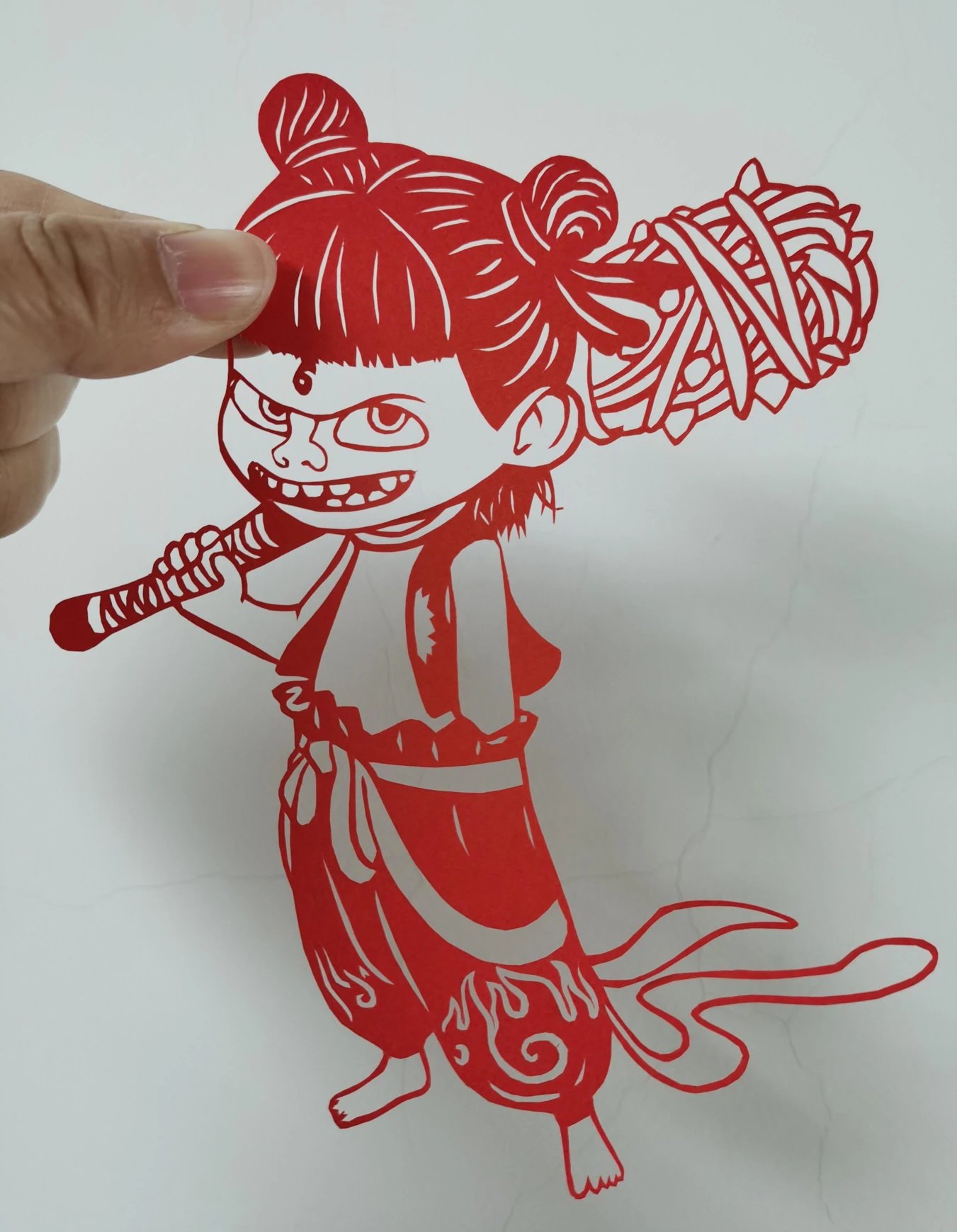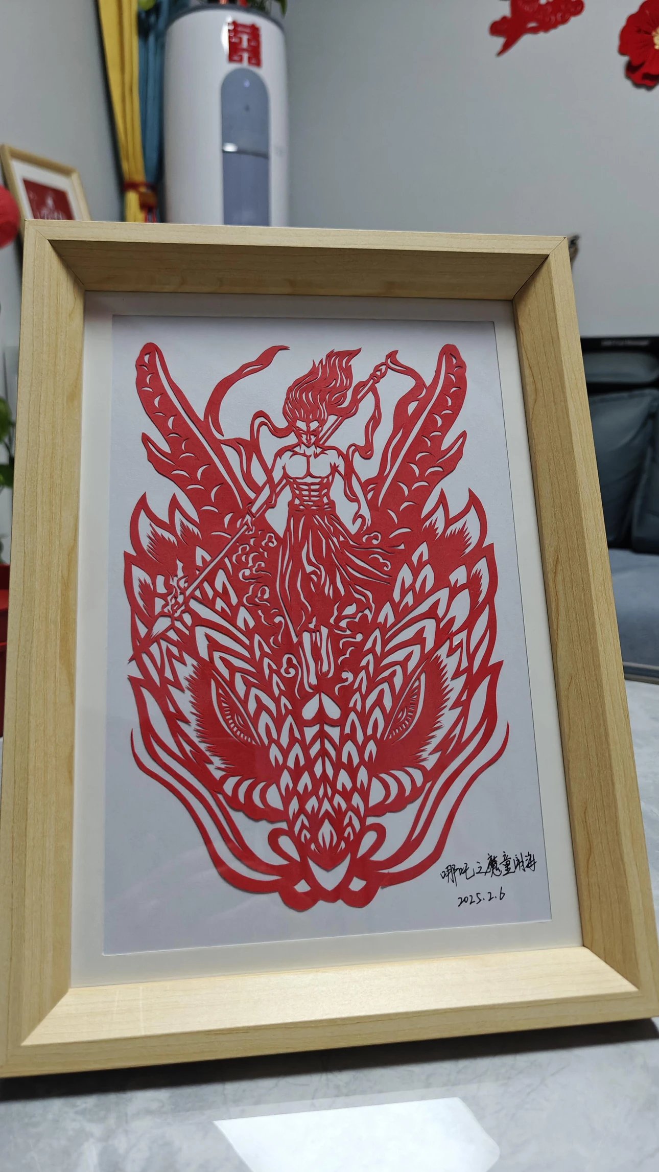 定制团‼️哪吒周边、get同款~【哪吒艺术剪纸】非遗文化与国漫相碰撞💥以红黑浴火重生的哪吒为内容设计了一幅作品,这幅海报和剪纸的中国红极致契合。