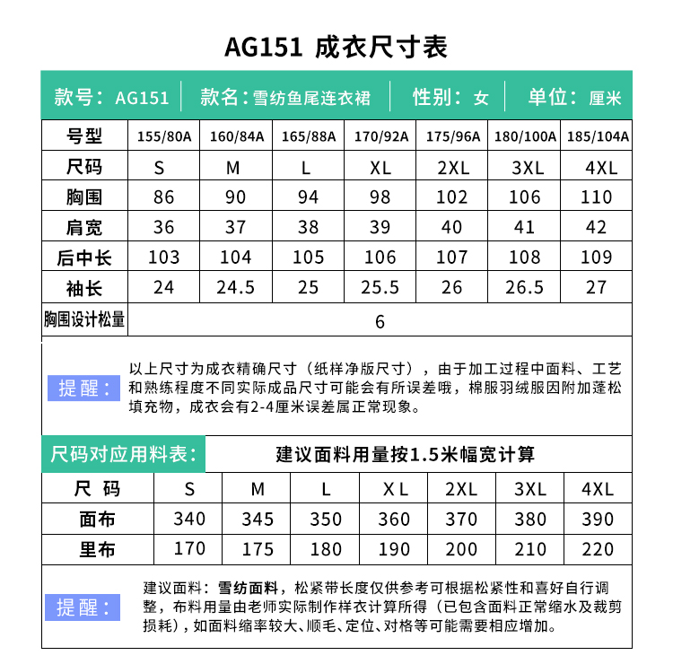裁缝学苑AG151 法式雪纺连衣裙纸样夏女装复古鱼尾裙打版裁剪样板