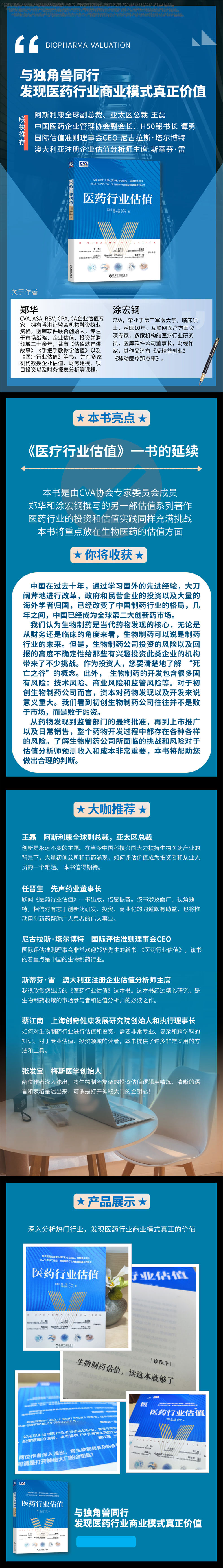 本书从生物制药行业的发展和现状切入,为我们展现了生物制药从药物发现到临床试验再到上市销售的全景图,并从药物研发、产品管线、监管政策、融资环境等多个方面解析了影响生物药估值的多种因素。在确立了价值标准后,本书给出了市场法、收益法和成本法三种生物药估值方法,并详细介绍了其优缺点与适用条件,并以创新药估值为例,通过多个模拟案例,重点阐述了风险调整后净现值分析法的使用,无论是对生物制药行业的从业者,还是对投资者或研究人员,都非常有借鉴意义。
