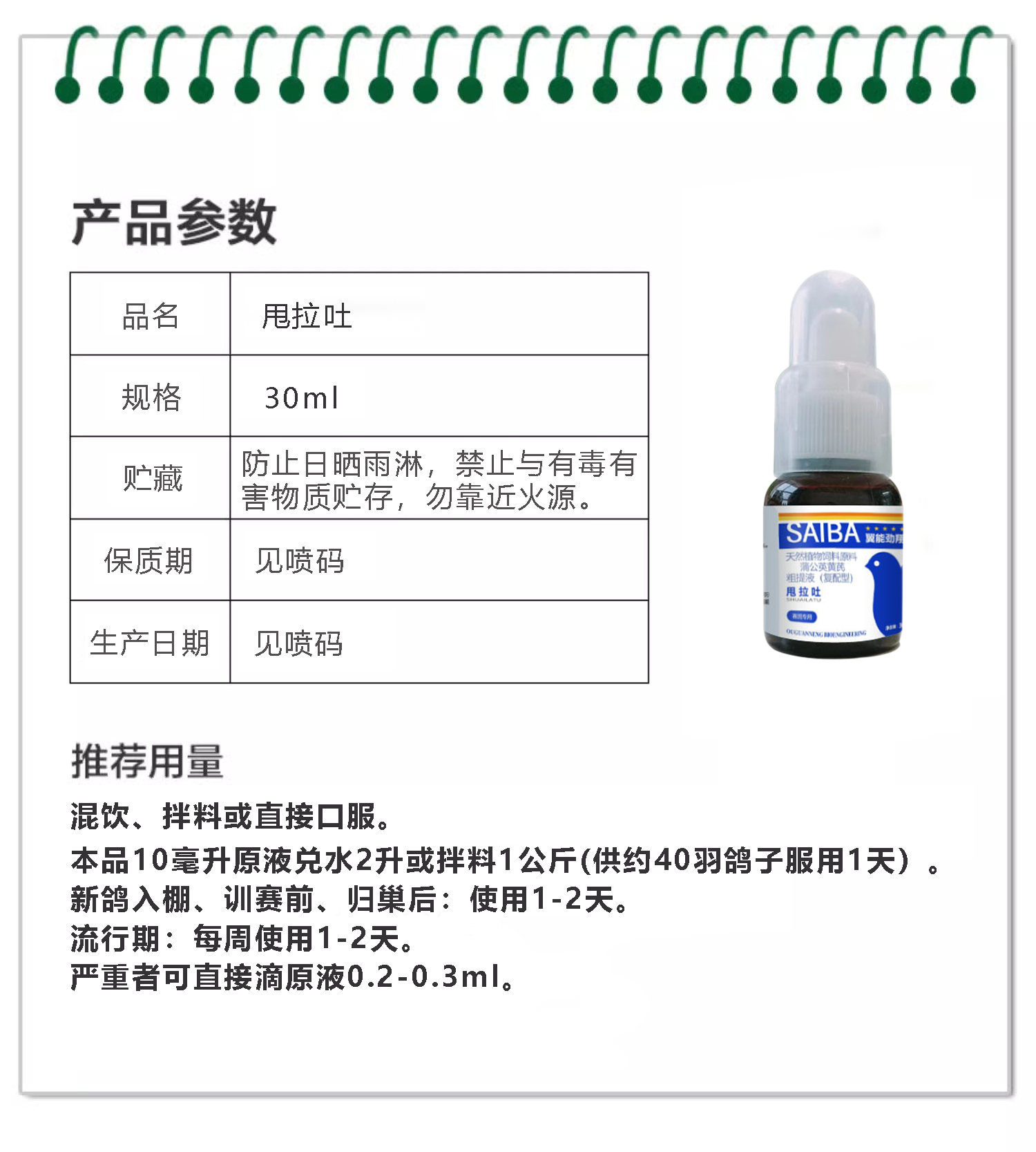 翼能【甩拉吐】腺病毒绿便30毫升赛鸽用品吐食甩食绿便积食