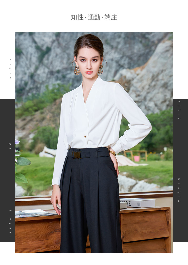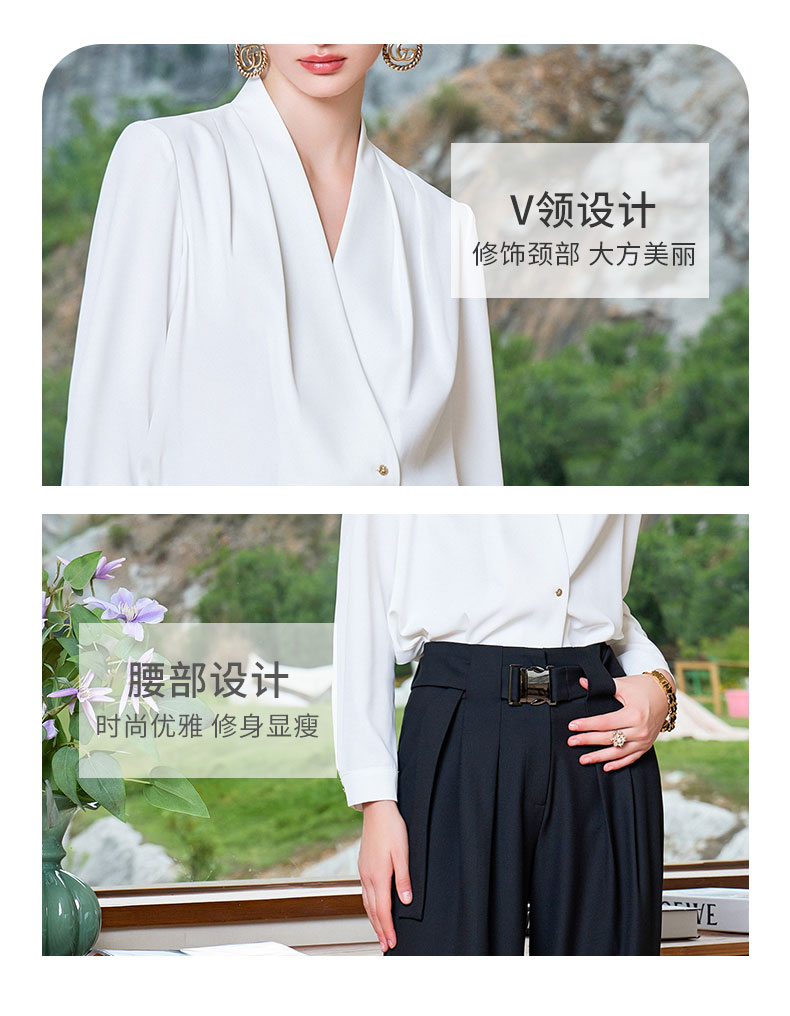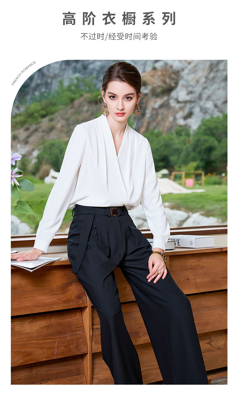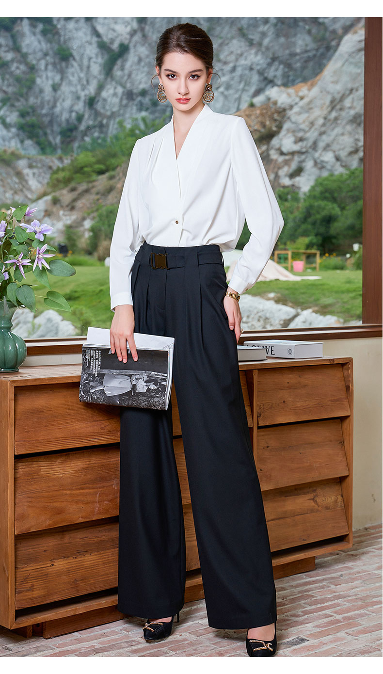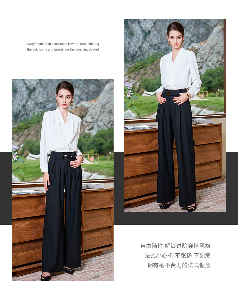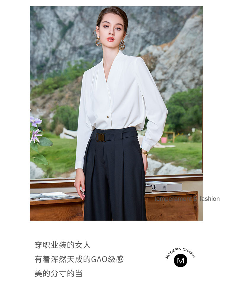AD白色上衣轻熟法式小众长袖女衬衫时尚洋气阔腿裤显瘦两件套装裤