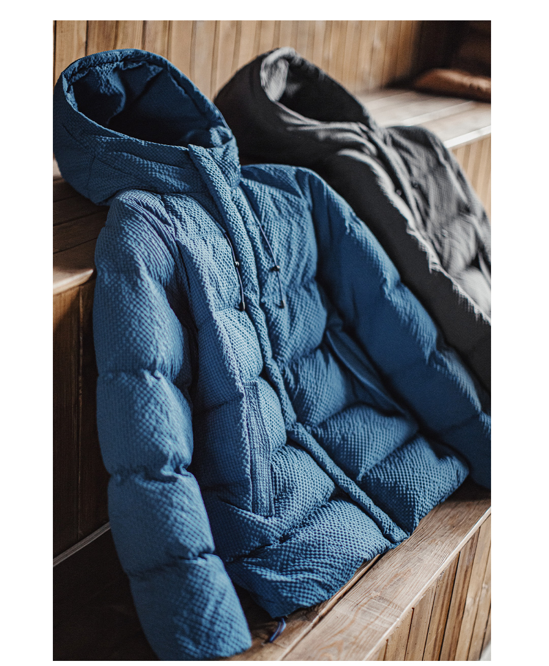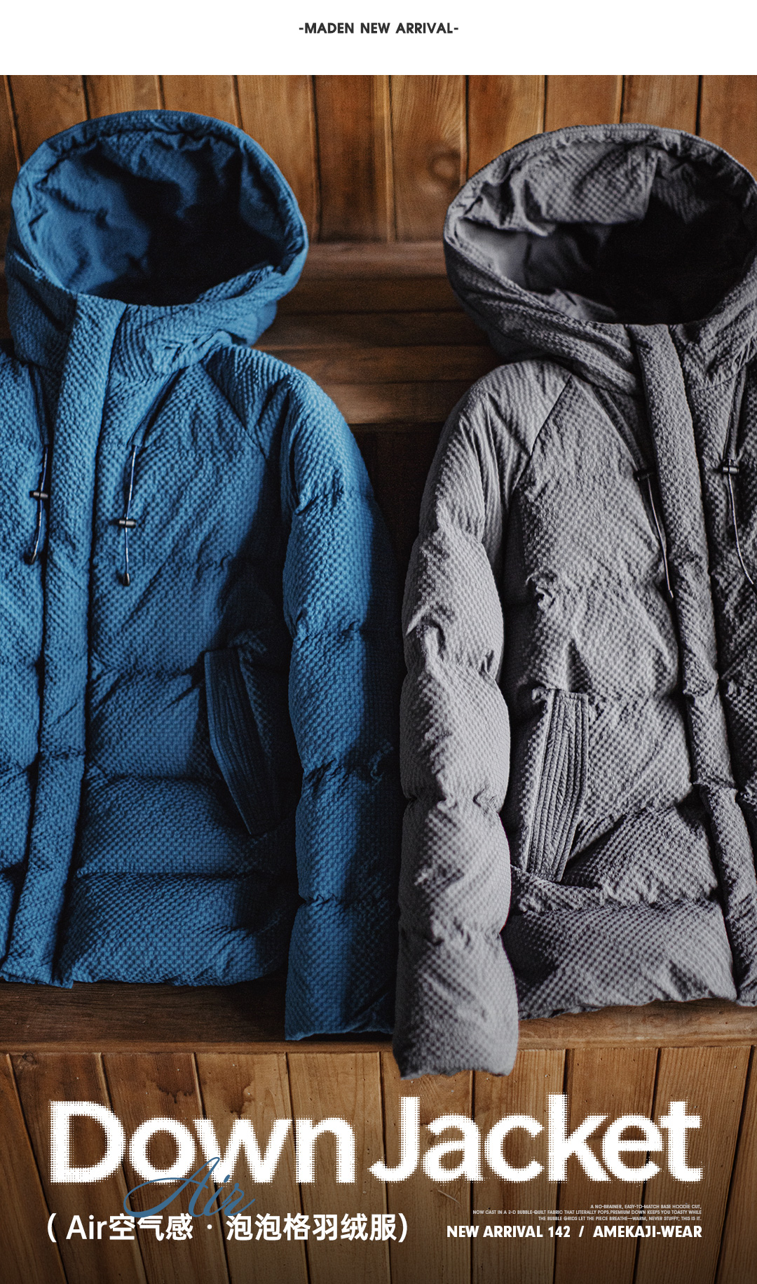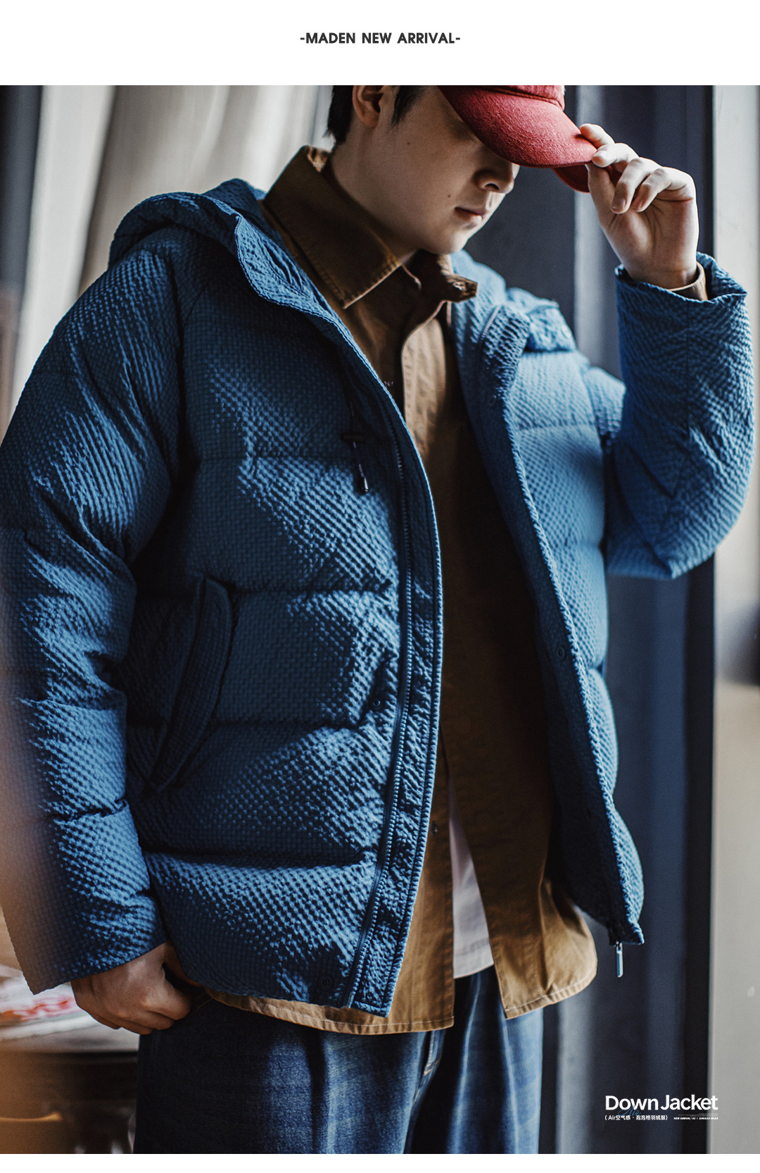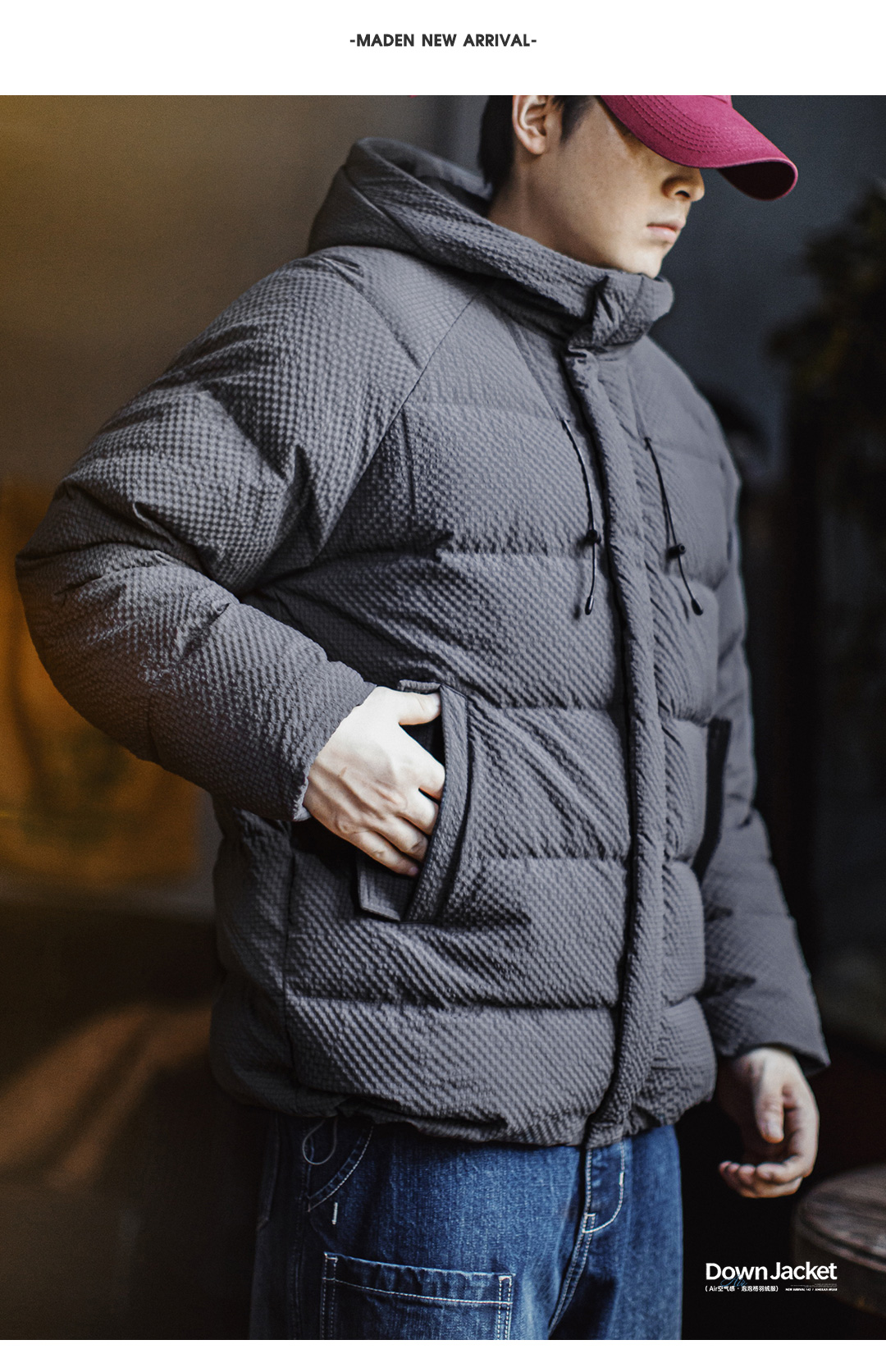 马登工装美式泡泡纱羽绒服90白鸭绒高蓬松度肌理感连帽外套男秋冬
