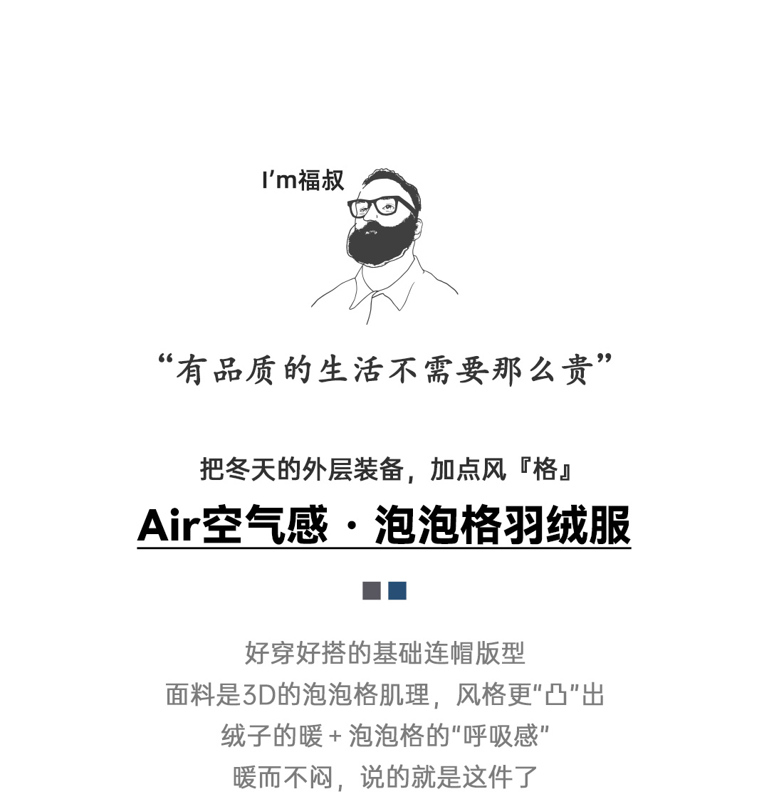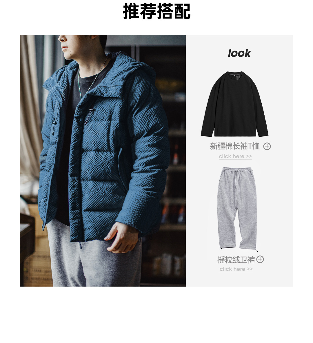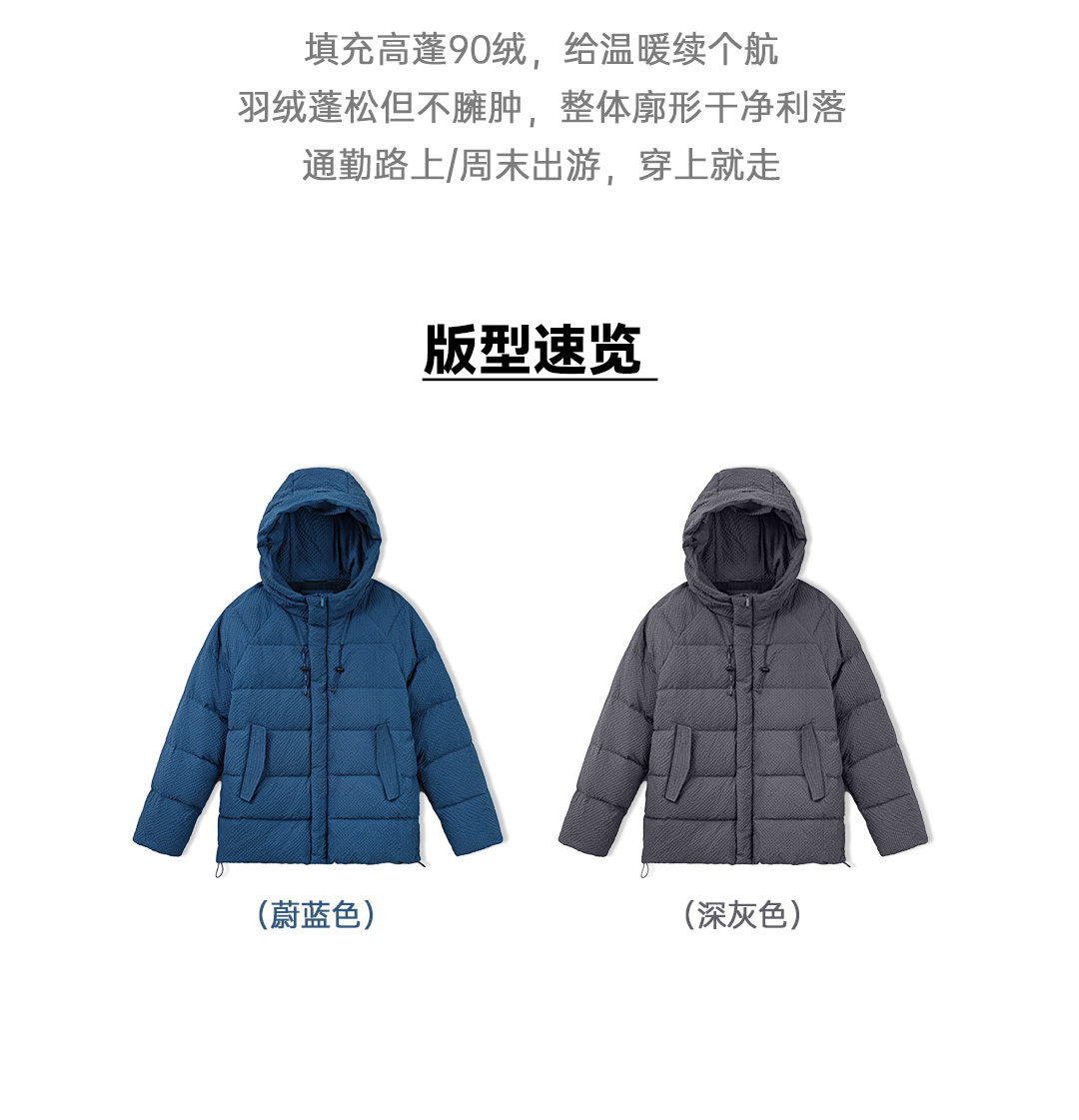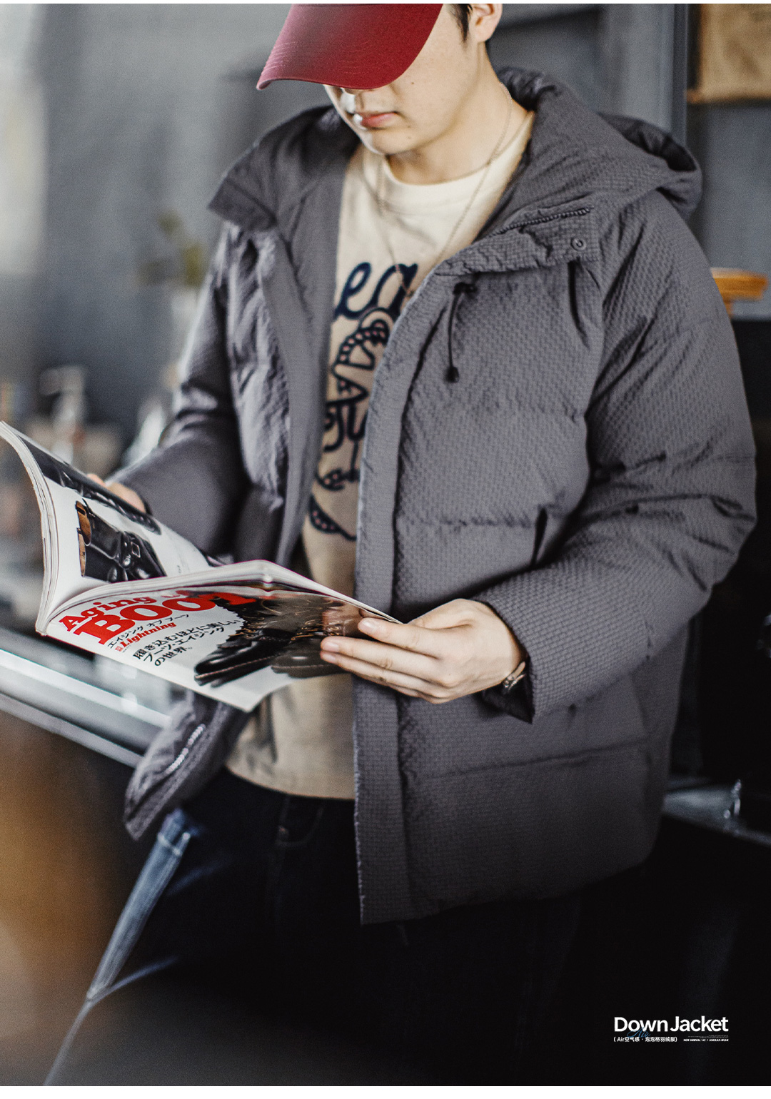 马登工装美式泡泡纱羽绒服90白鸭绒高蓬松度肌理感连帽外套男秋冬