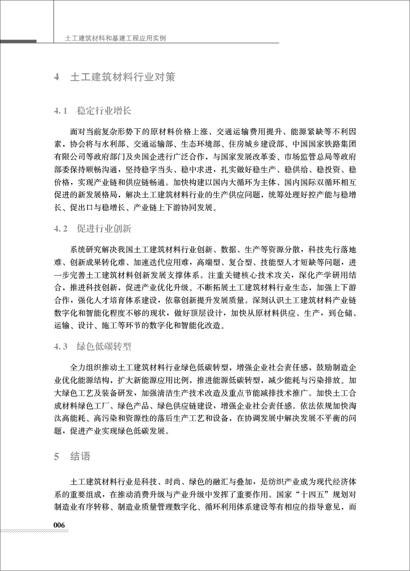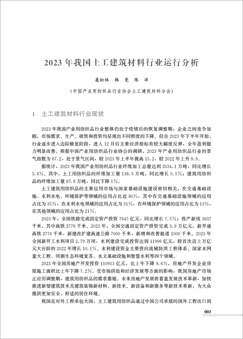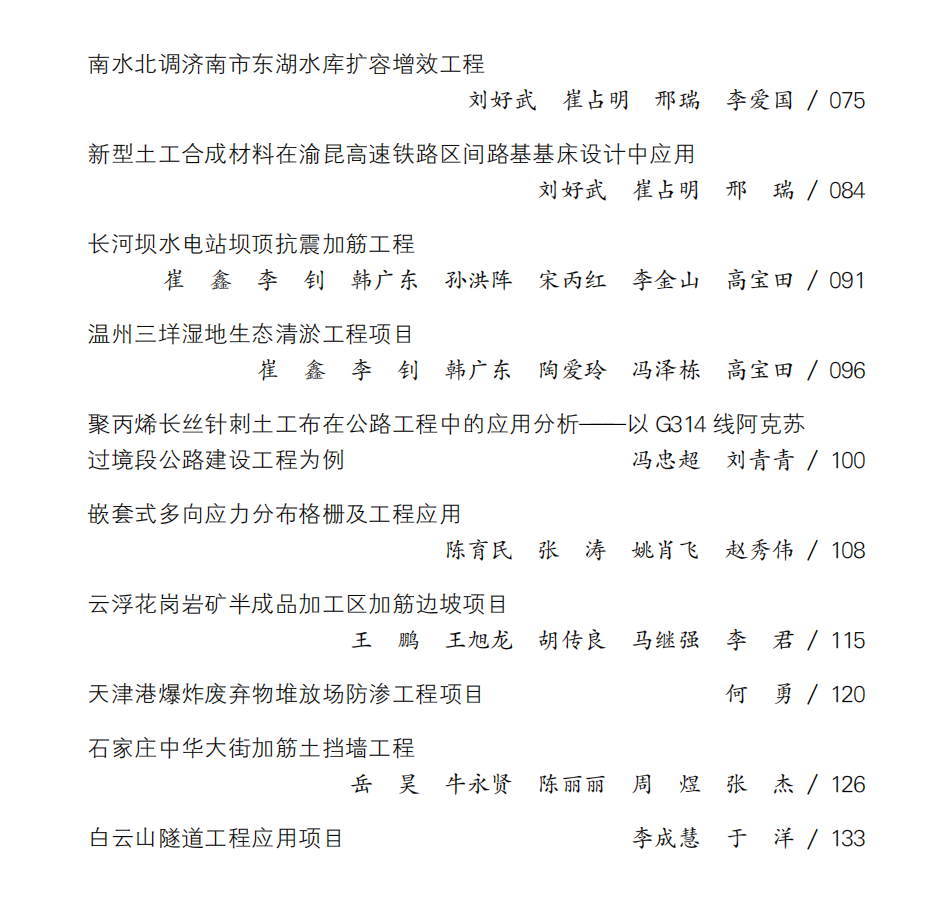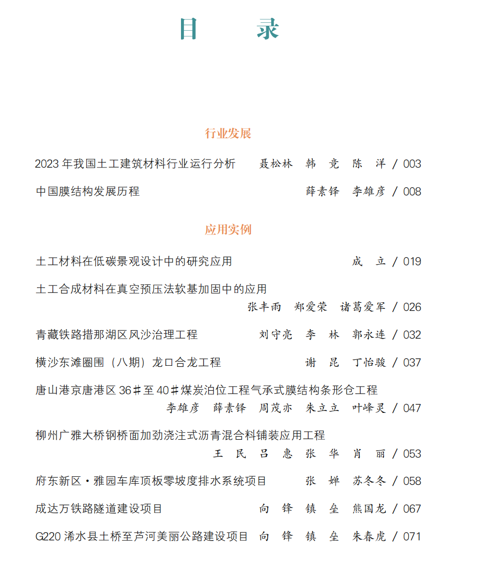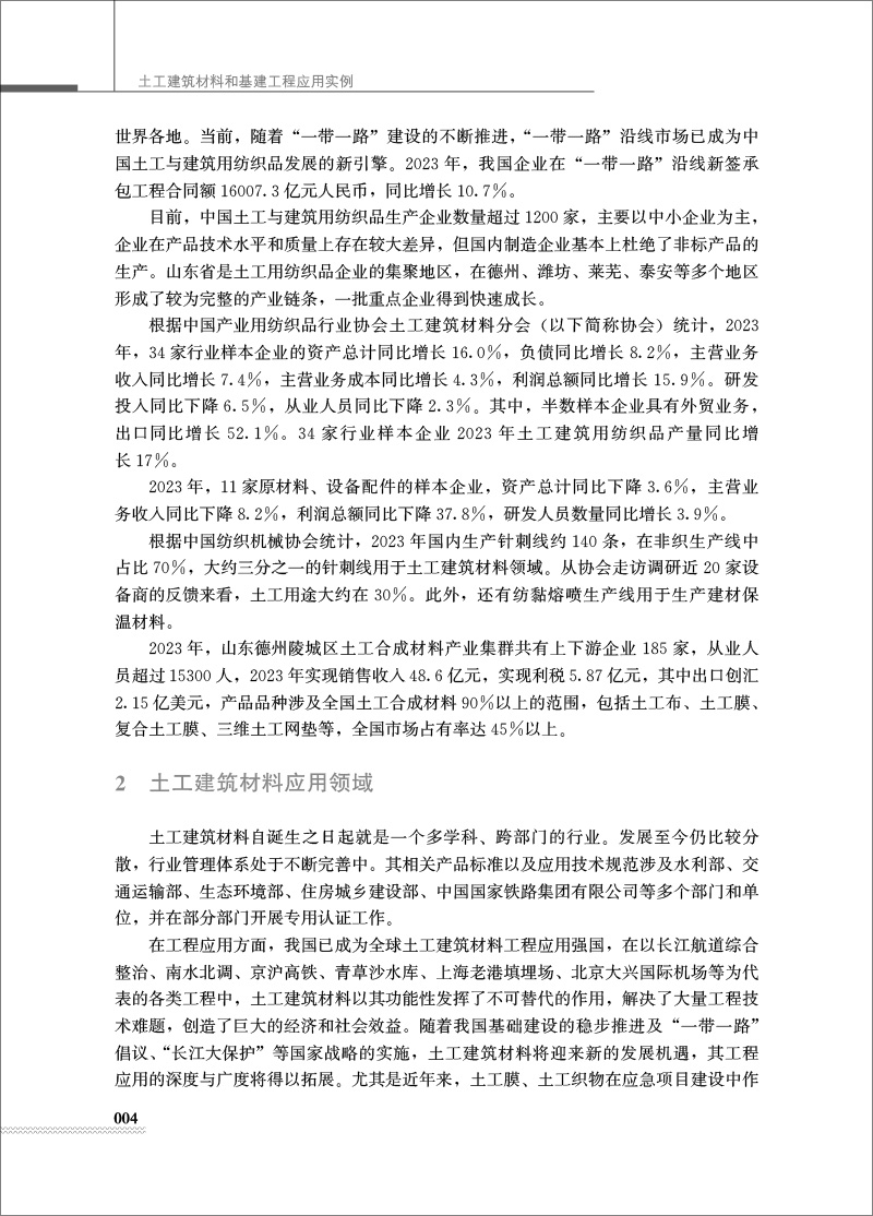 土工建筑材料和基建工程应用实例/韩竞,聂松林, 向锋主编;中国产业用纺织品行业协会组织编写 :中国建设科技出版社有限责任公司,2024 ISBN 9787516043325