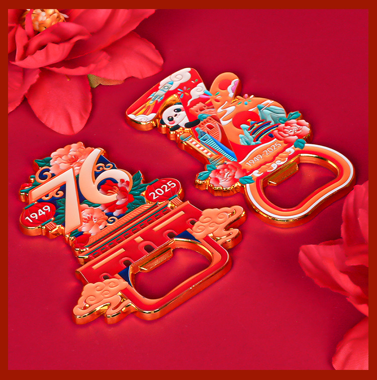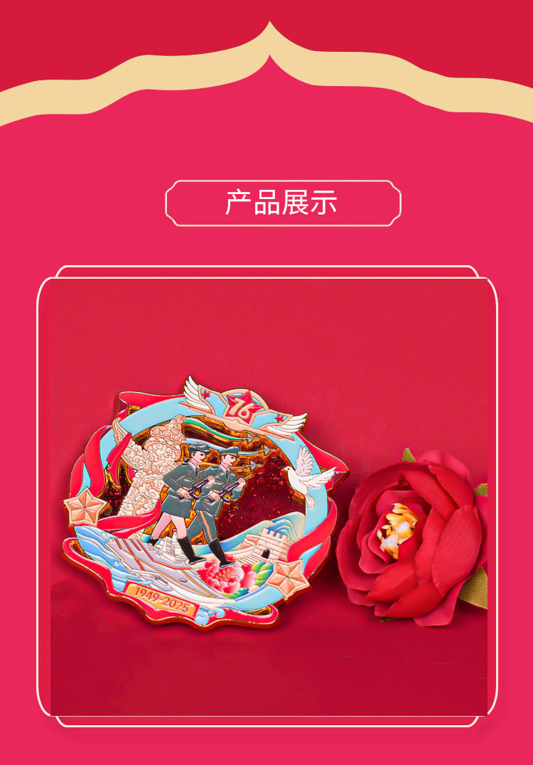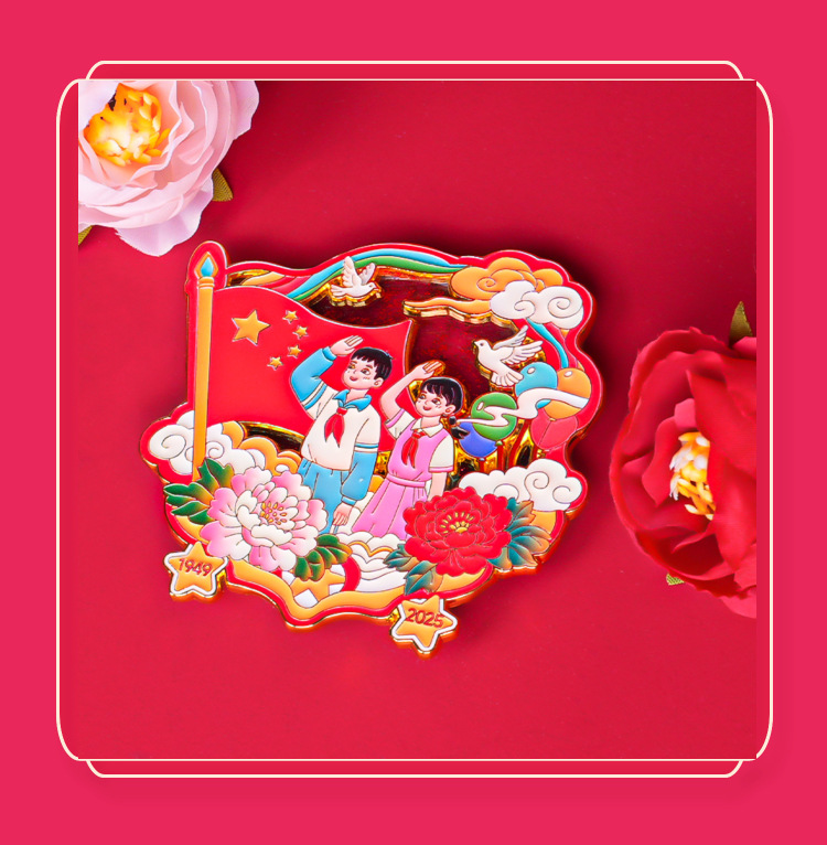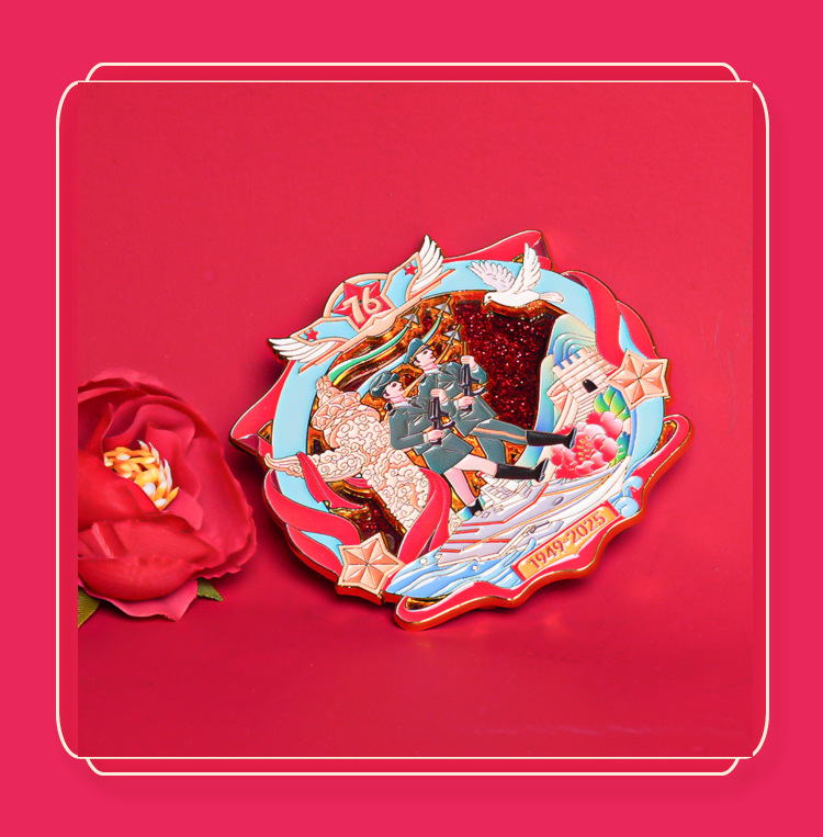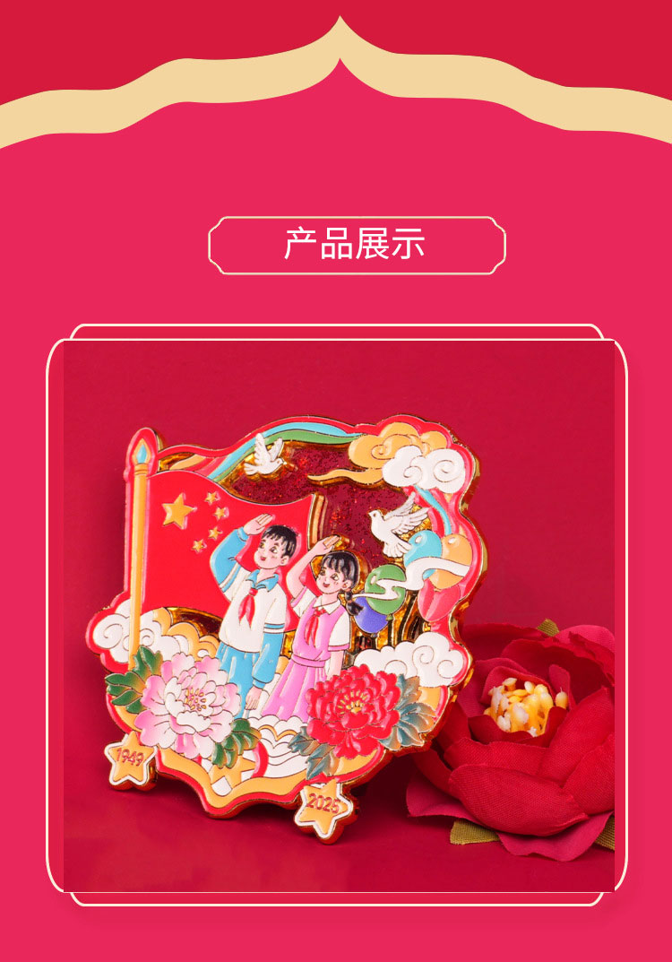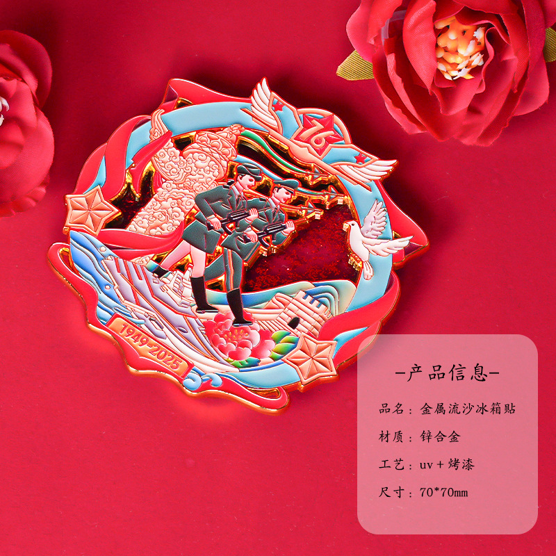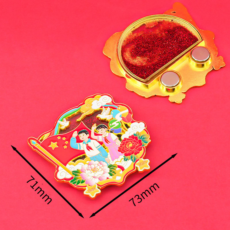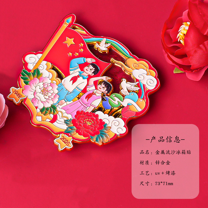 【2025年国庆阅兵主题冰箱贴】建国76周年中国地图天安门阅兵流沙冰箱贴开瓶器少先队
