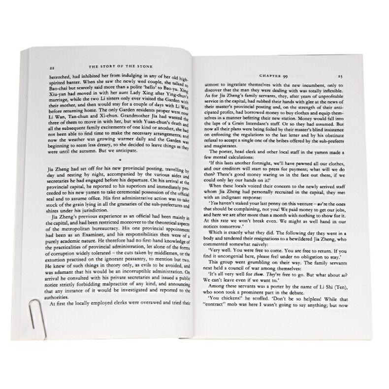 Divided into five volumes, it charts the glory and decline of the illustrious Jia family (a story which closely accords with the fortunes of the author’s own family). The two main characters, Bao-yu and Dai-yu, are set against a rich tapestry of humour, realistic detail and delicate poetry, which accurately reflects the ritualized hurly-burly of Chinese family life. But over and above the novel hangs the constant reminder that there is another plane of existence—a theme which affirms the Buddhist belief in a supernatural scheme of things.