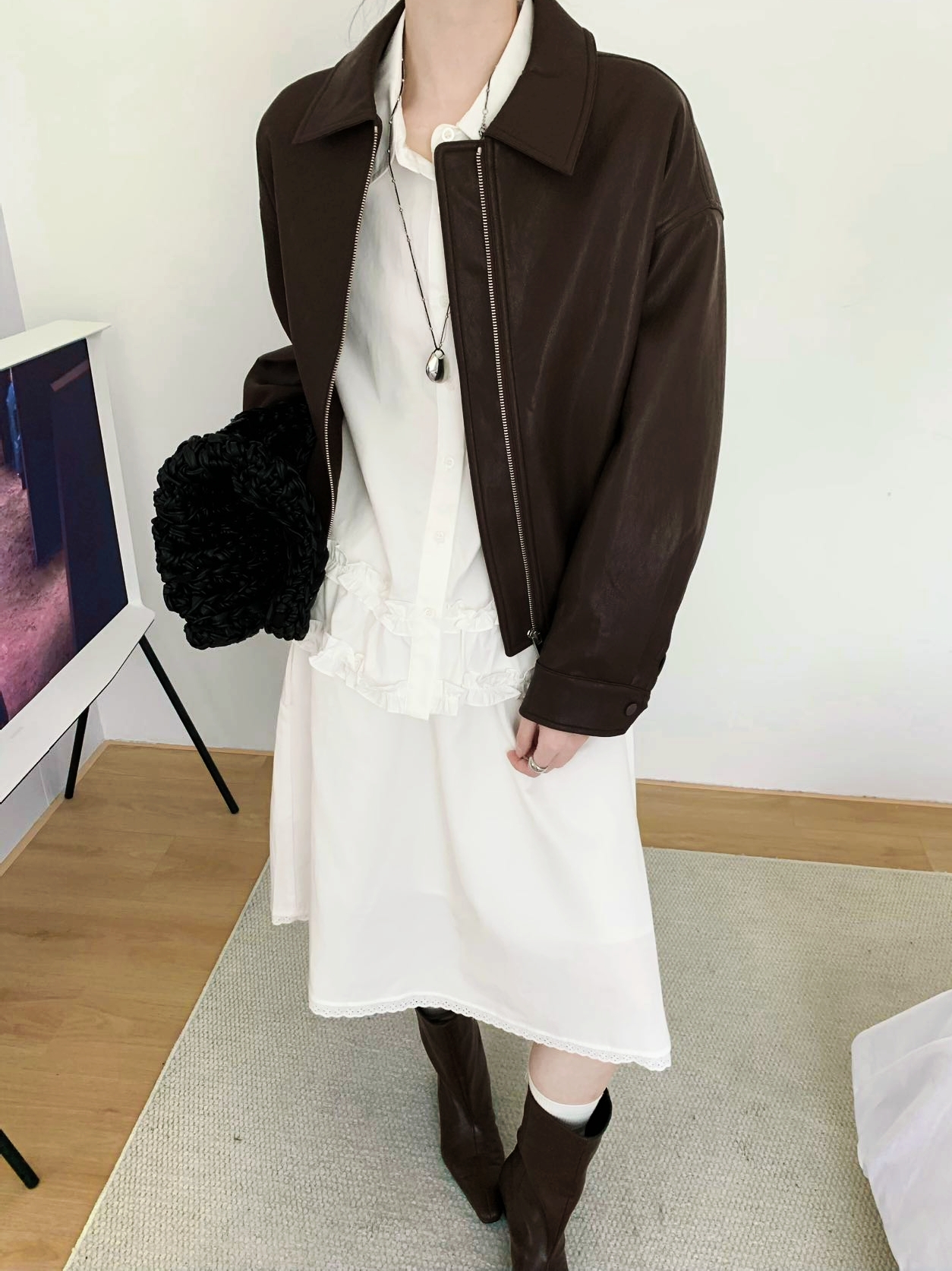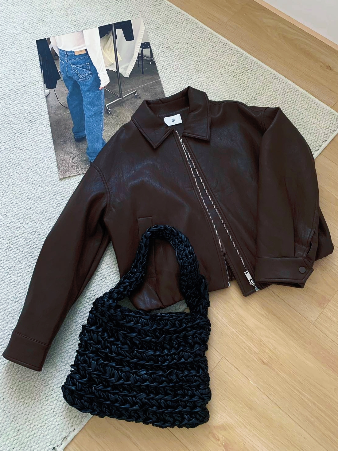 [特价]棕色复古PU皮衣夹克经典气质休闲拉链短款外套2505039