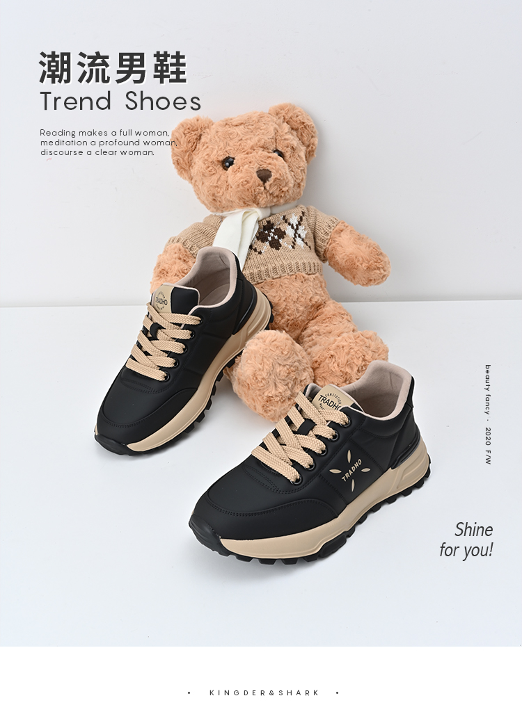 经典鲨2024年冬季新款男士麂皮绒里休闲平底轻便跑步鞋KW222-D55261