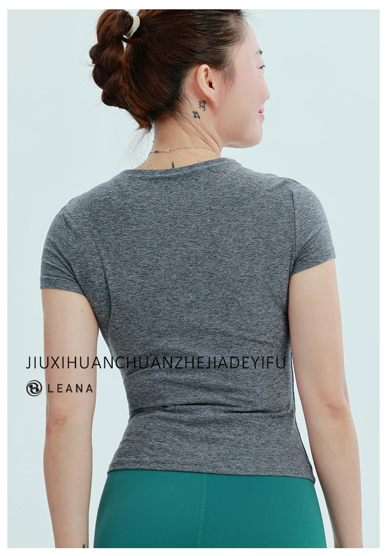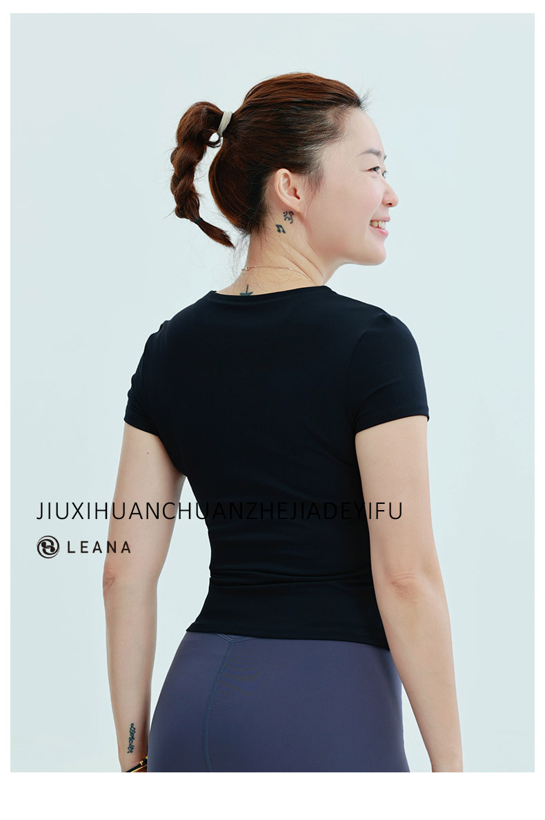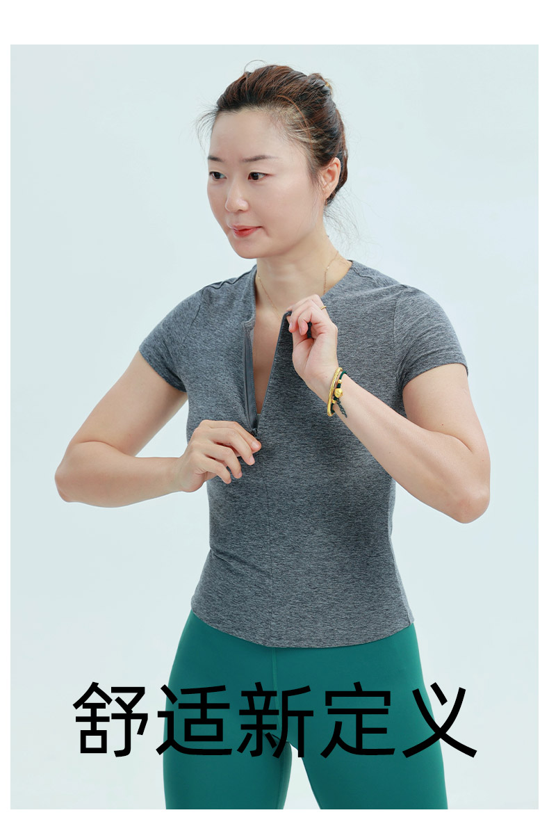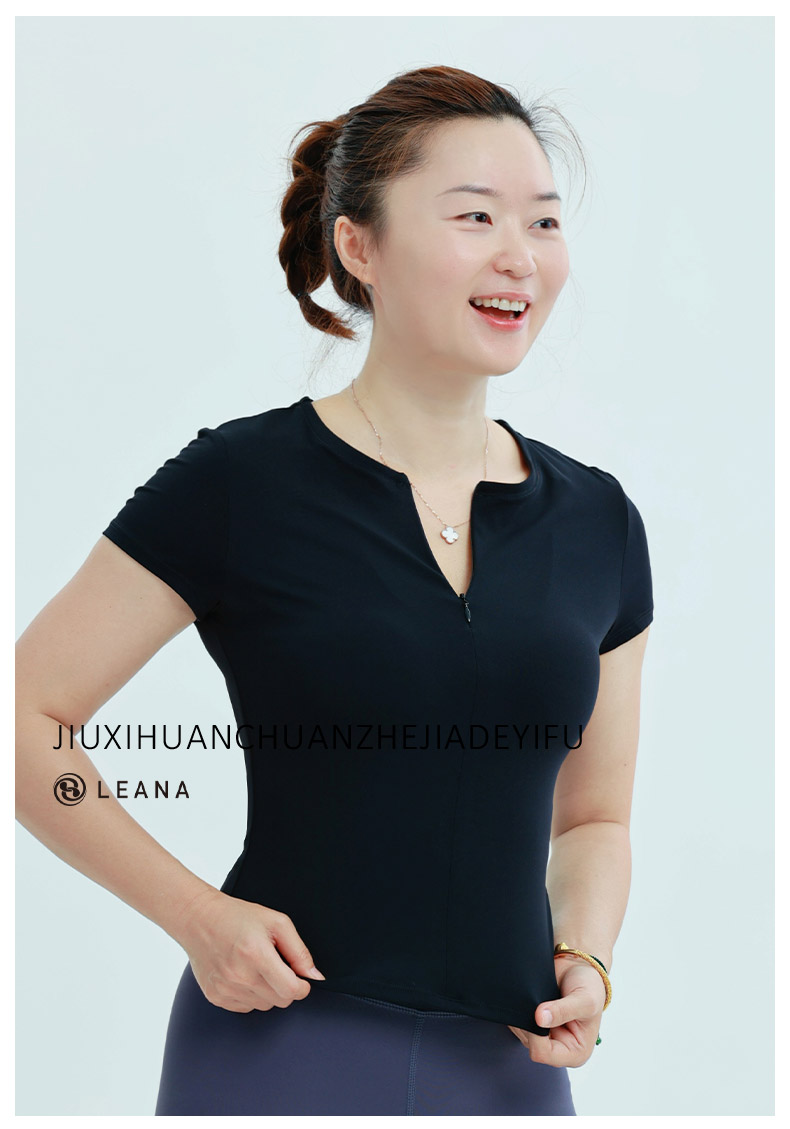 LEANA丽娜休闲运动半拉链短袖收腰透气运动休闲短袖不含胸垫LN52015