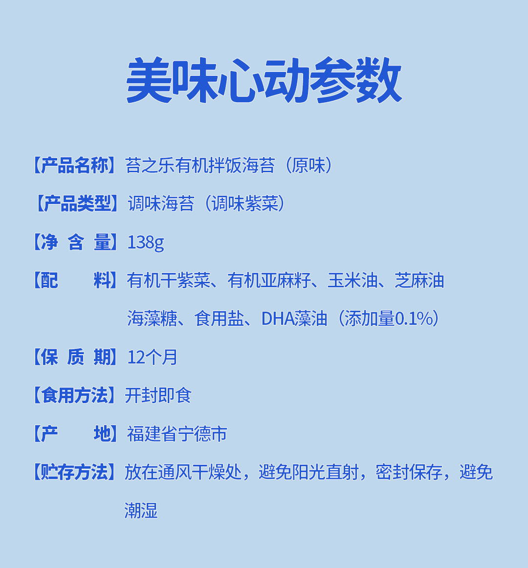 【品名】苔之乐有机拌饭海苔(原味)小蓝袋