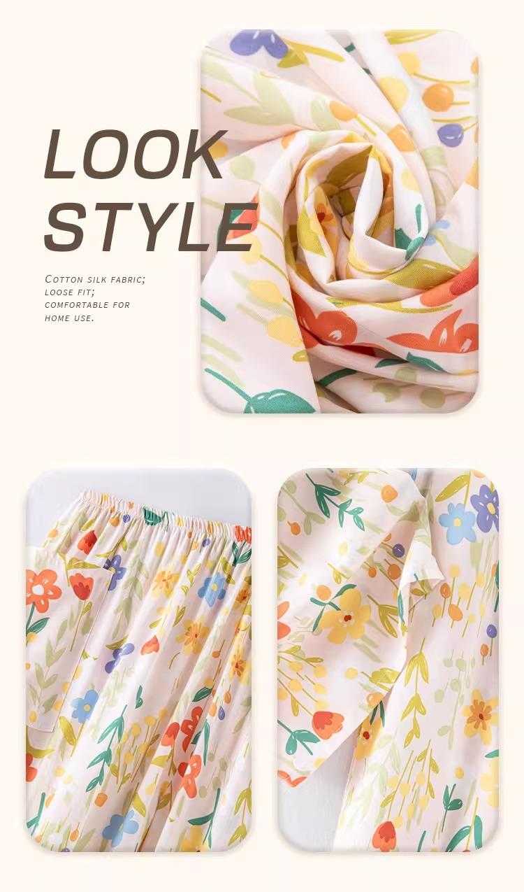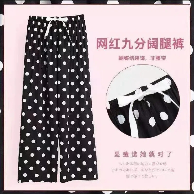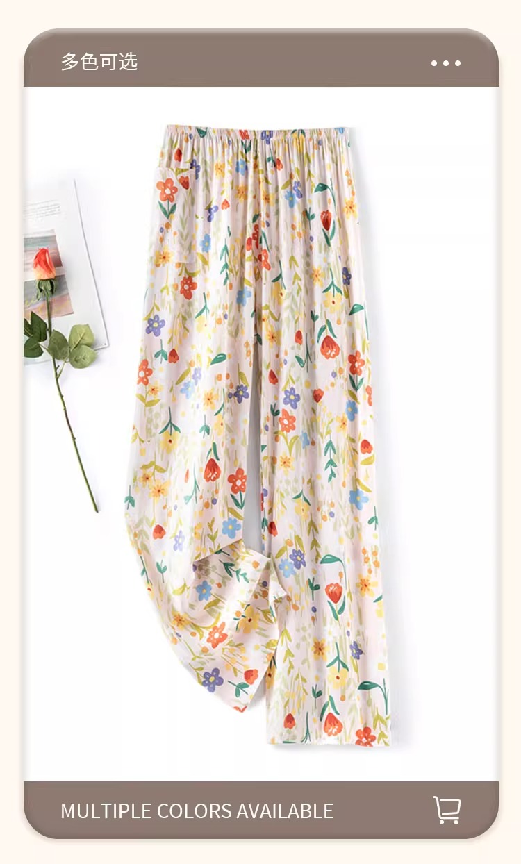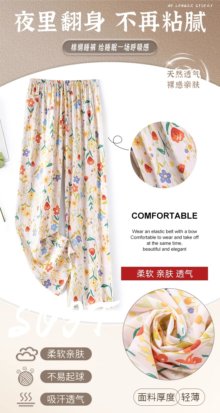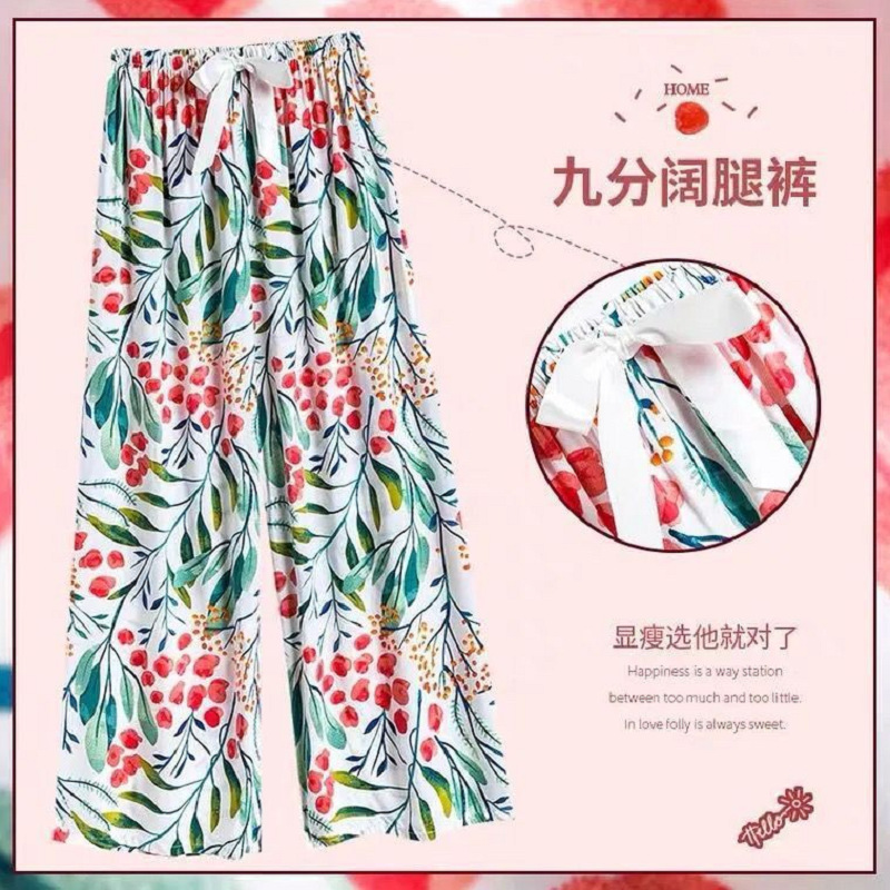 (49元两条 超高性价比)棉绸睡裤女2025夏季新款可外穿人造棉九分阔腿家居裤花长裤子