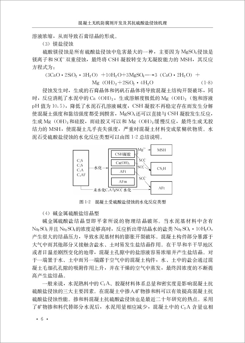 第5章利用微观试验手段,对复合矿物防腐剂的抗硫酸盐侵蚀性能进行了微观机理分析,研究了复合矿物粉体菜泥体系内部微观结构的变化规律。