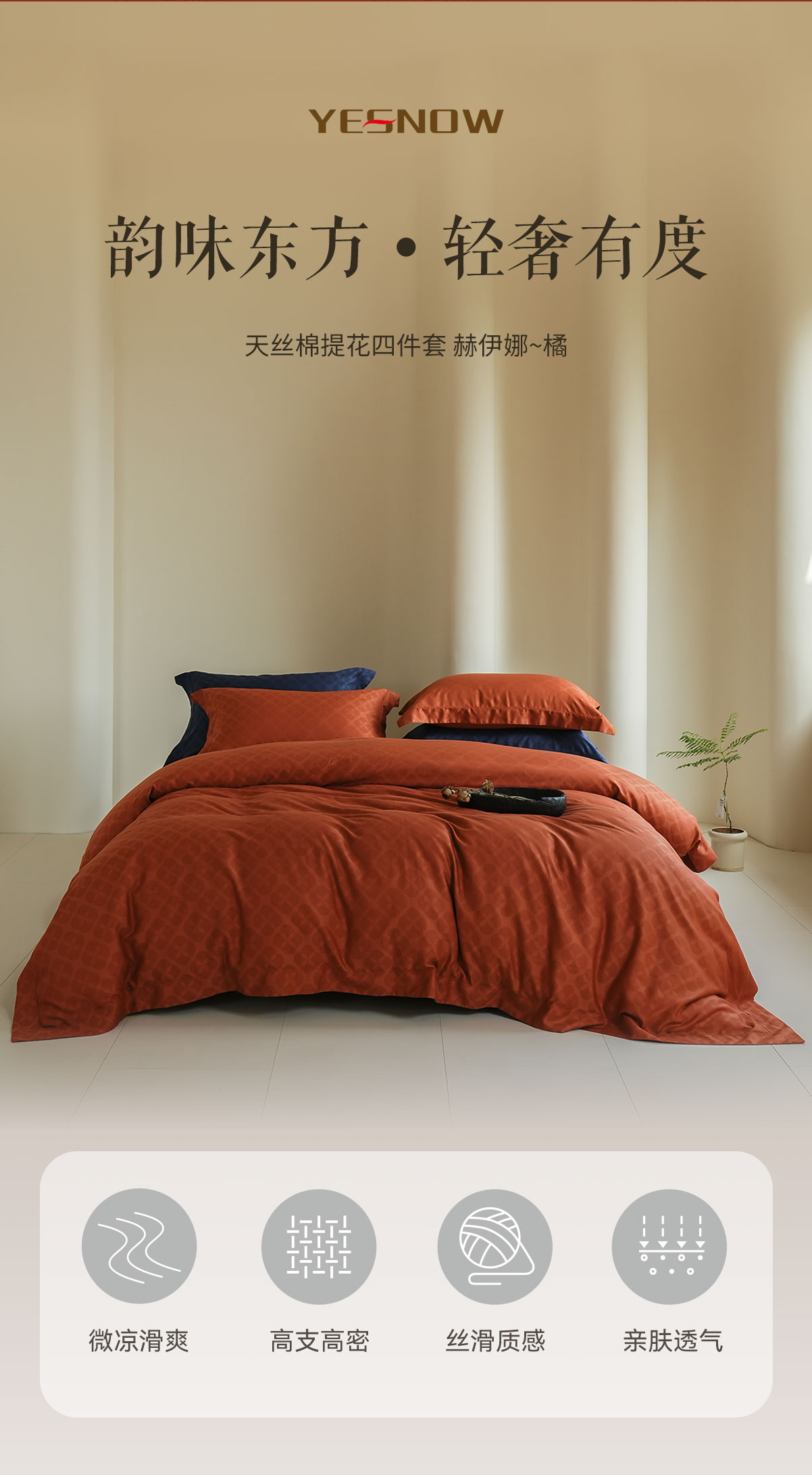 天丝棉大提花四件套-赫伊娜(橘)
