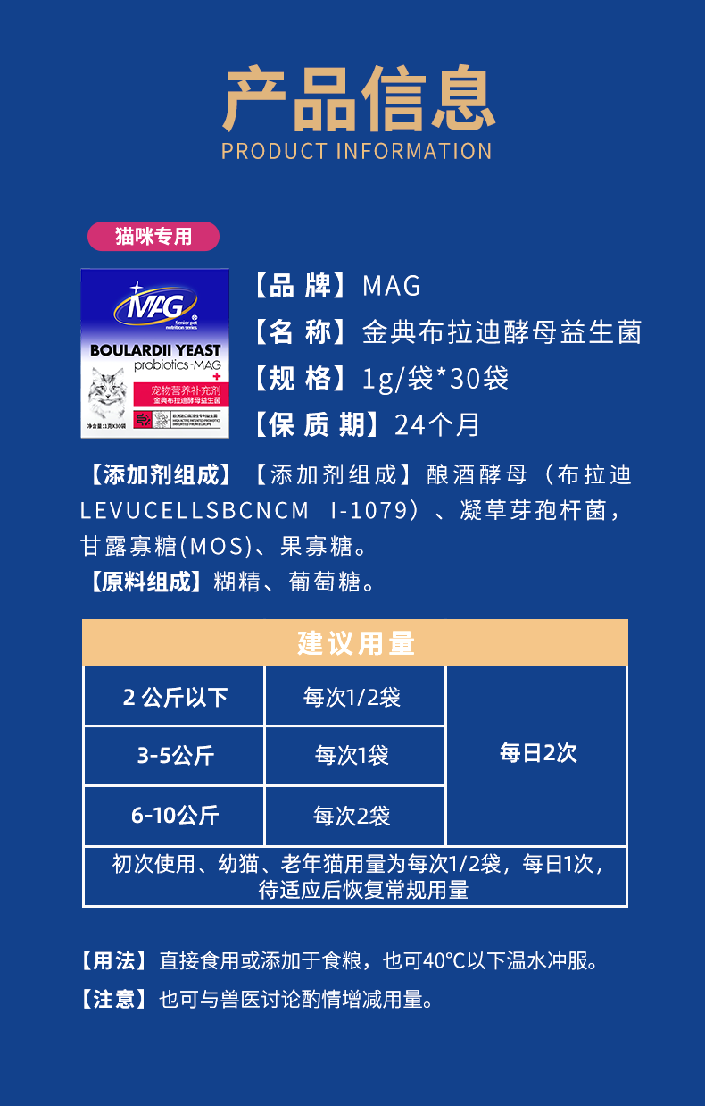 【U+系列】MAG 金典布拉迪酵母益生菌1g*30袋 调理肠胃改善软便调理口臭护肠养胃帮助消化