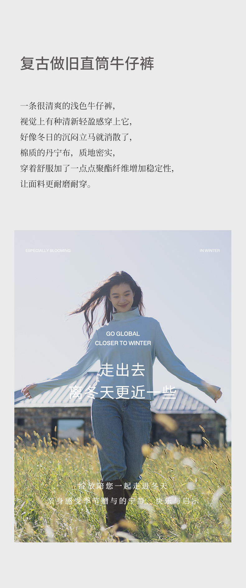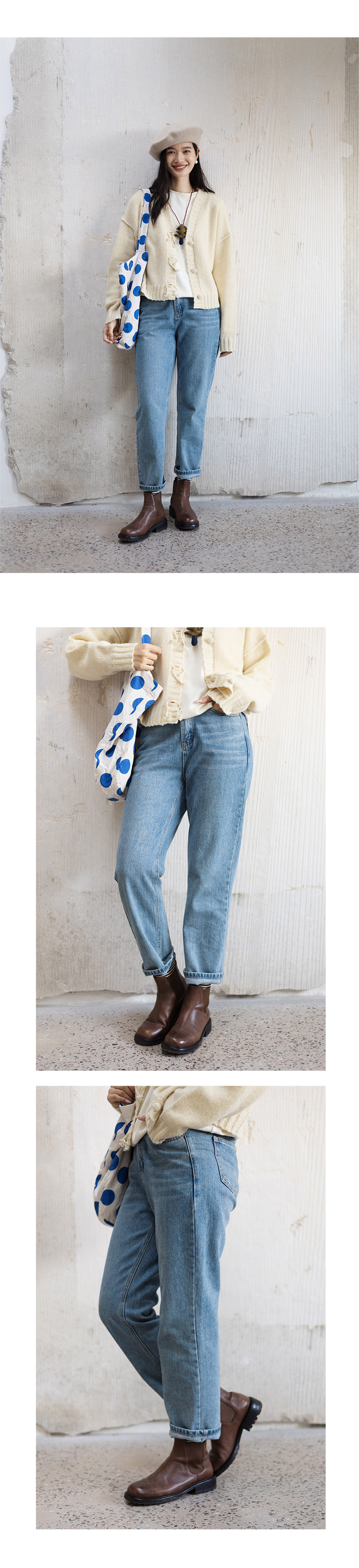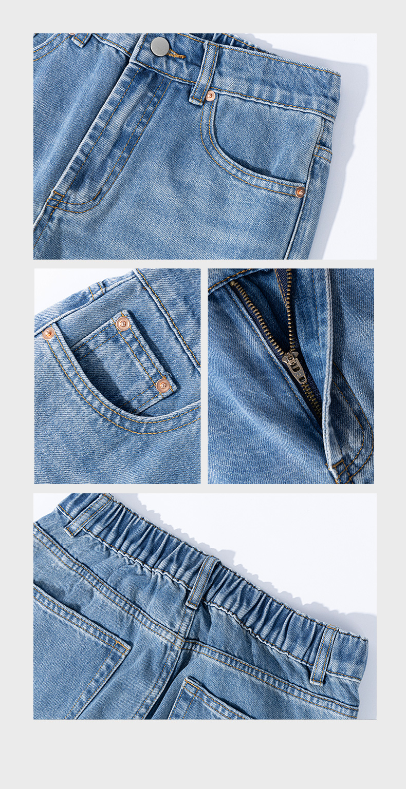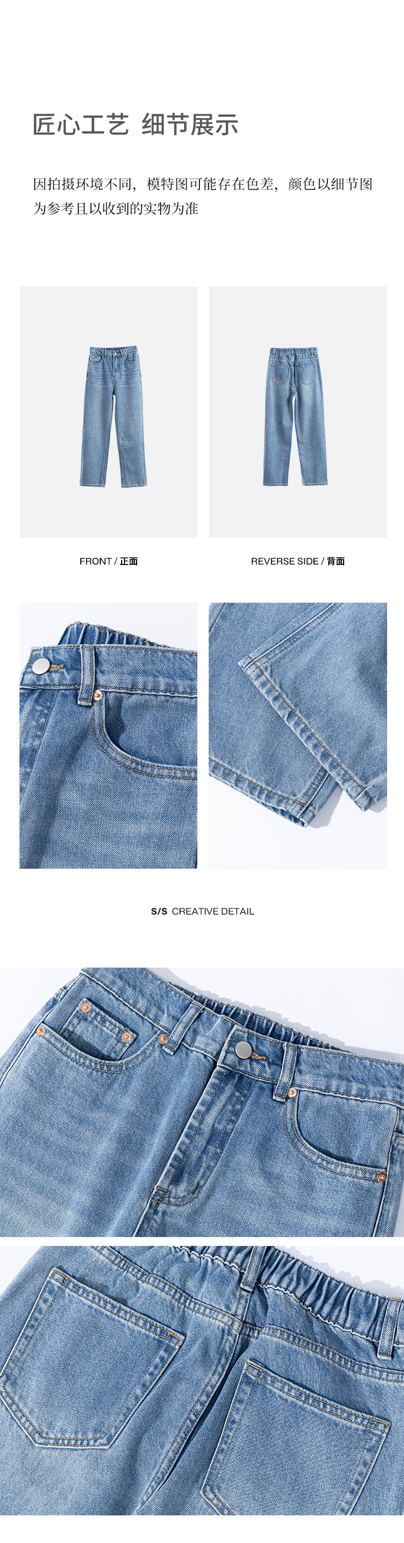 绽放893朵/复古做旧浅蓝色直筒牛仔裤