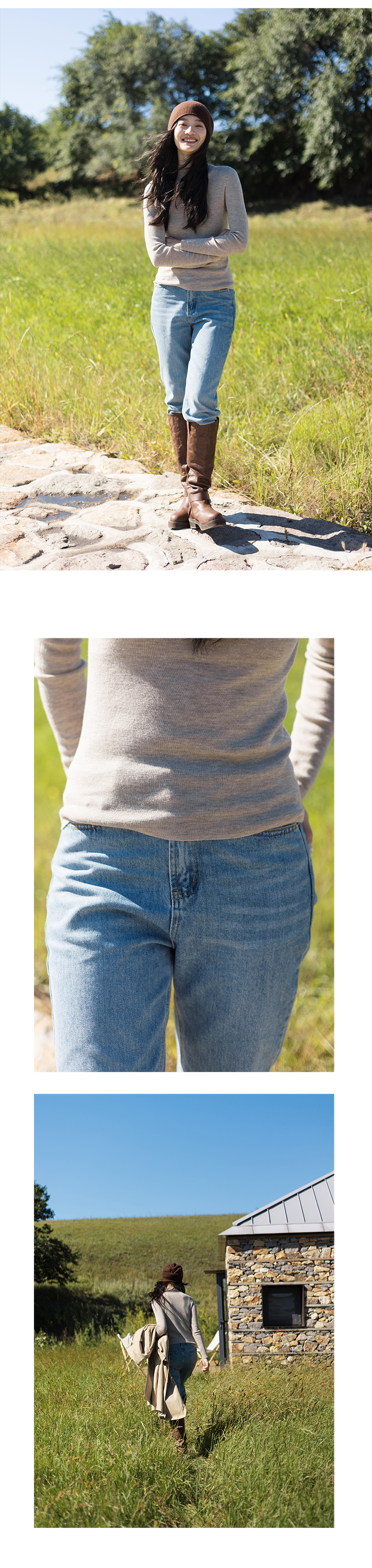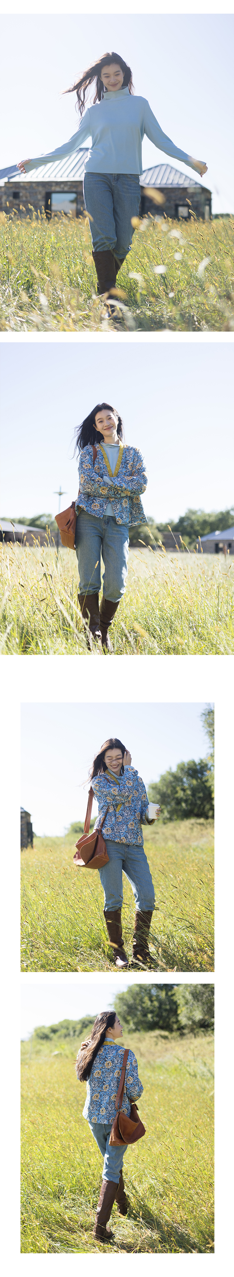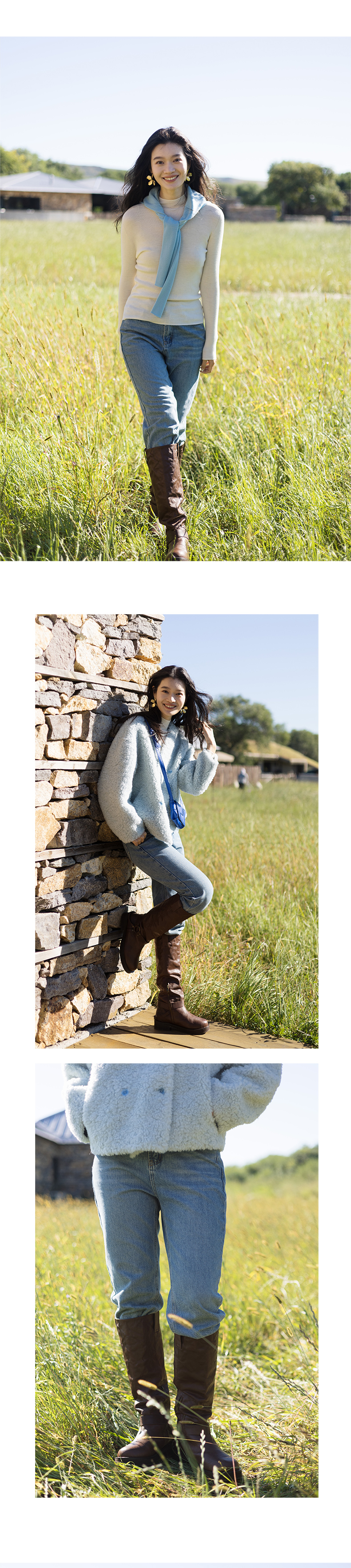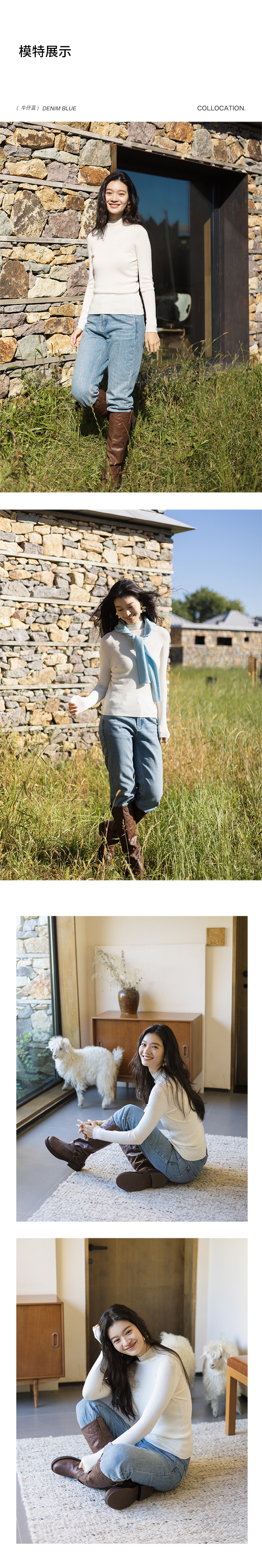 绽放893朵/复古做旧浅蓝色直筒牛仔裤