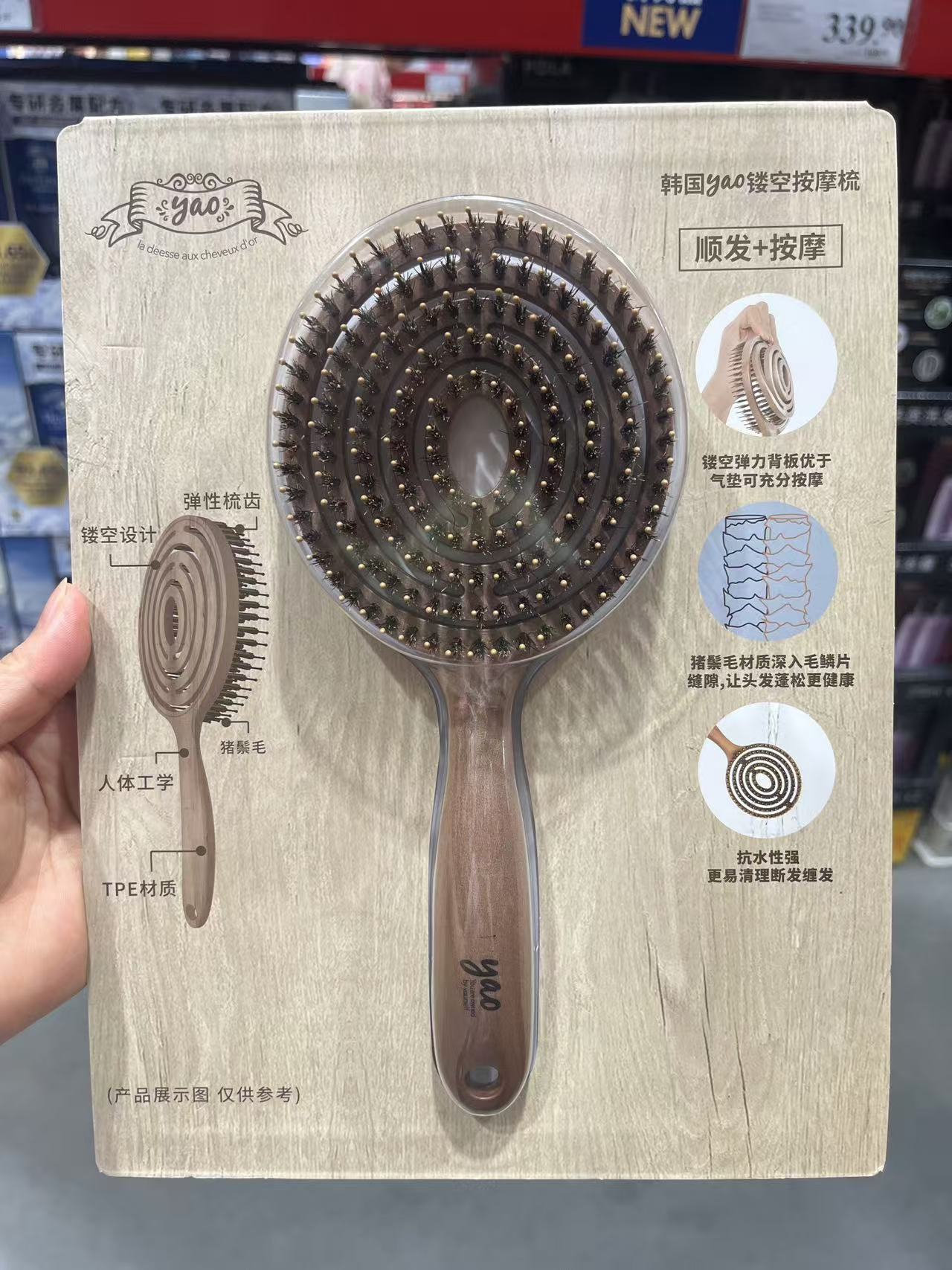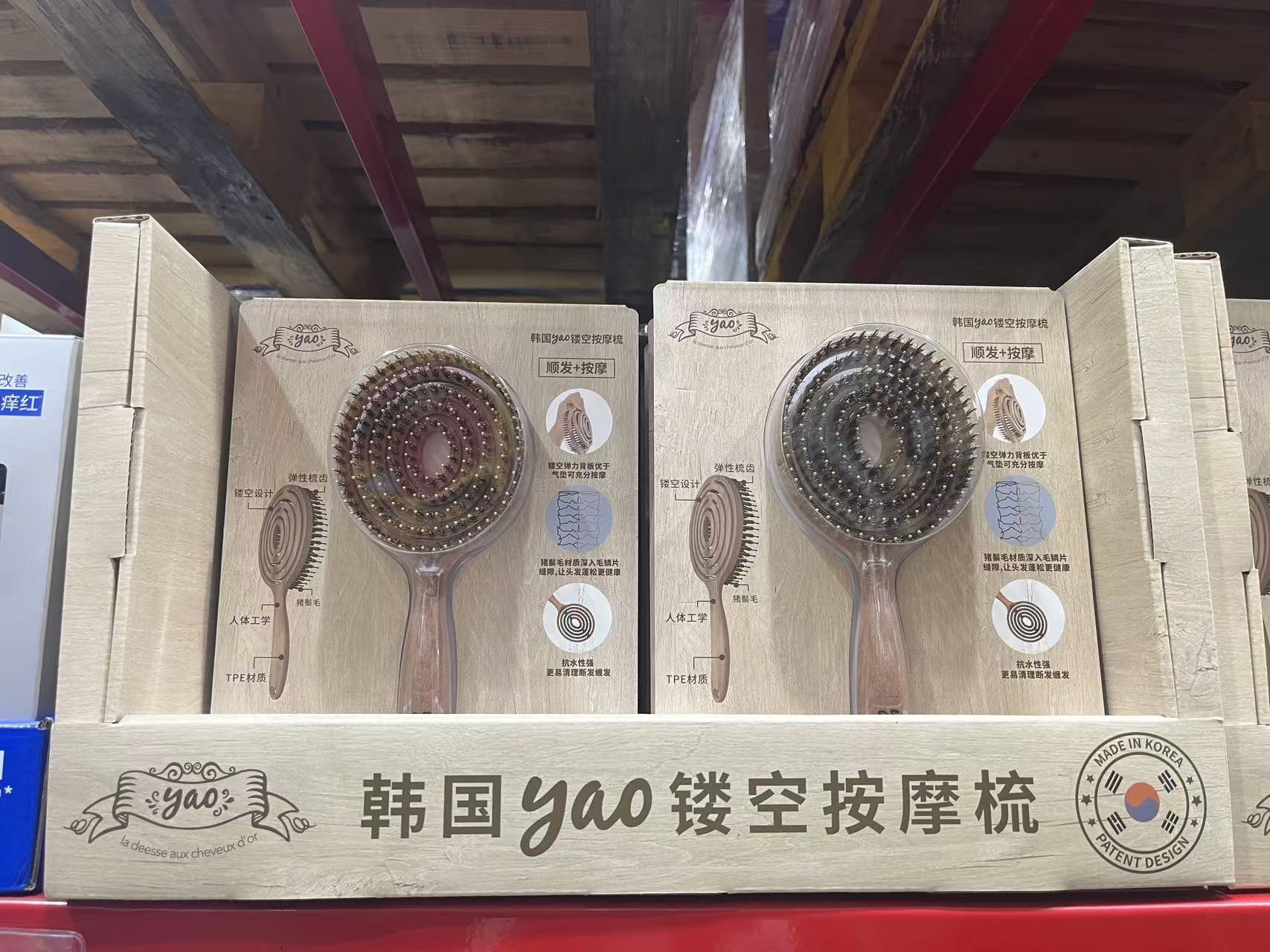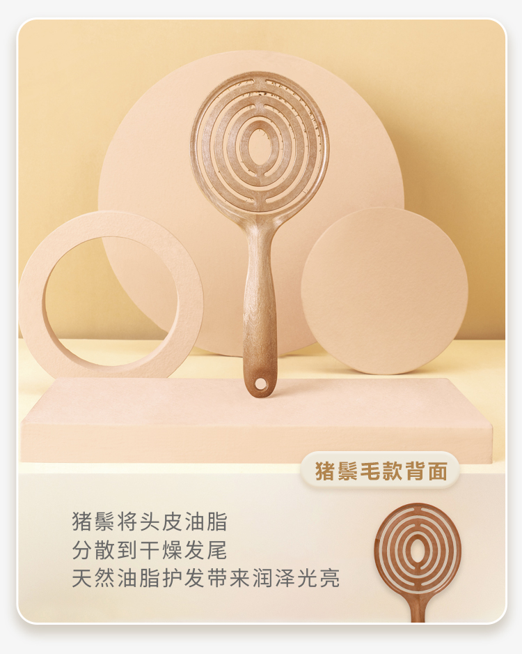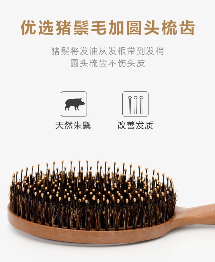 【山姆会员店同款】天然猪鬃毛梳韩国yao镂空按摩梳