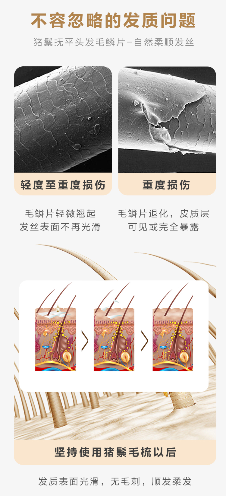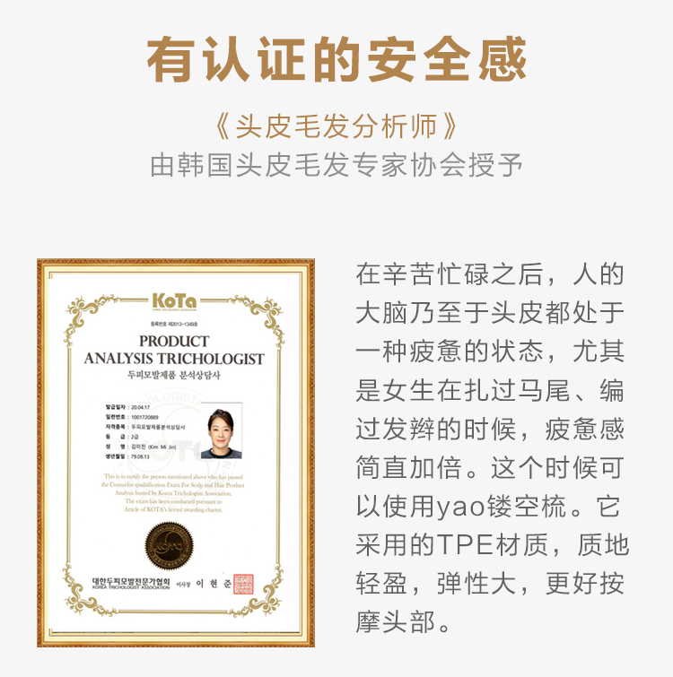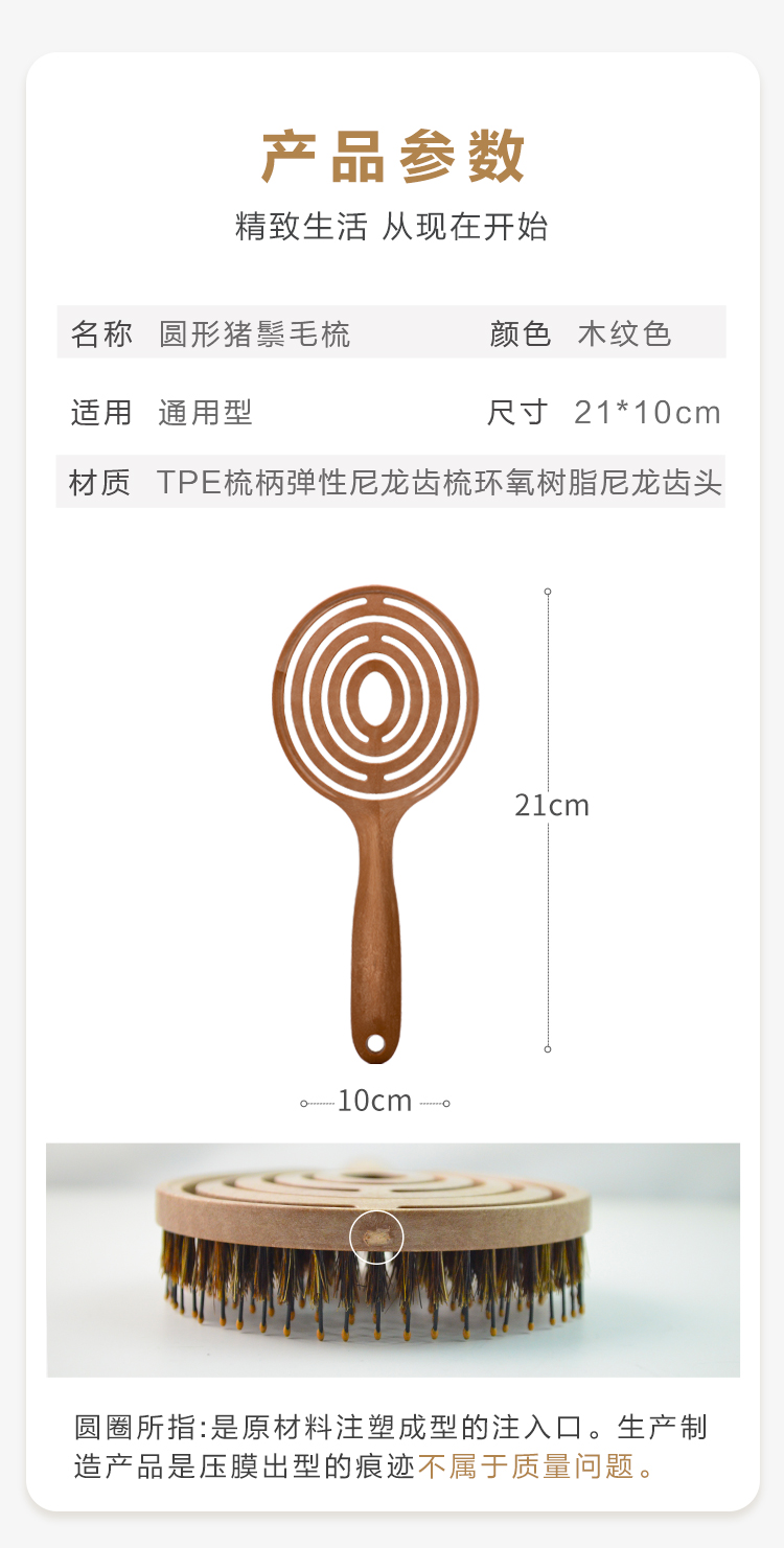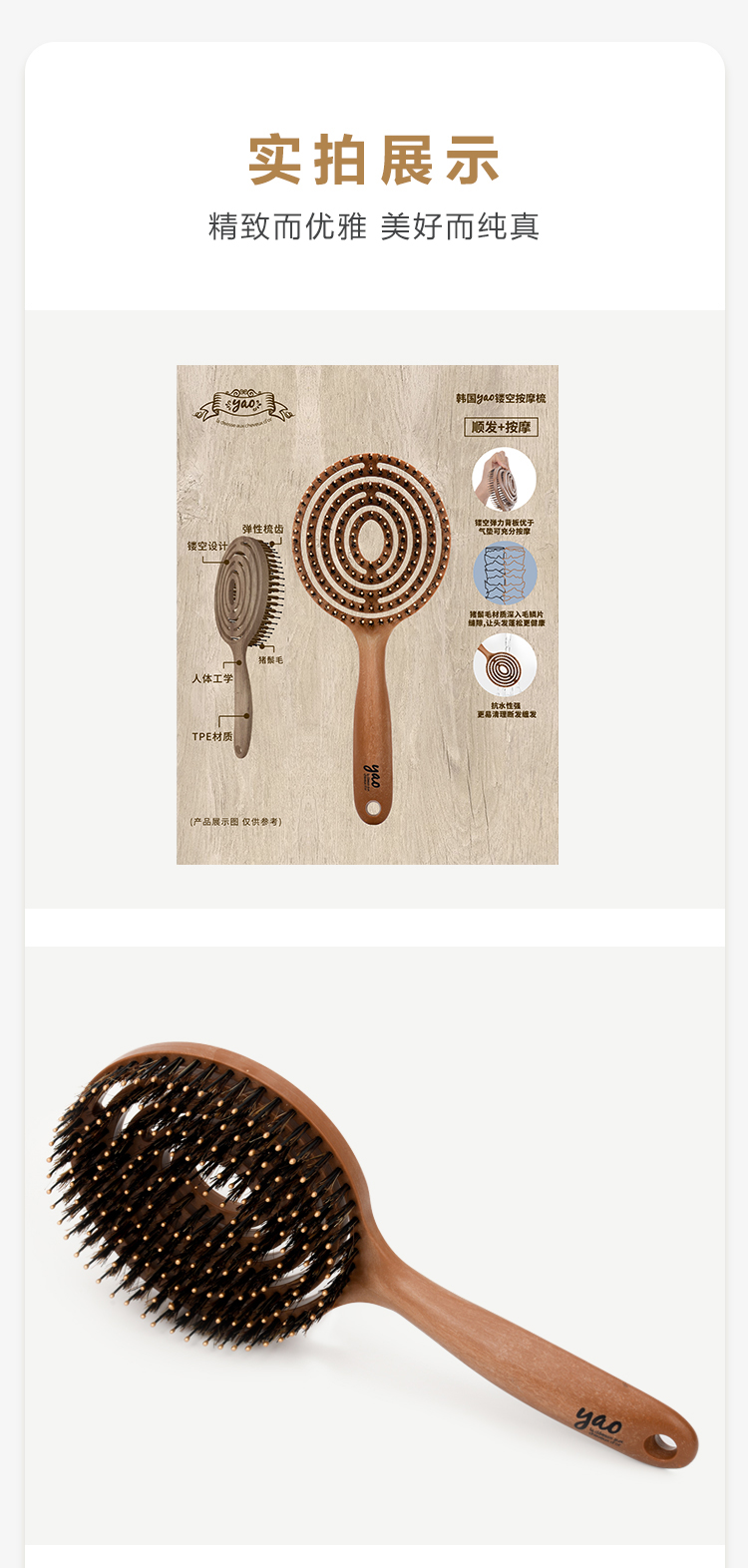 【山姆会员店同款】天然猪鬃毛梳韩国yao镂空按摩梳