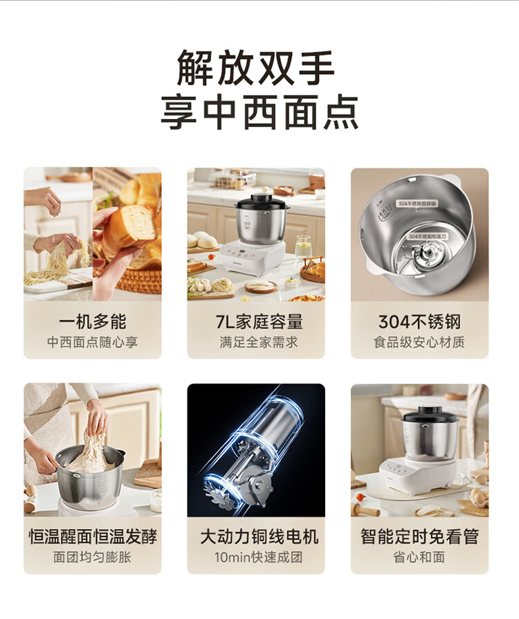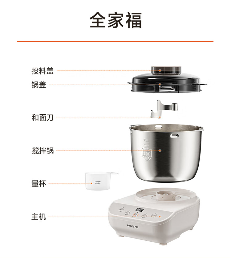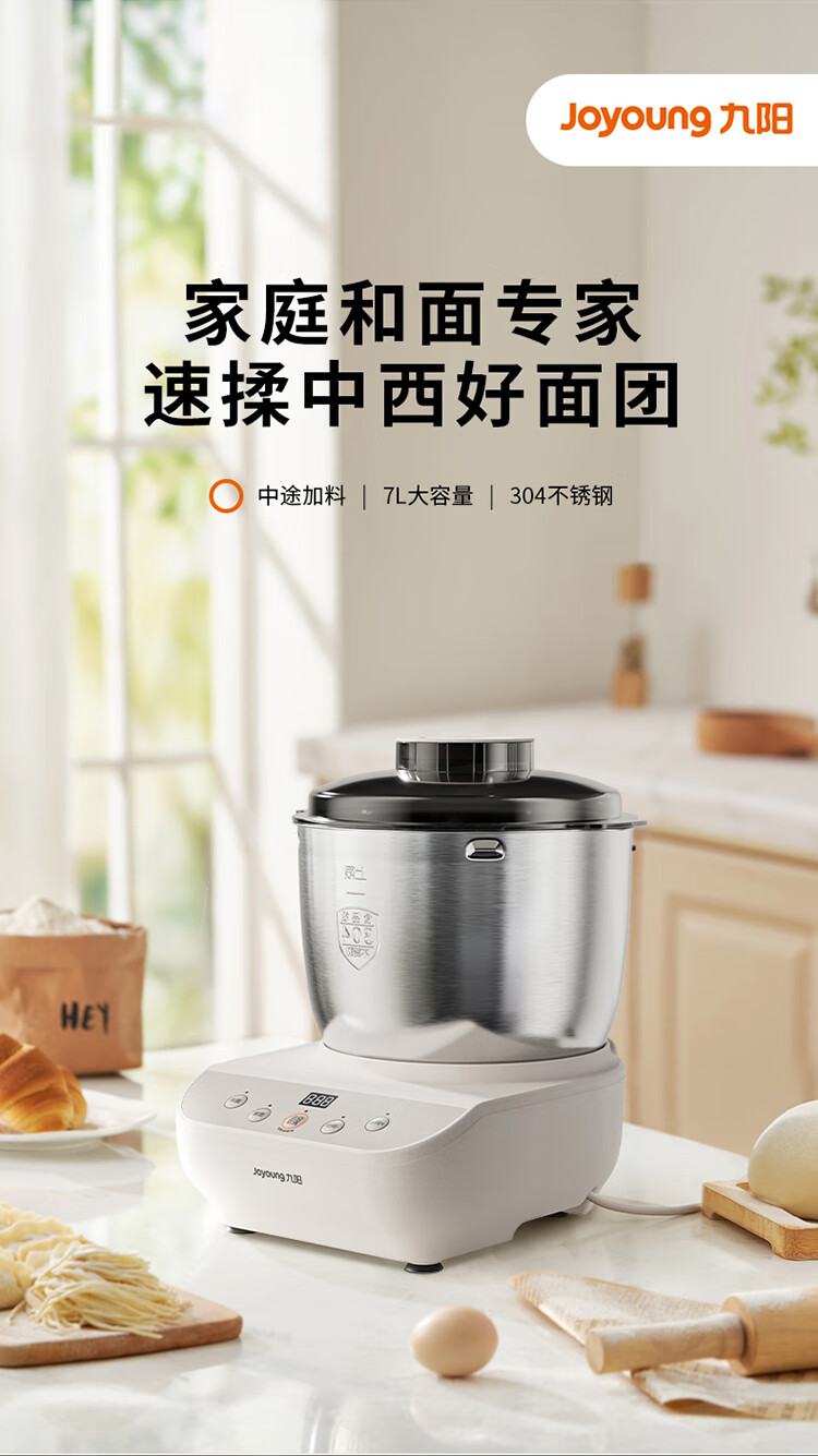 九阳和面机小型家用揉面机多功能一体全自动不锈钢厨师机搅发面机