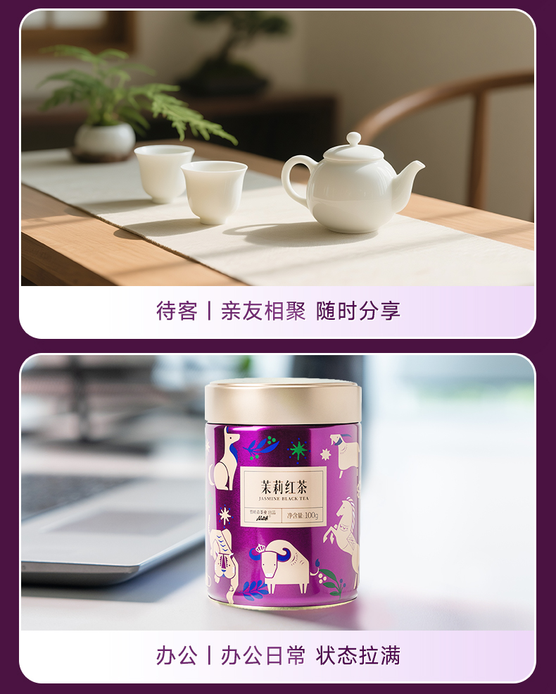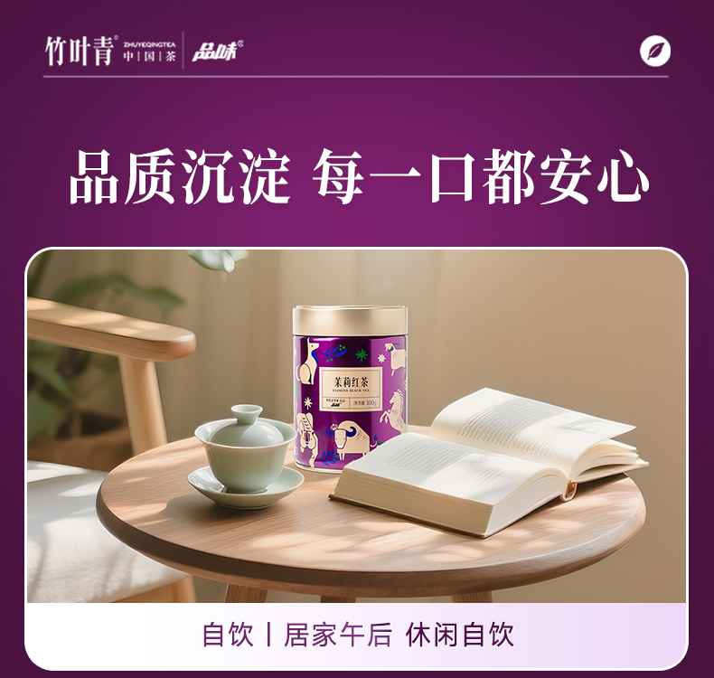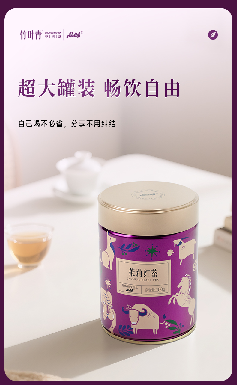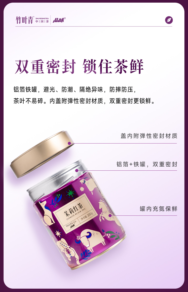 品味牌茉莉红茶一级茶叶罐装自饮装100g四川竹叶青茶业出品